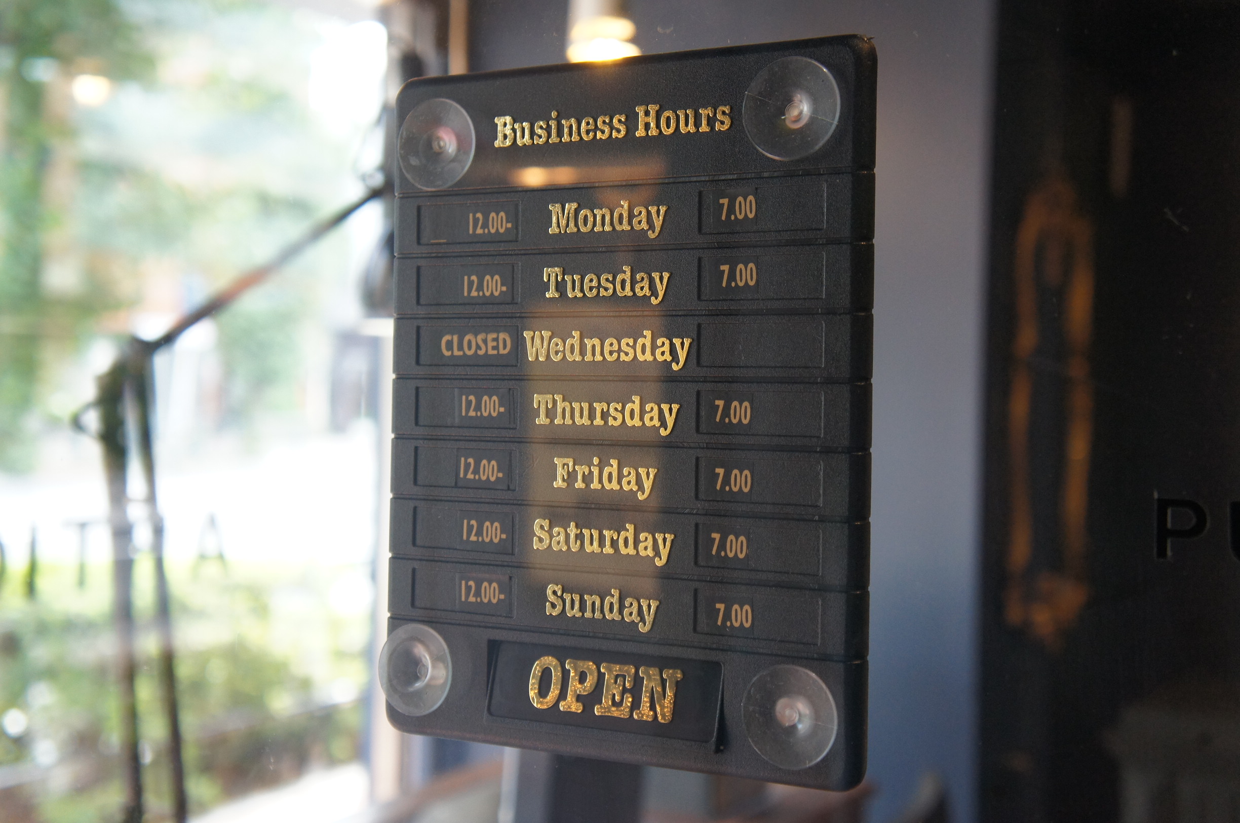 当店の営業時間は 12:00~19:00 水曜日定休 とさせていただいております 上記の時間に御来店が難しい場合は、御来店前にご相談くださいませ 可能な限り、ご対応させていただきます(定休日は除く)