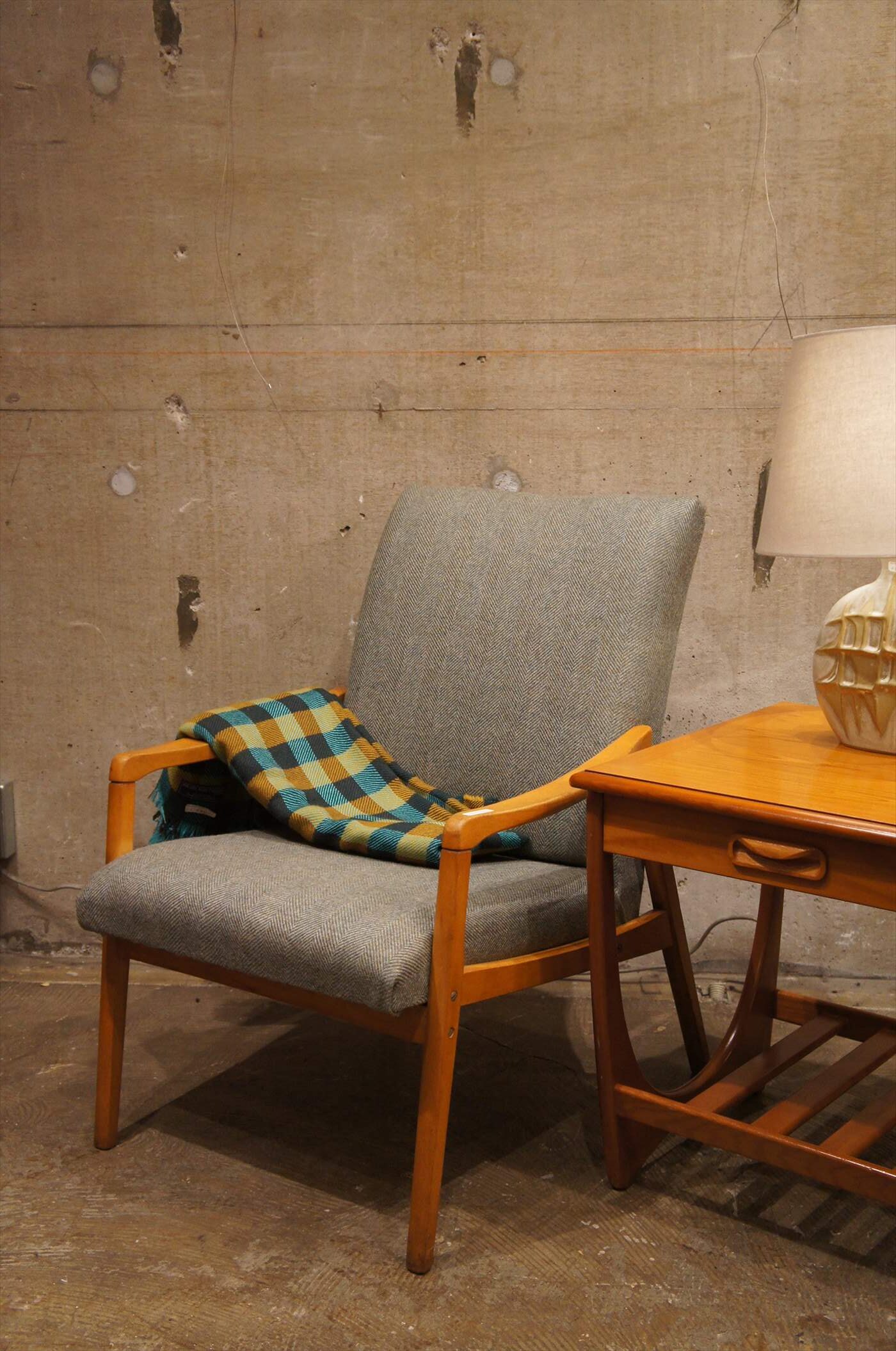 英国買付ウール混ヘリンボーン柄生地(グリーン)にて張替済 ※AK083の赤い生地のチェアと同型です。 […]