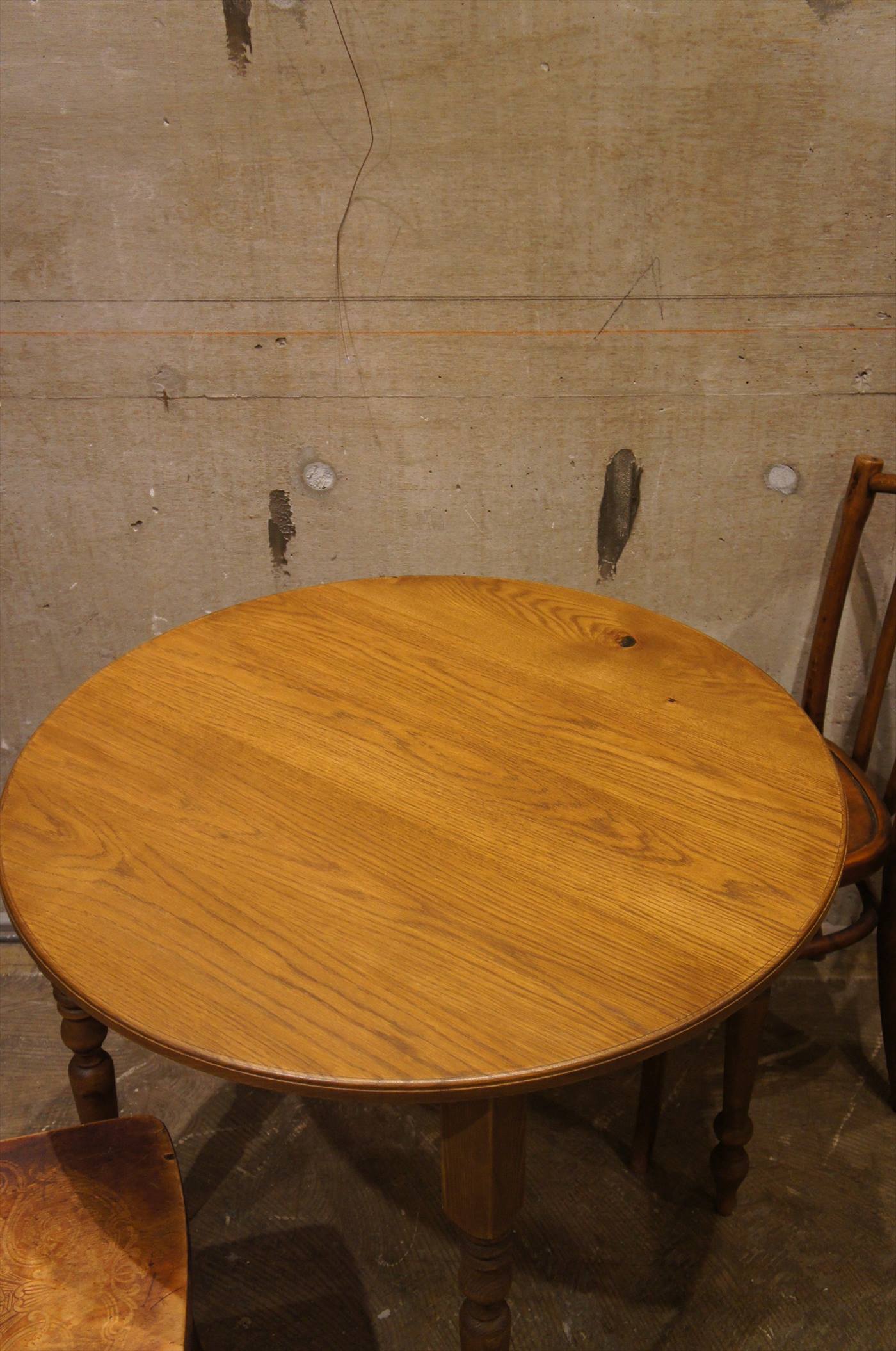 天板厚み2cm 直径85cm オーク材 面取り加工有 フレンチオーク色/水性ウレタン三分ツヤ スリムレッグ使用