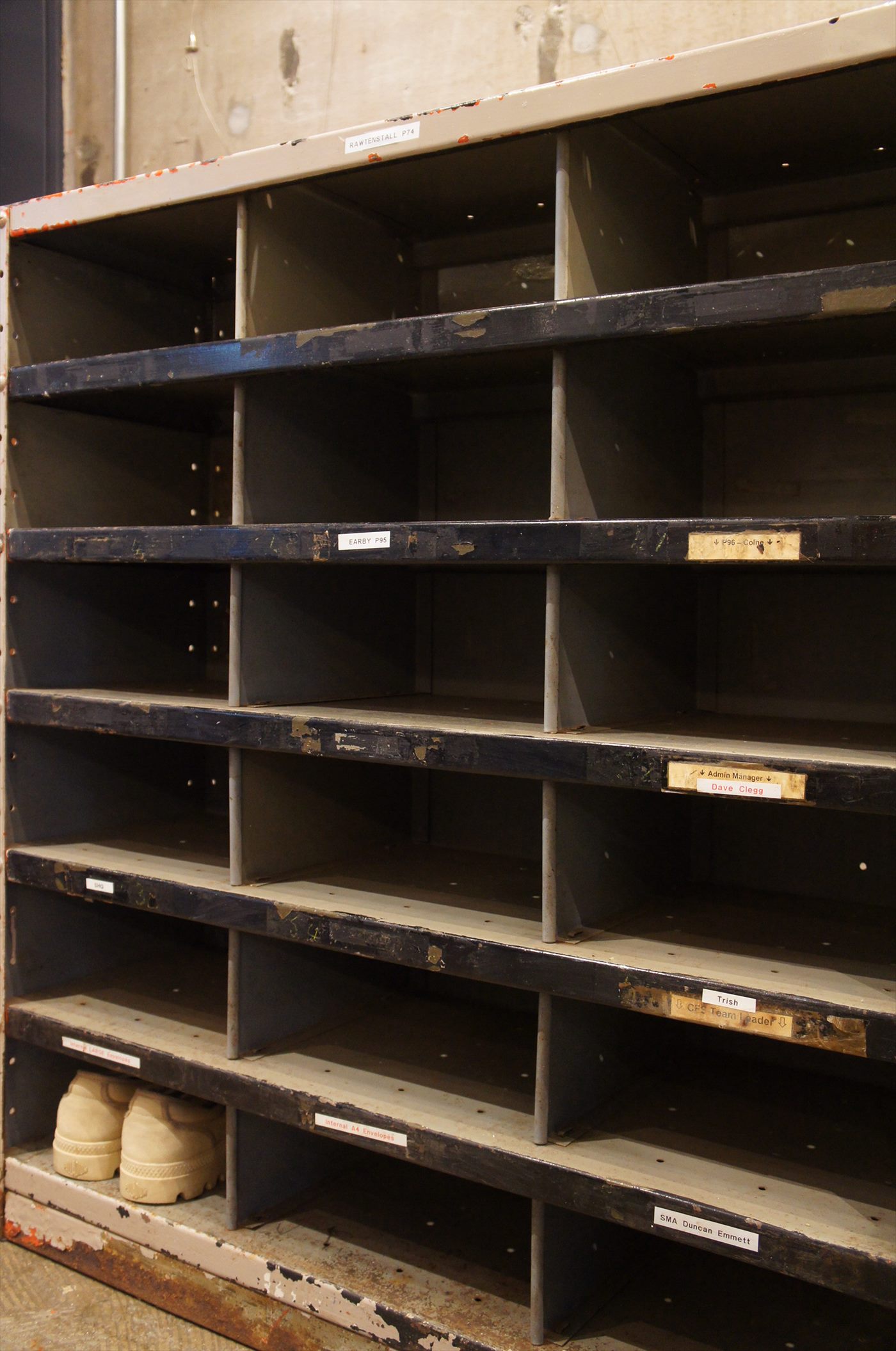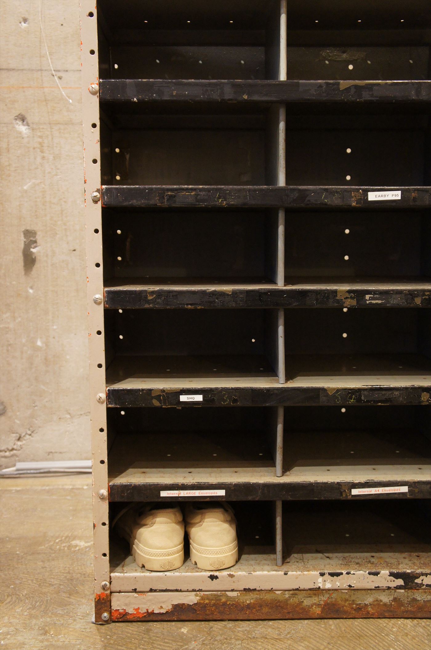 郵便局の仕分け用に使用されていたキャビネット。