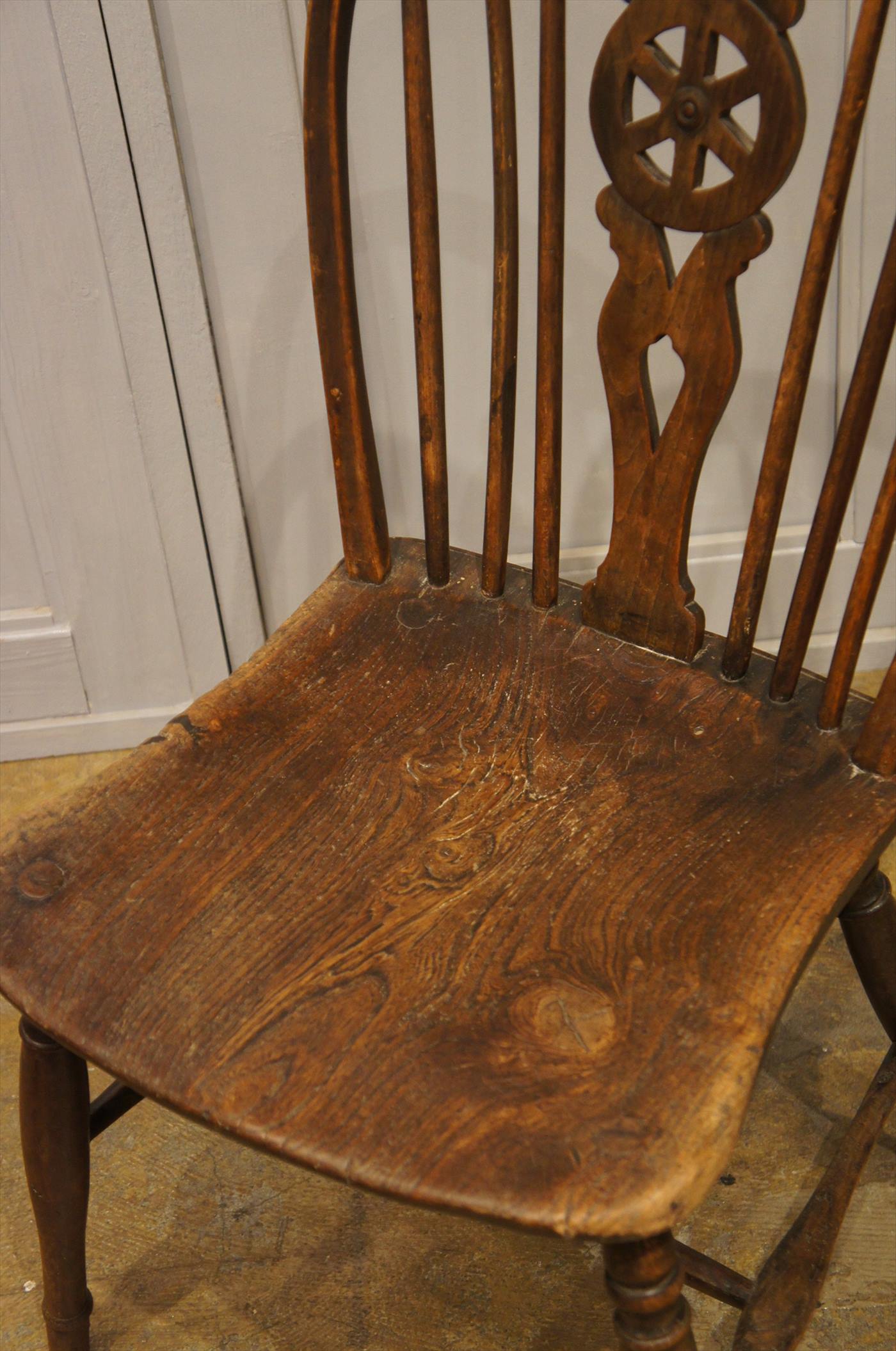 通常扱いの木の椅子も十分古いですが、こちらはさらに年代、質感に深みがある椅子