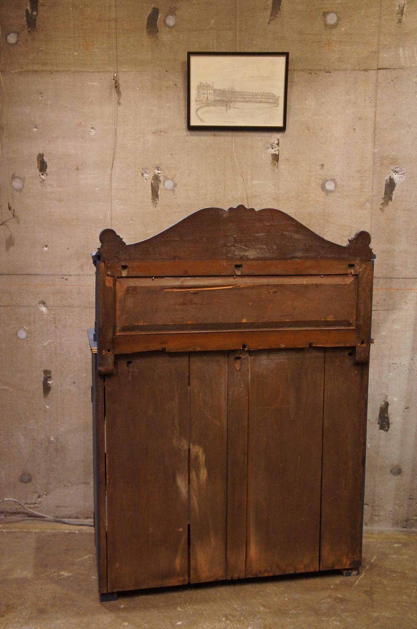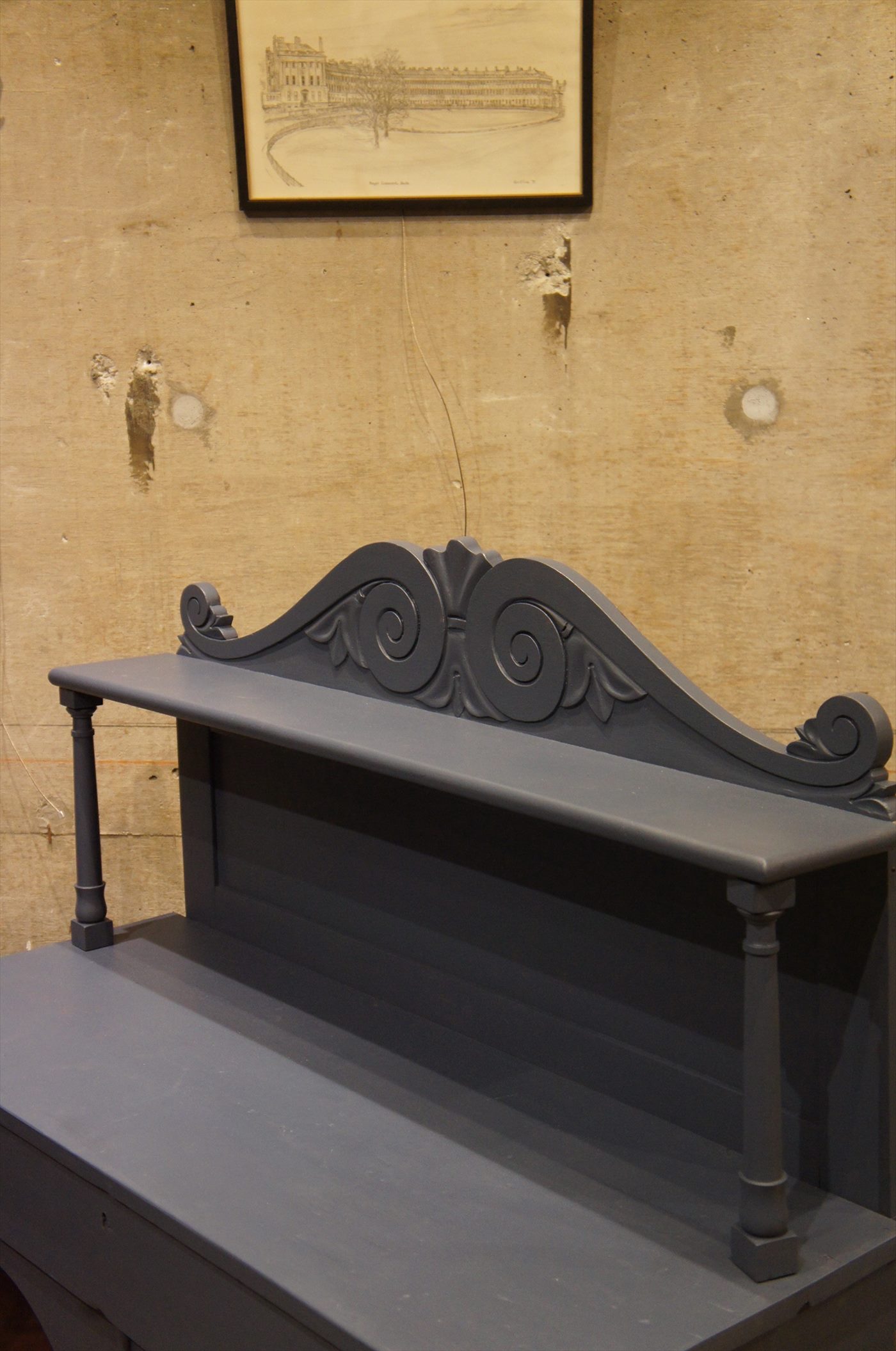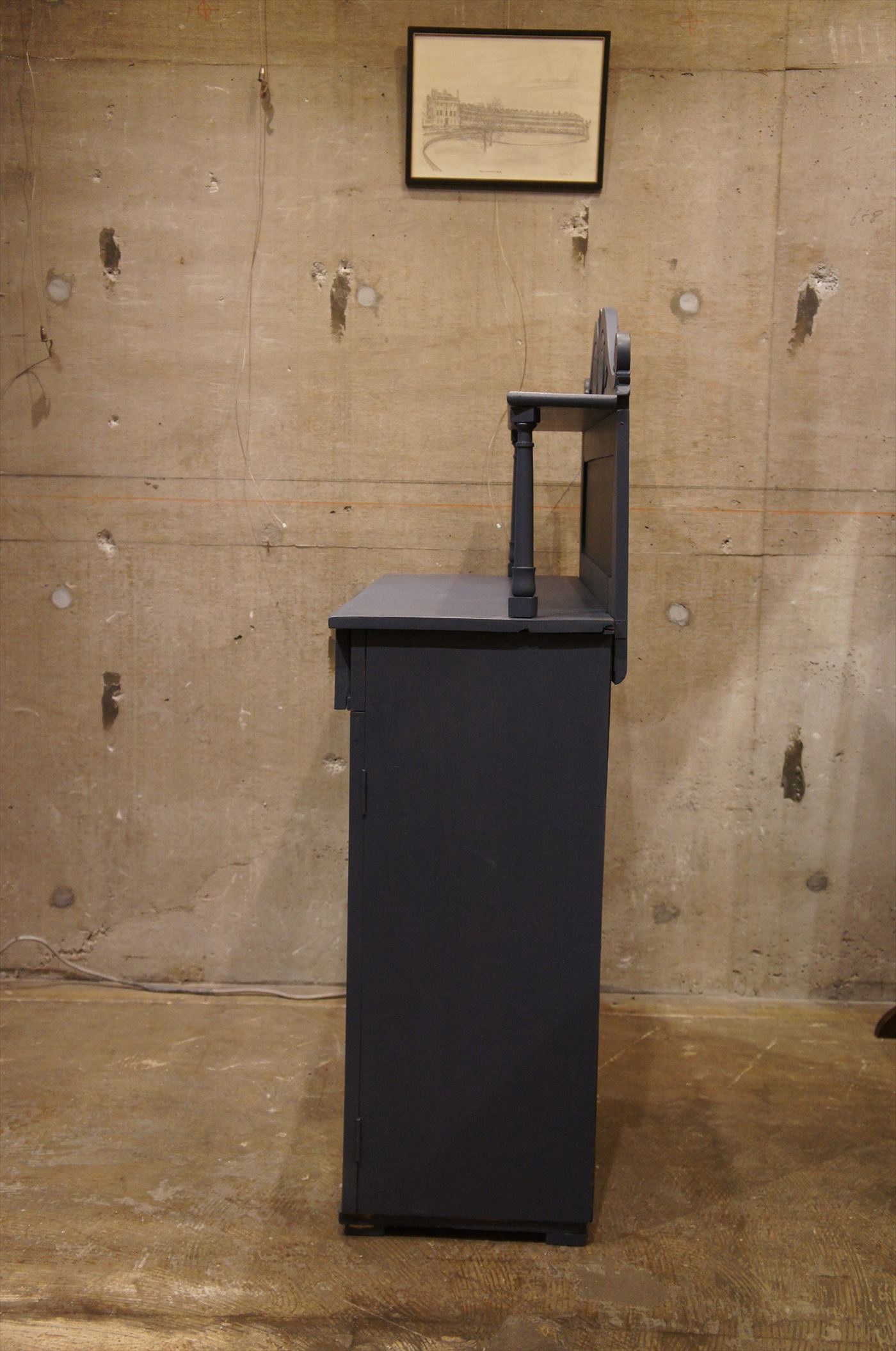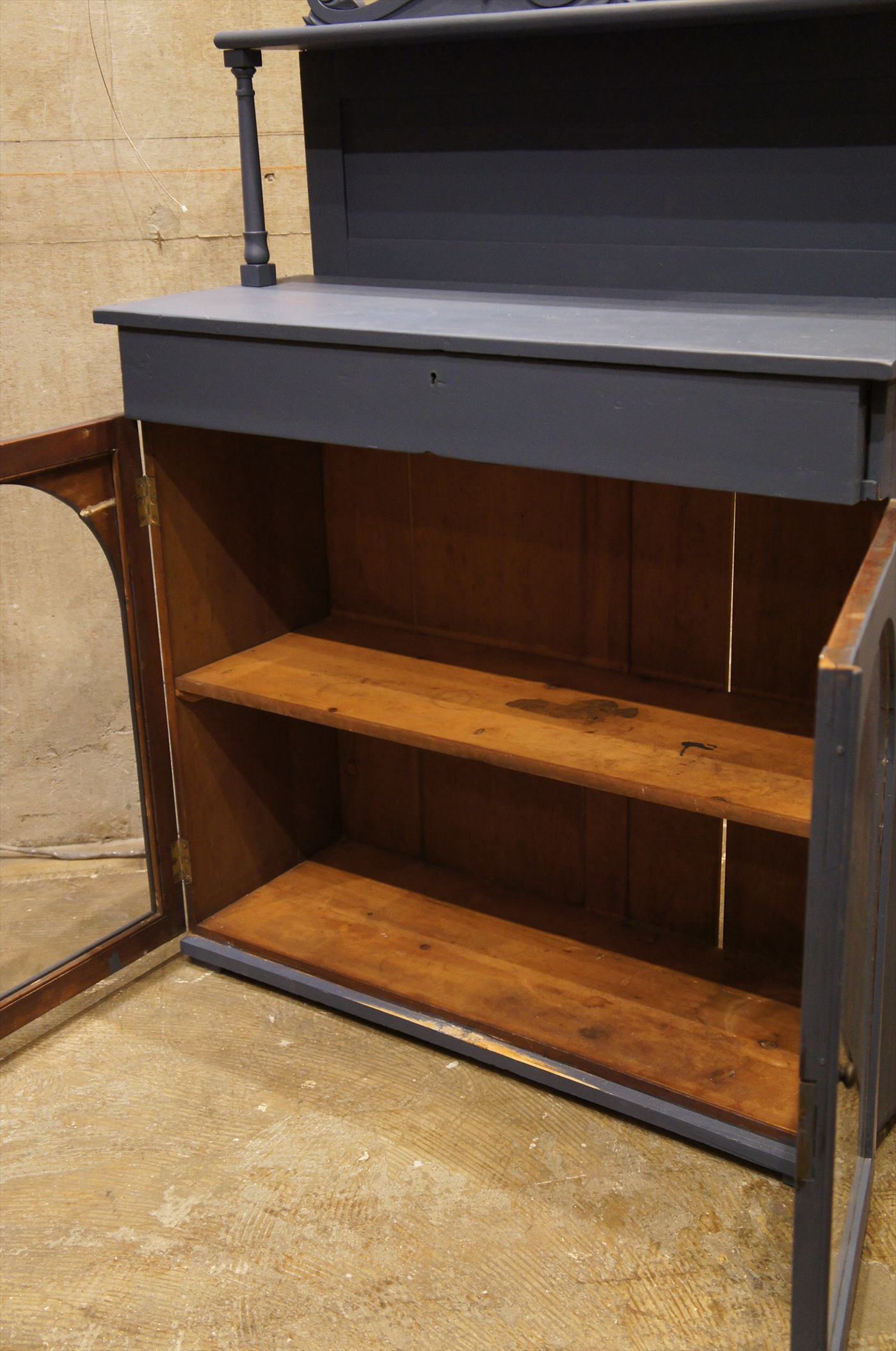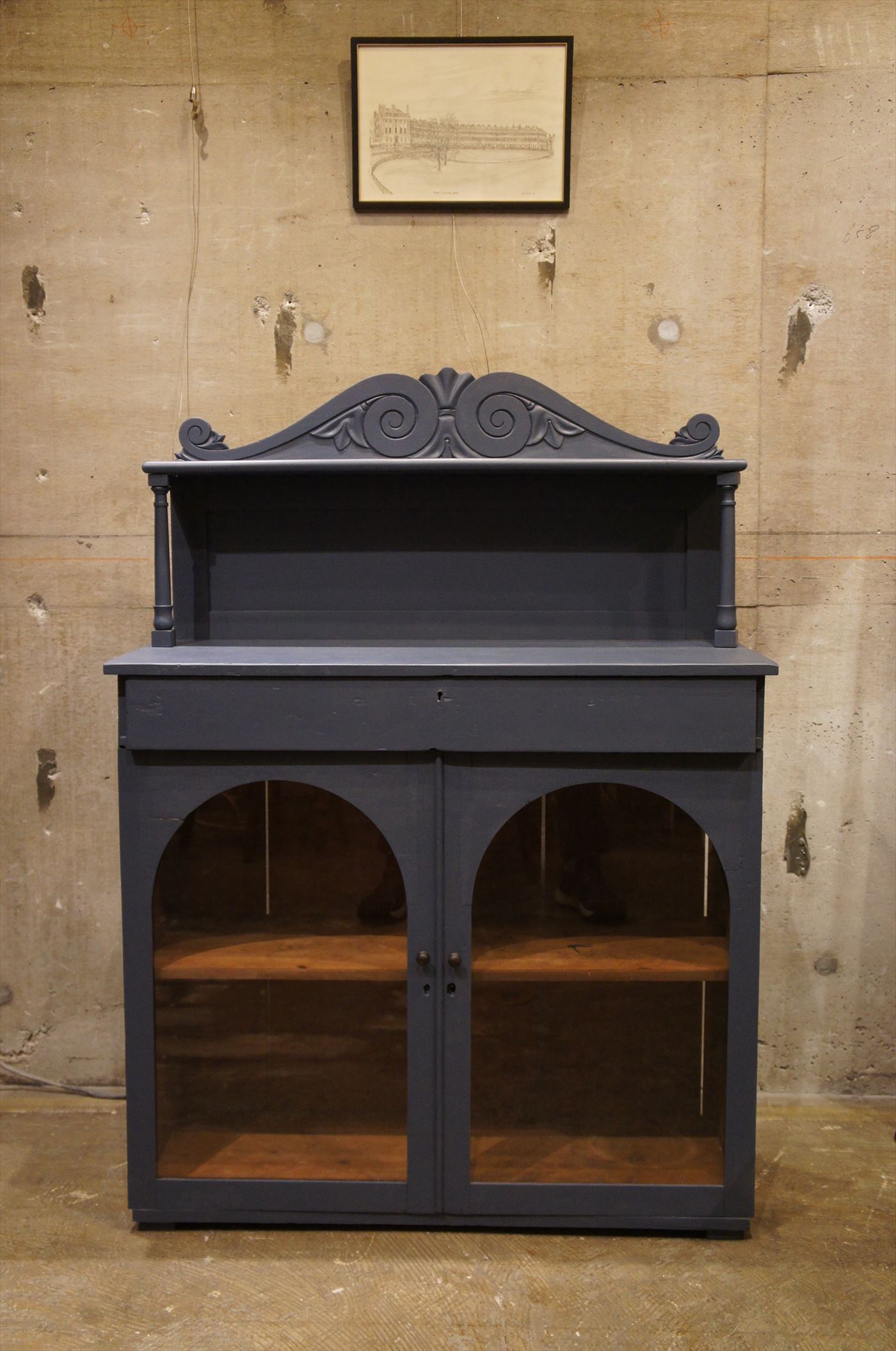 下の収納部は、ガラス戸になっており窓部がラウンドトップになっているのもフランスらしいデザイン。