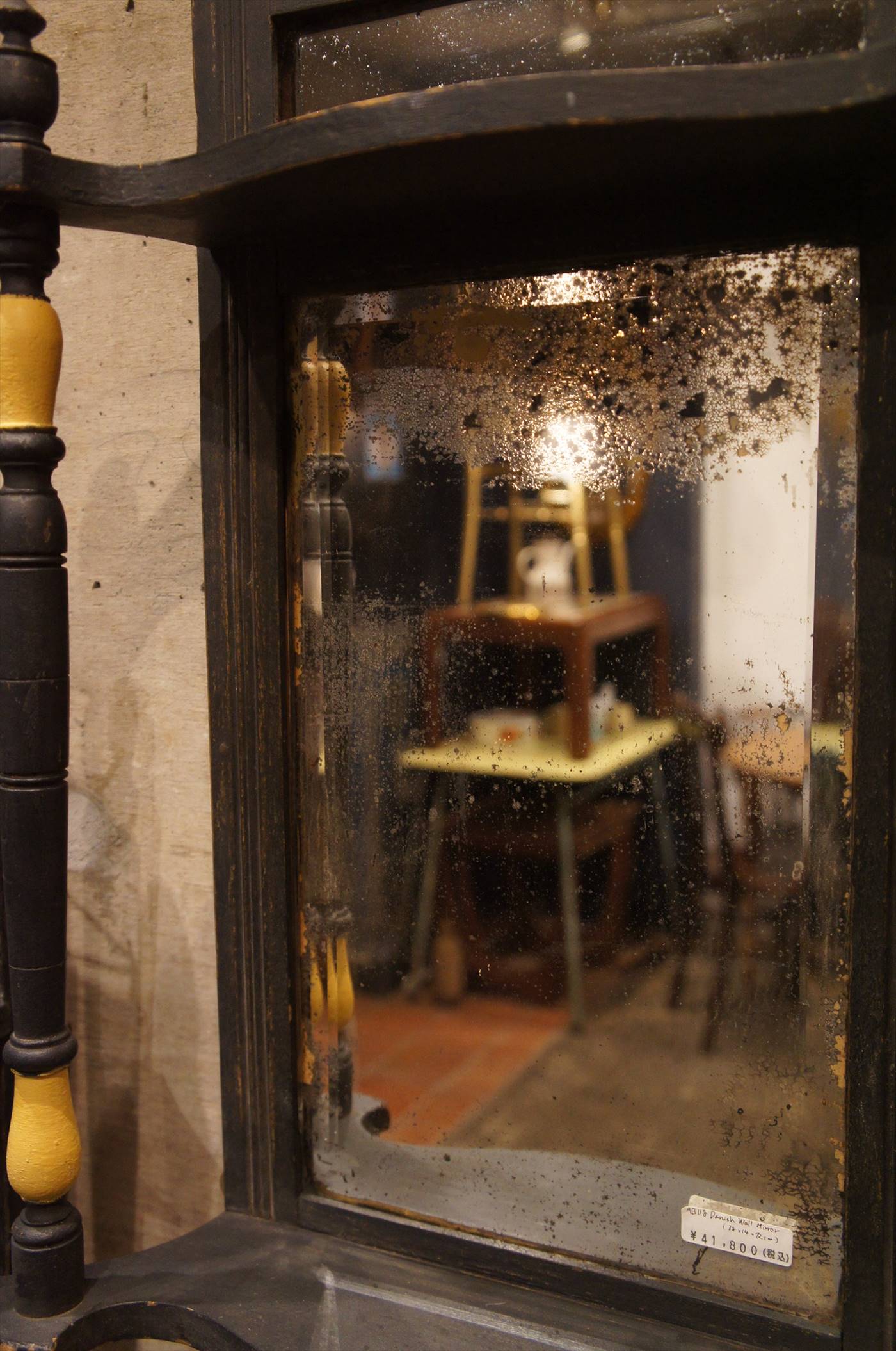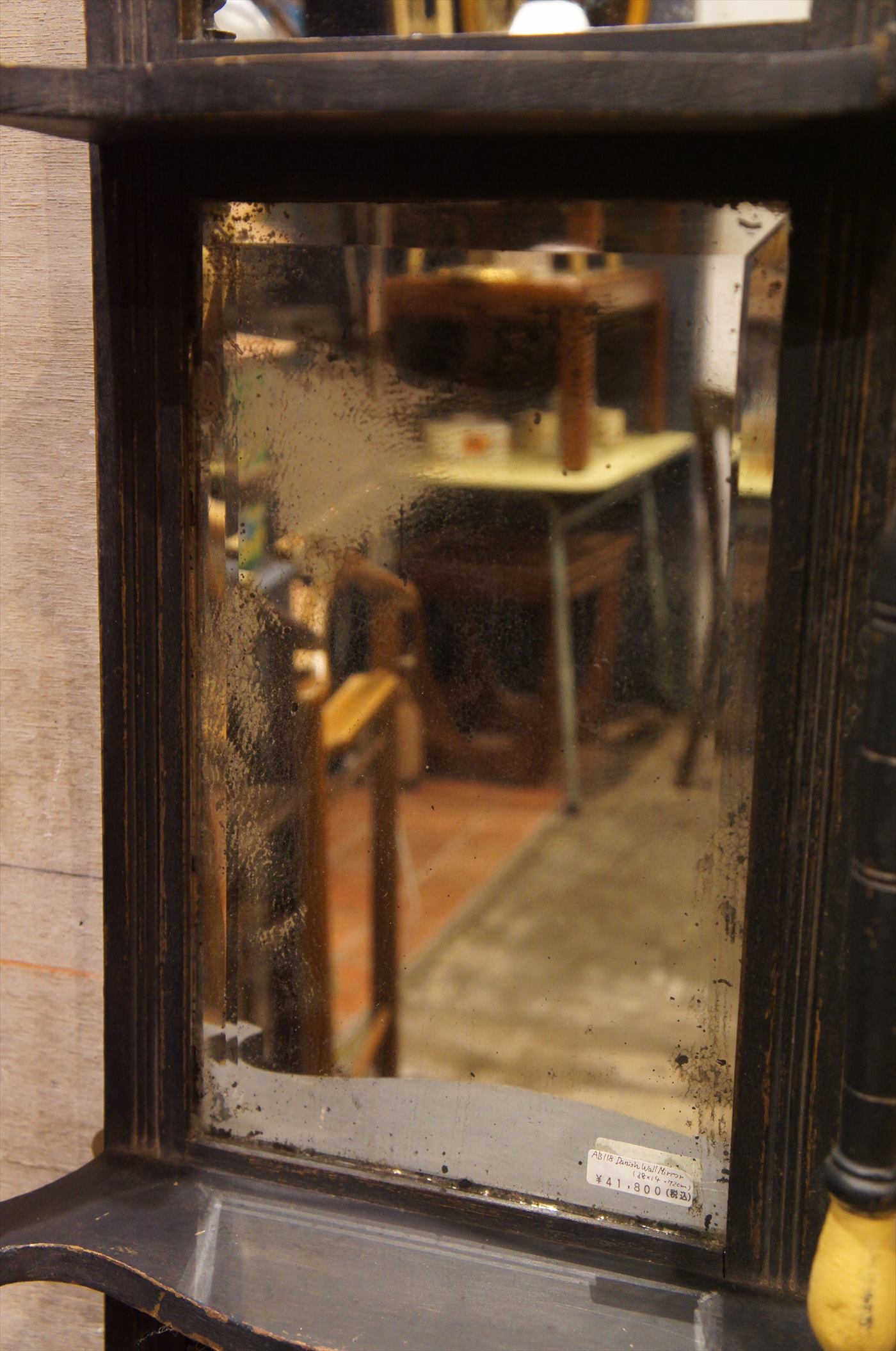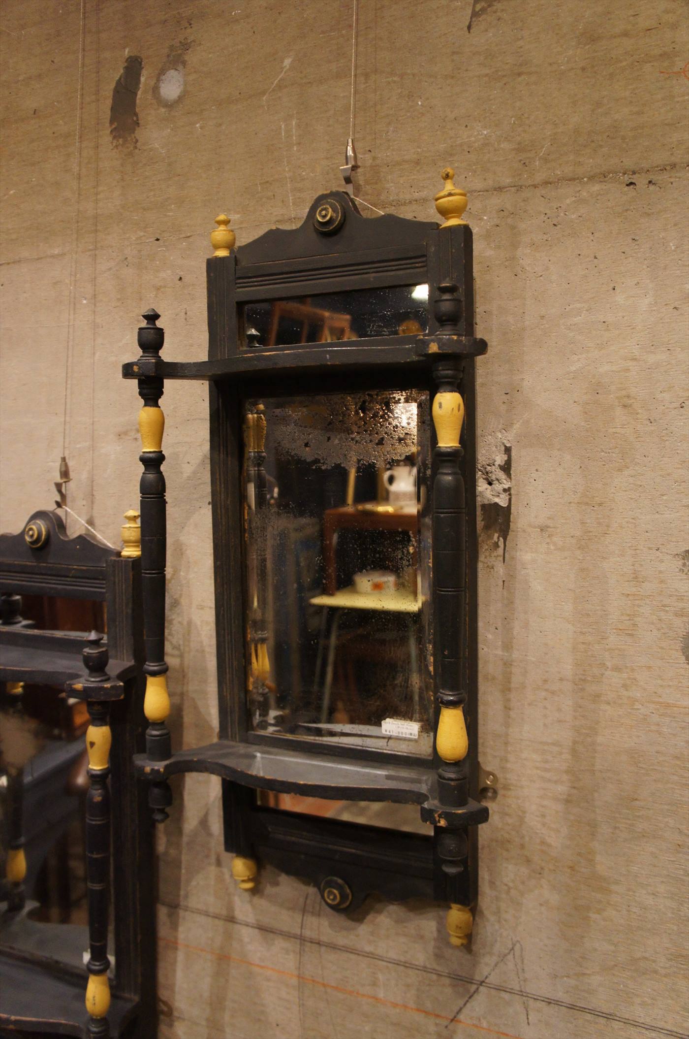 ミラー上下部に飾り台のようなデザインが施されたミラー