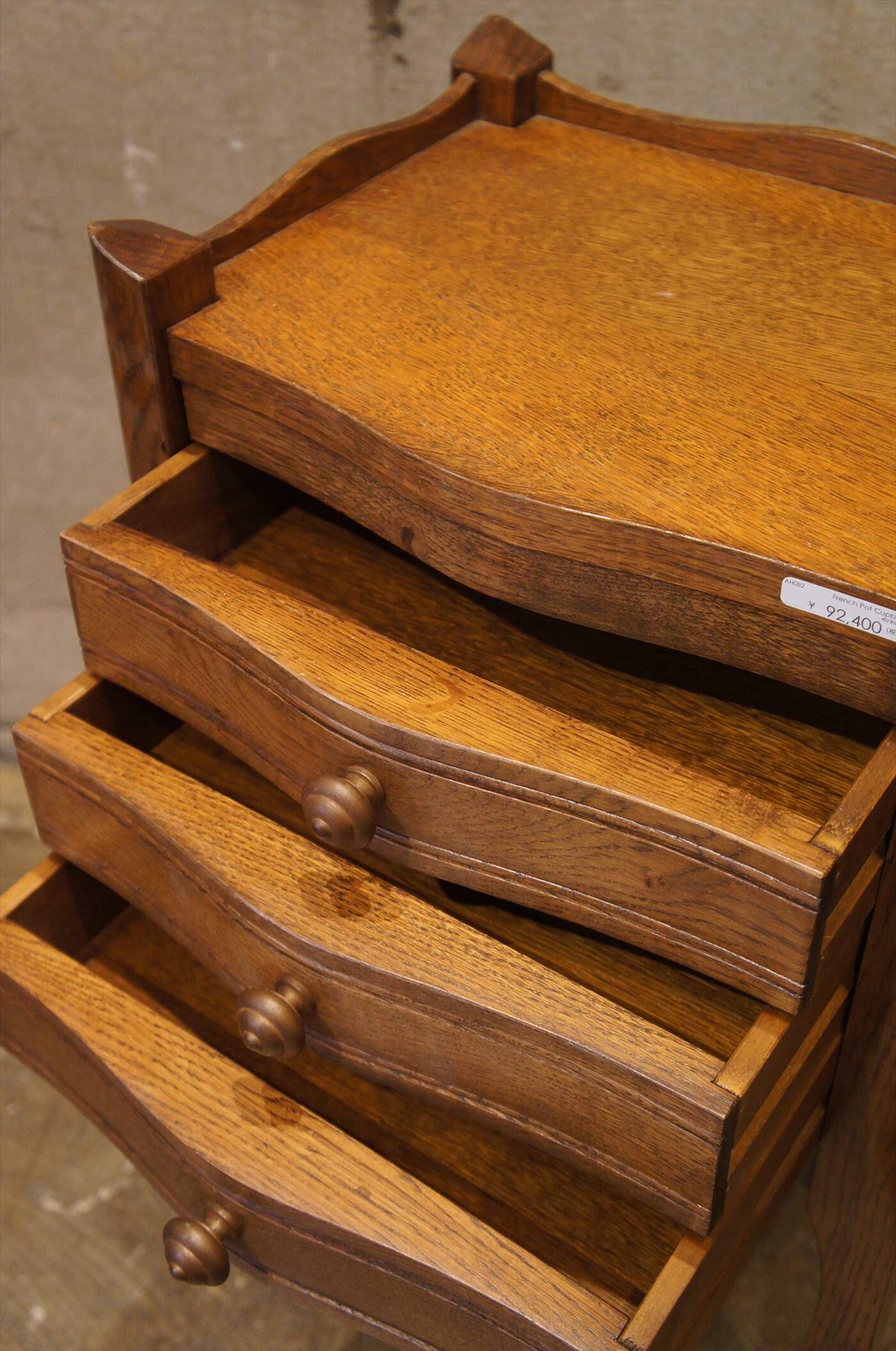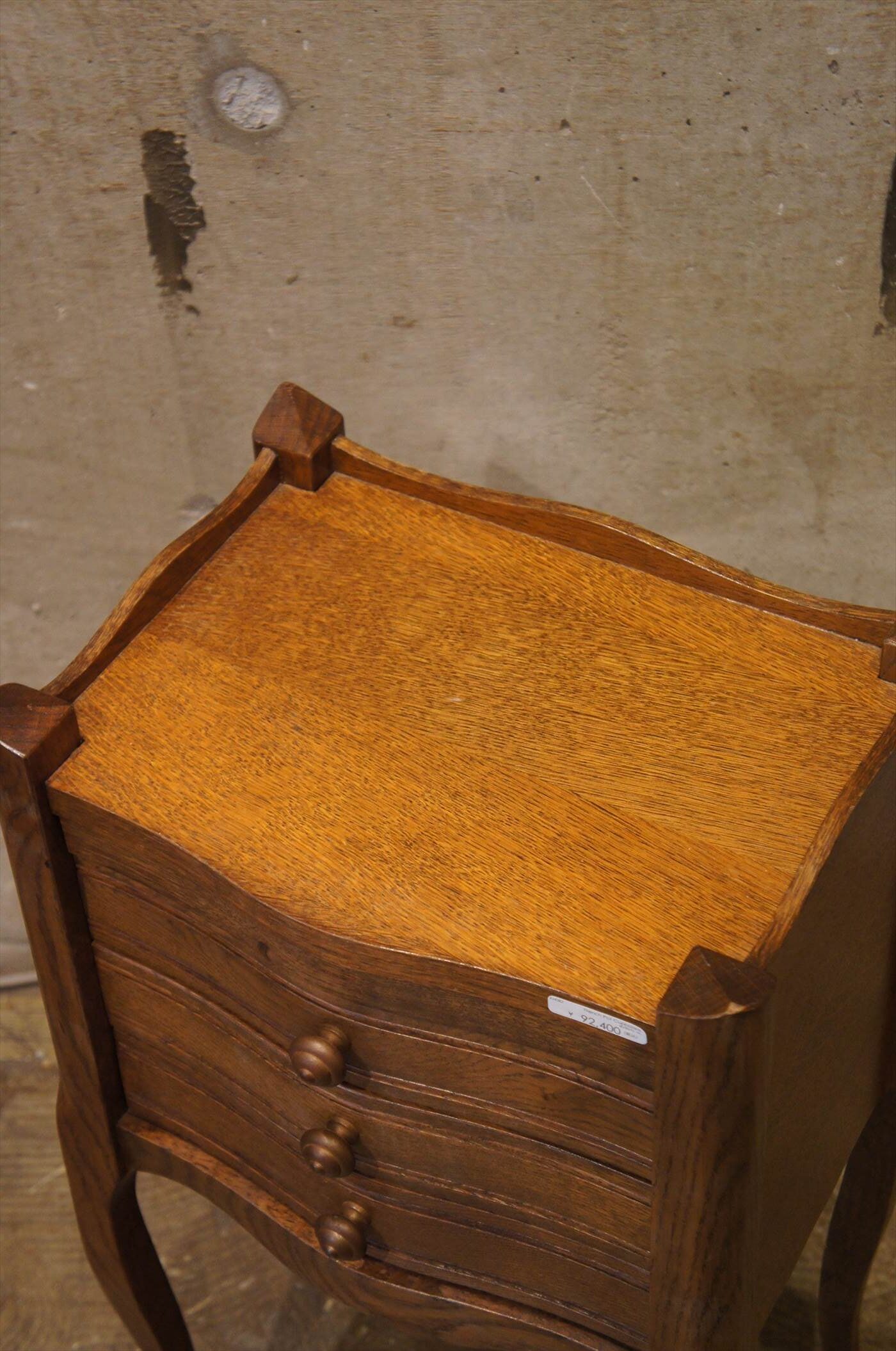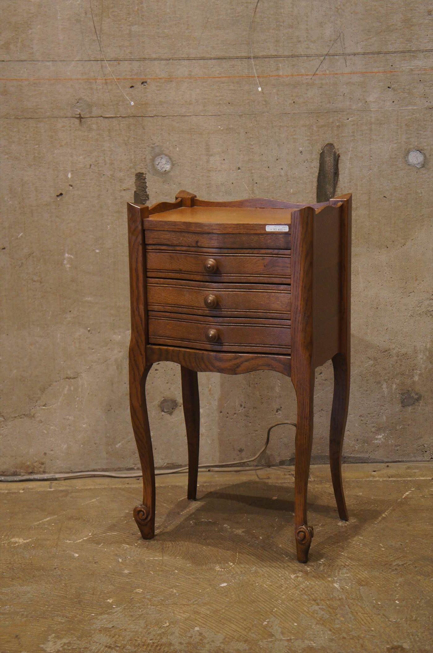 コンパクトながら、引き出しが3段ついており、実用的でありつつ、上品なたたずまい。