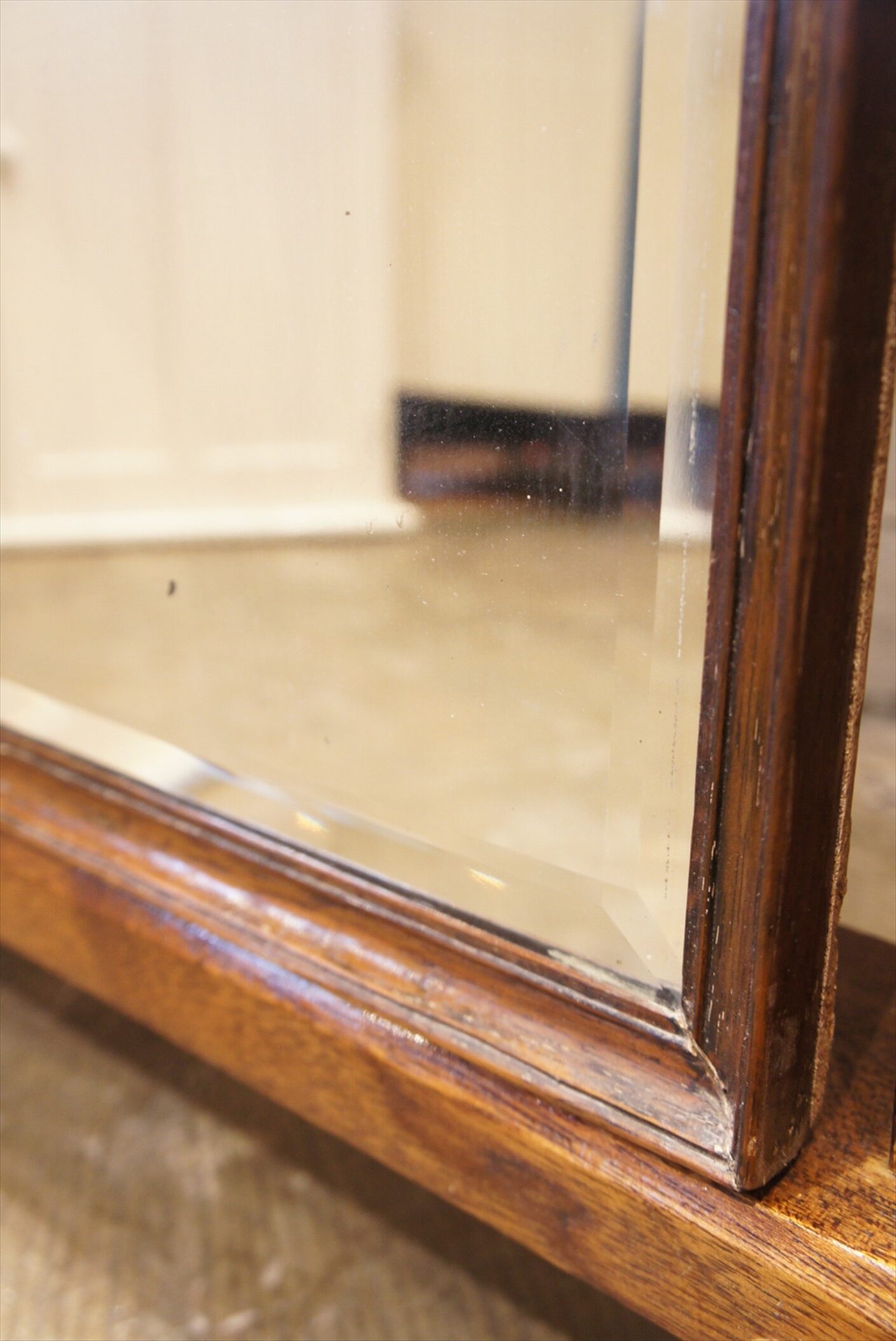 ミラーは、面取りガラスで肉厚で贅沢。※全体的に状態はいいのですが、左下部分に長い傷があります。