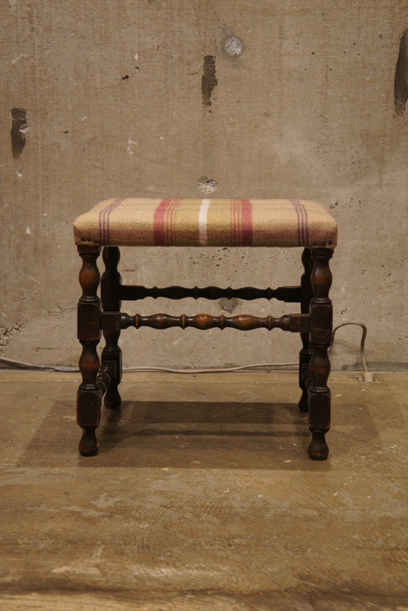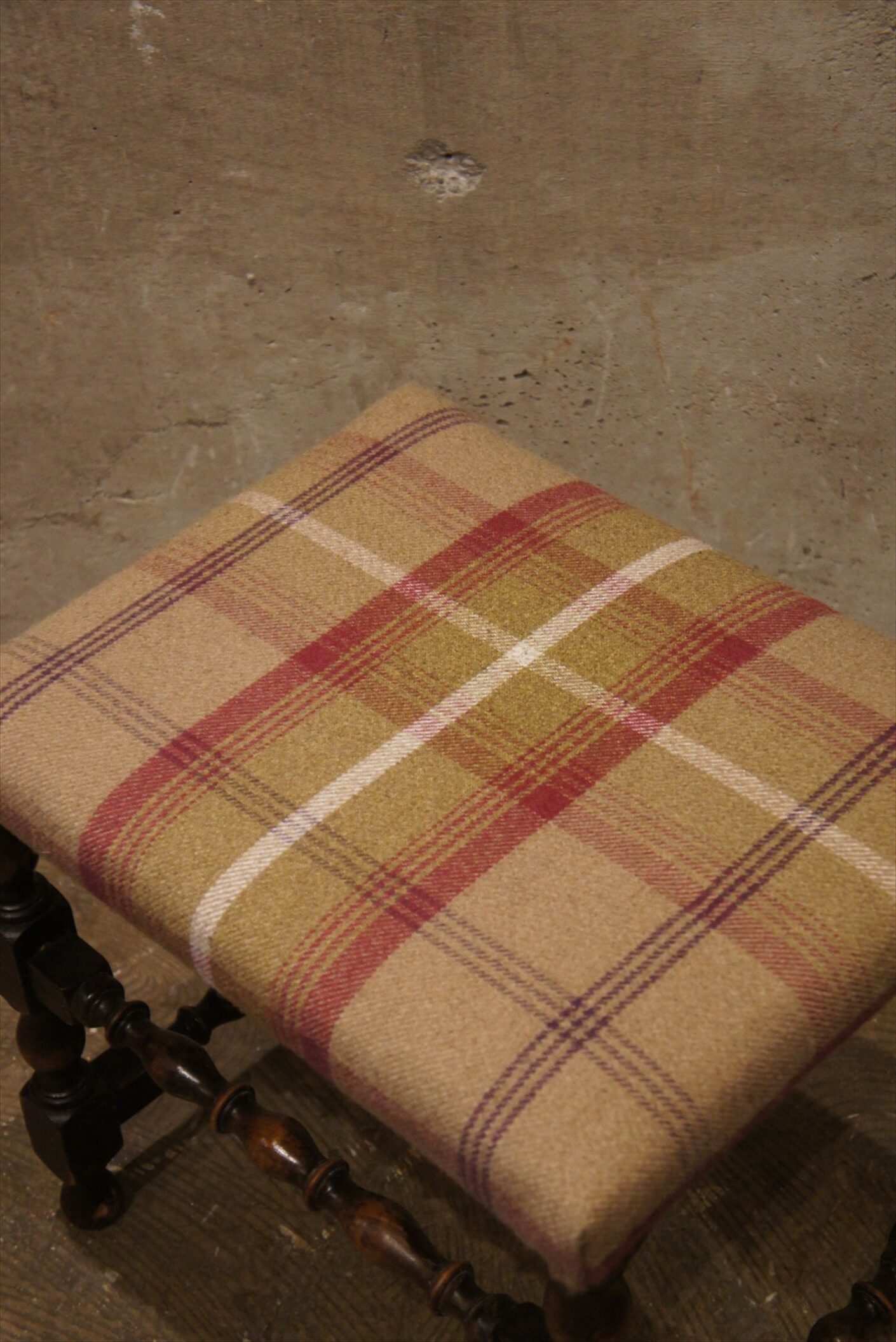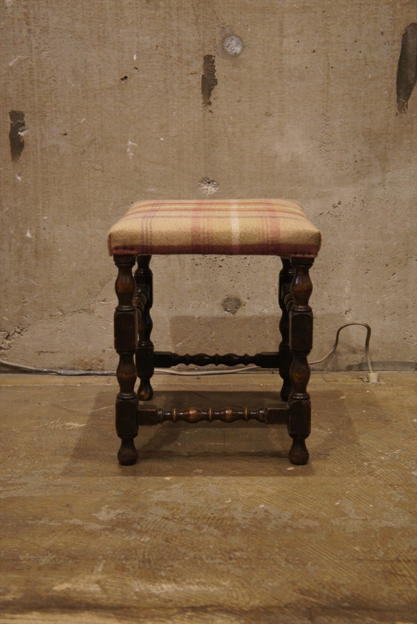 装飾性の高いウッドの脚部におしゃれなウールのファブリックの組み合わせ。