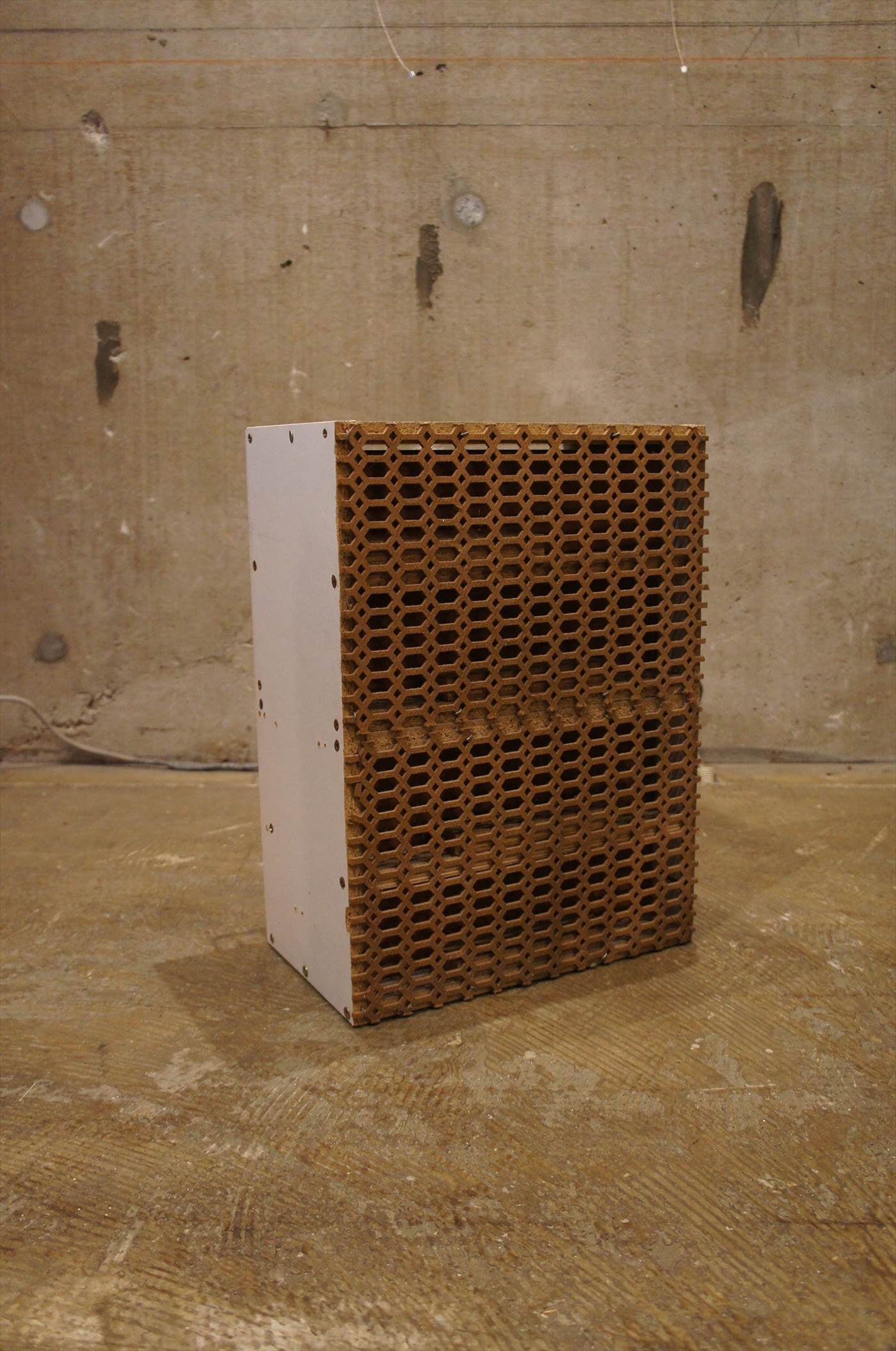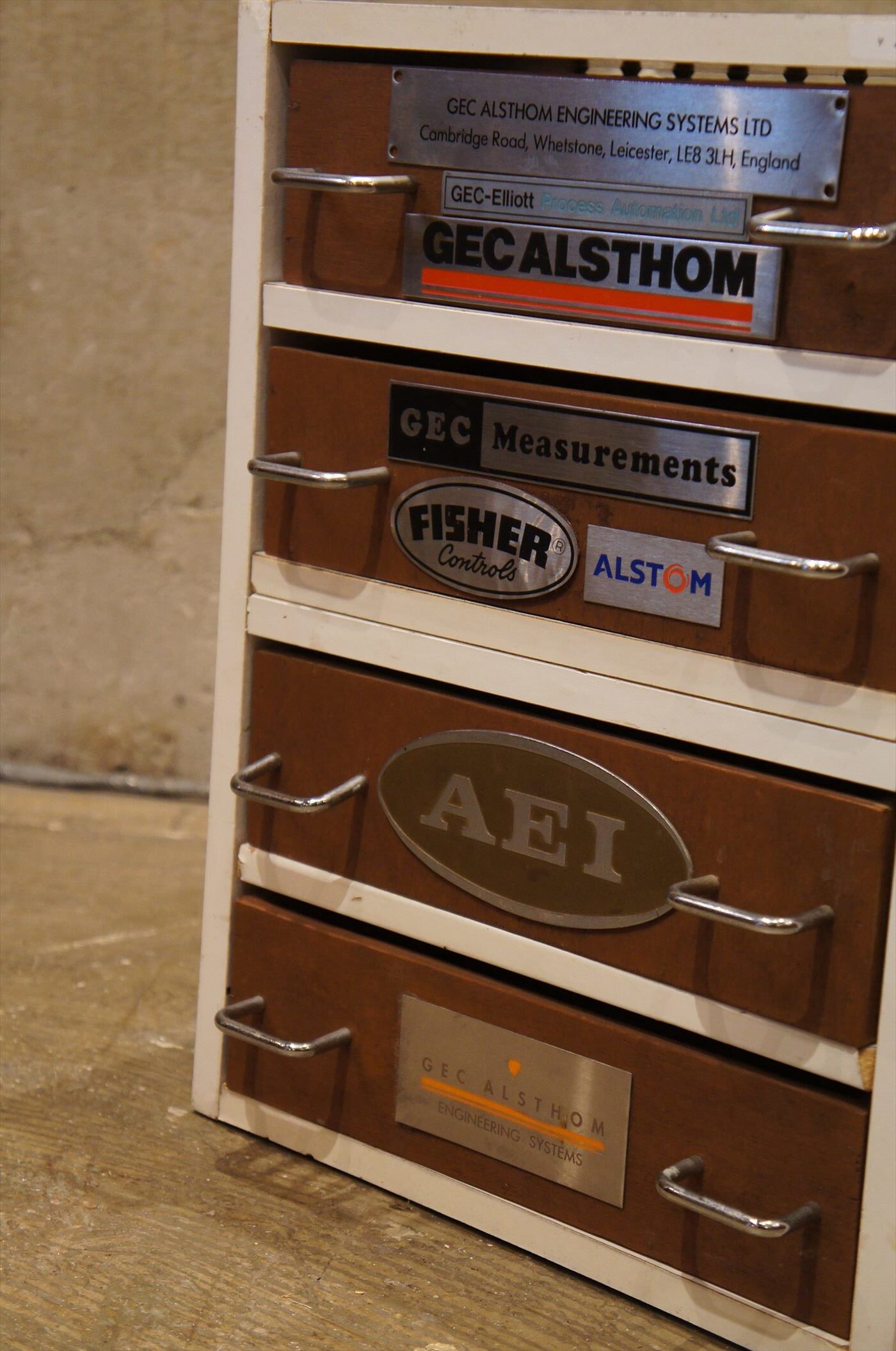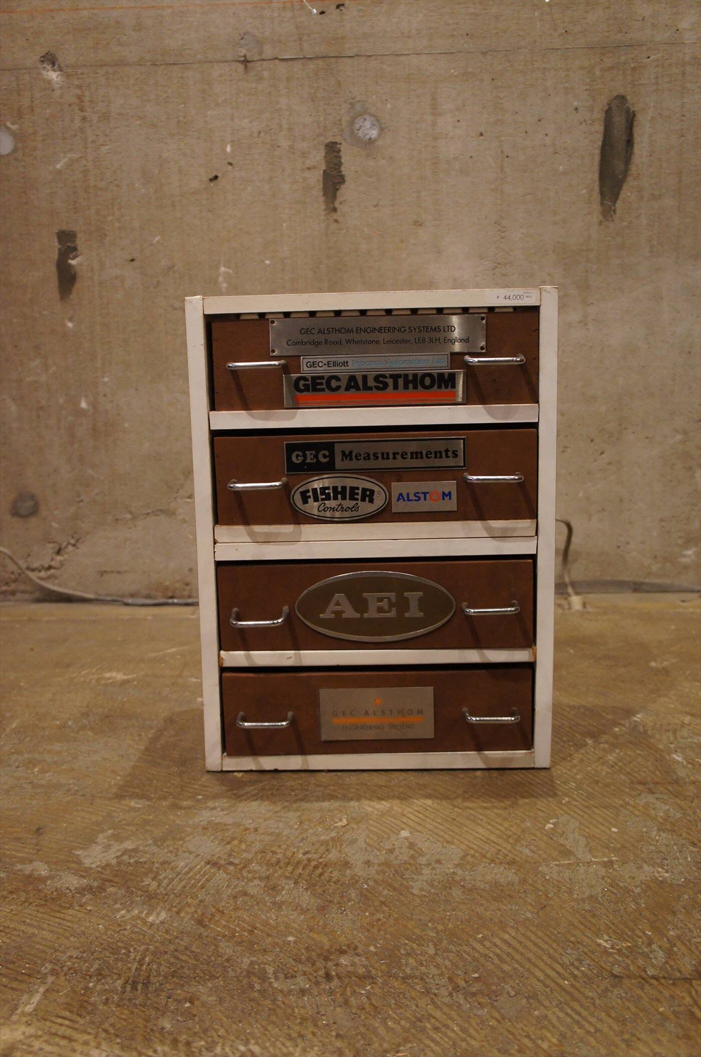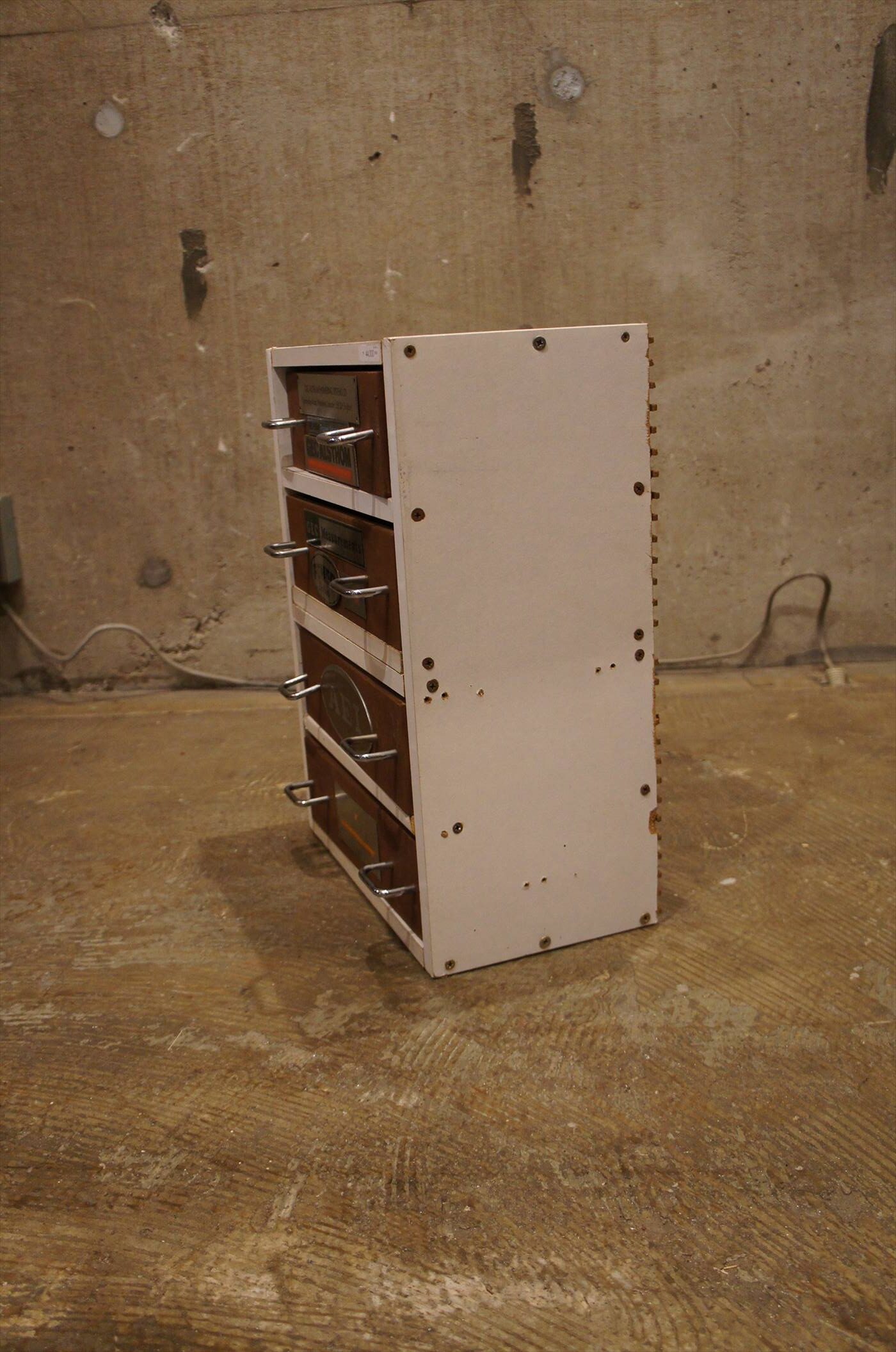 工場、職場などで、廃材を使って自作された引き出し。