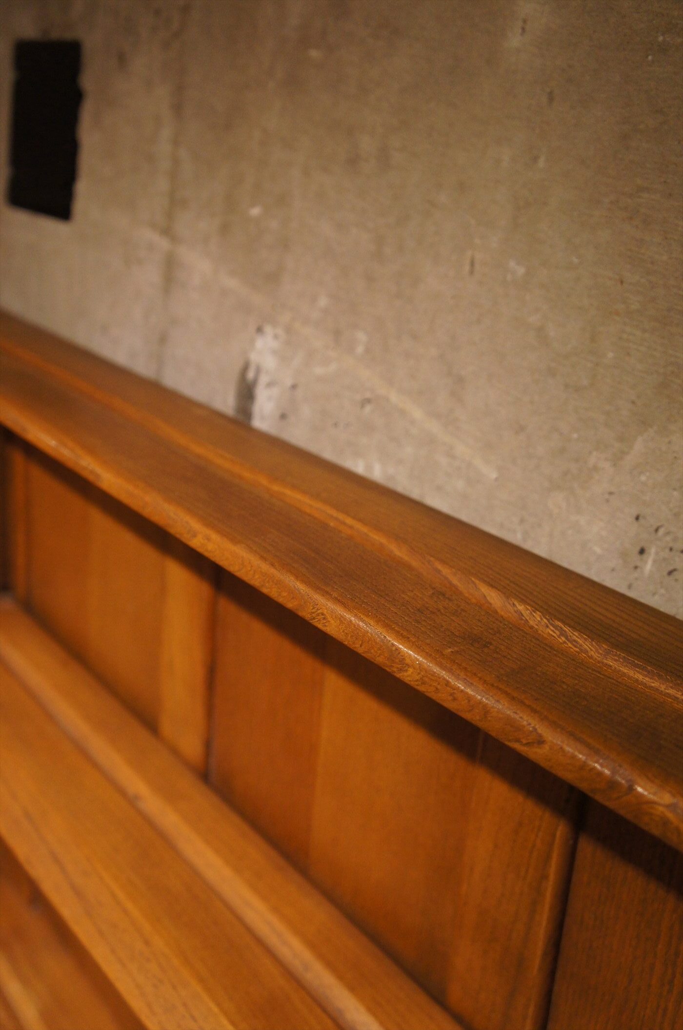 各棚板には溝が彫り込まれており、プレートを立てかけて飾ることが可能。