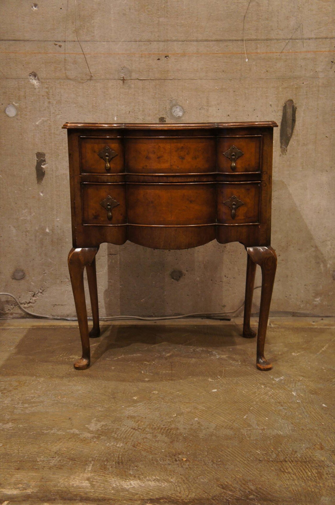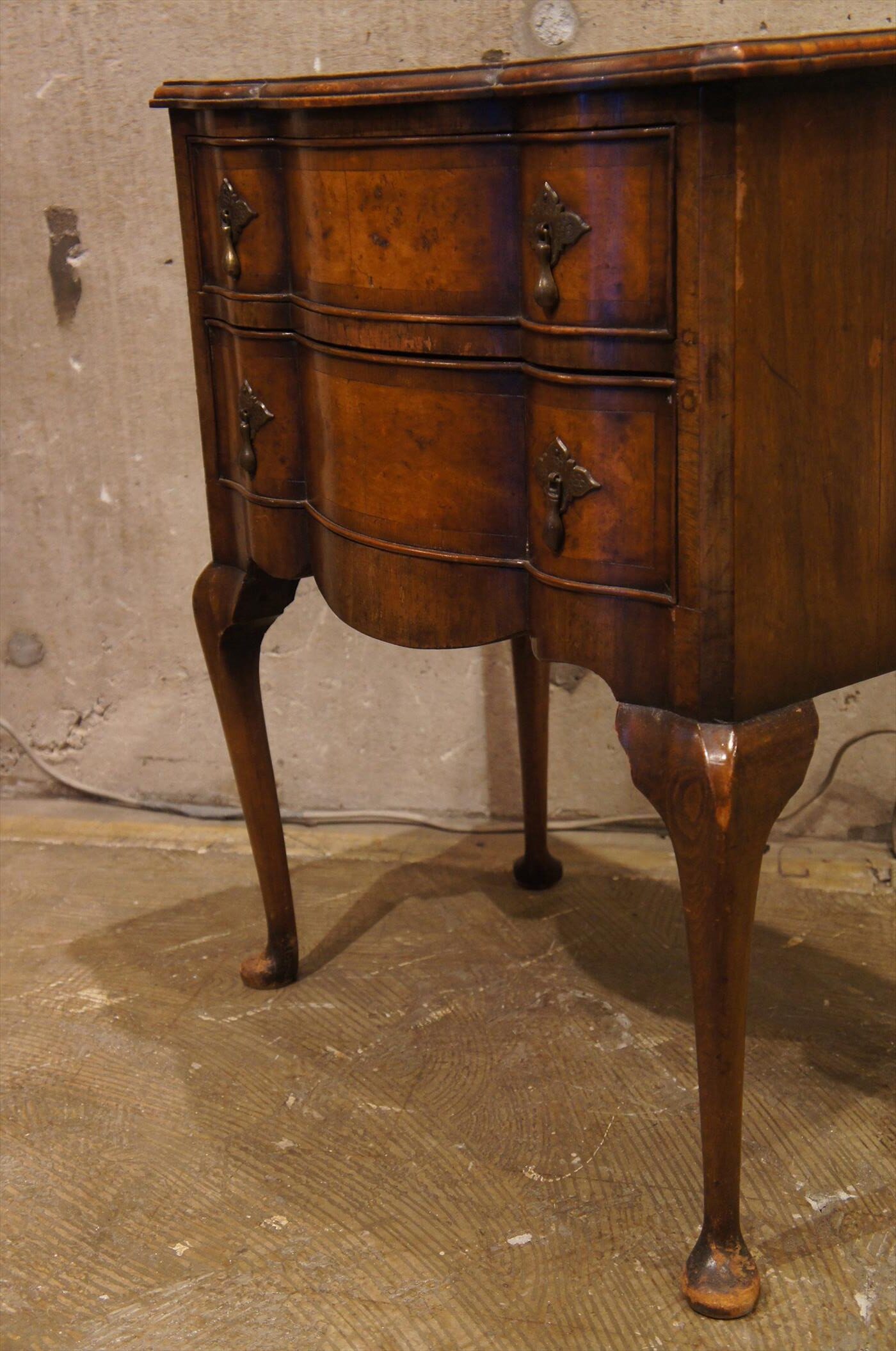 装飾性にも富んでおり、変形型の天板と引き出しが存在感があります。