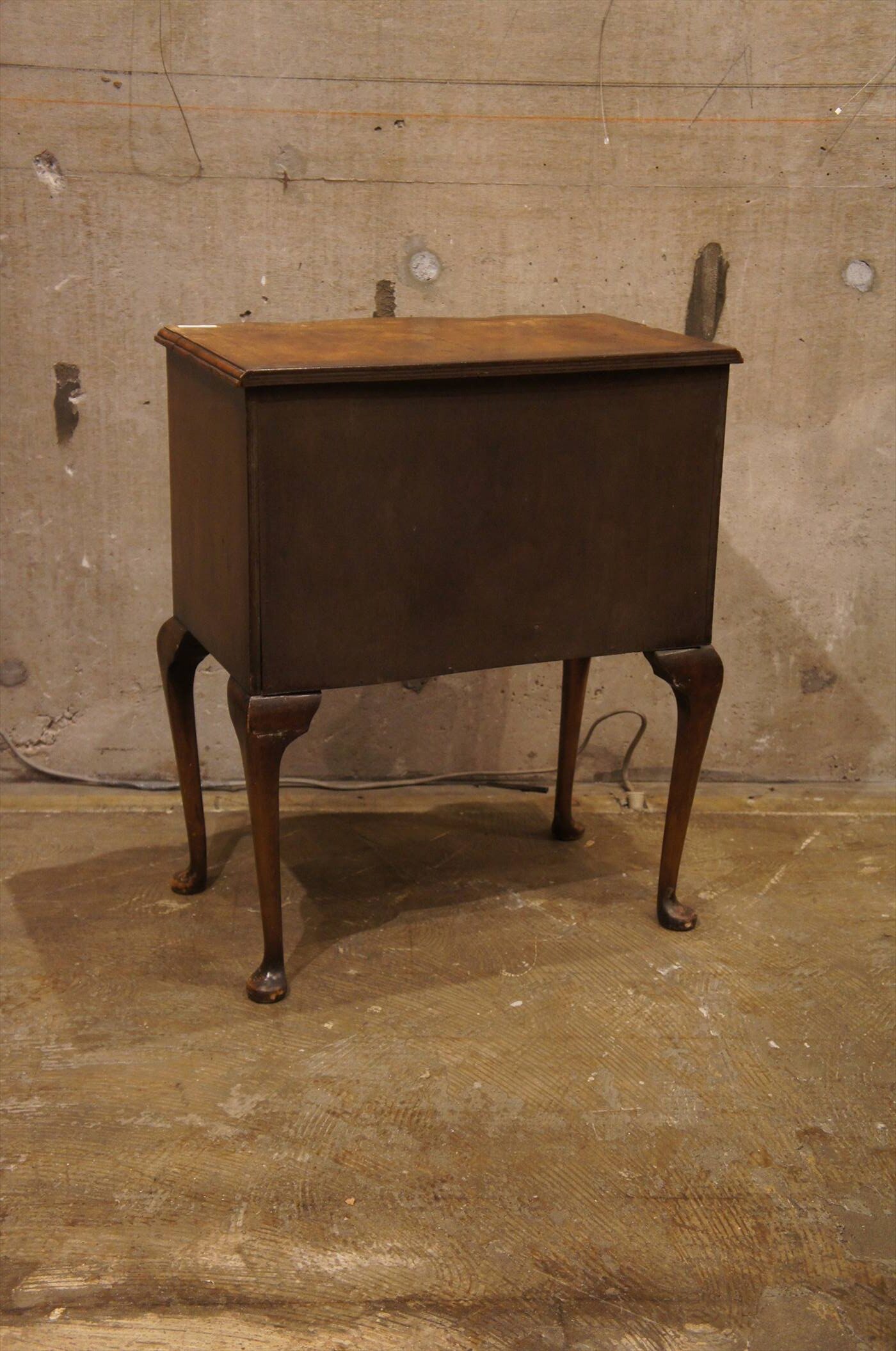 マホガニー材の本体に、ウォルナット(クルミ)材の突板を施した優雅なデザインのチェスト。