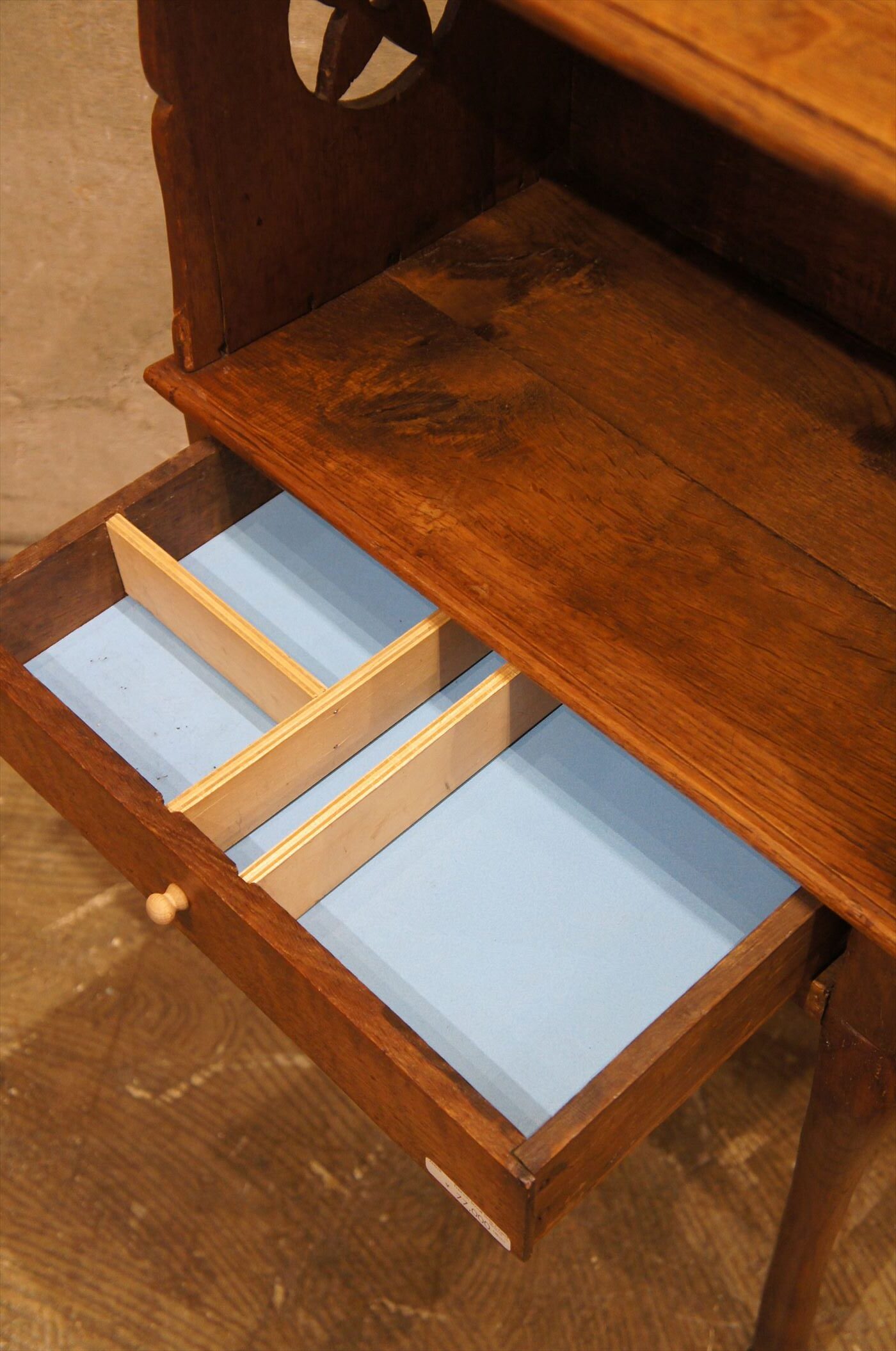 引き出し内部は、前の持ち主がカスタムしており、メラミンボードや仕切りなど、オリジナルとは異なる仕様になっています。