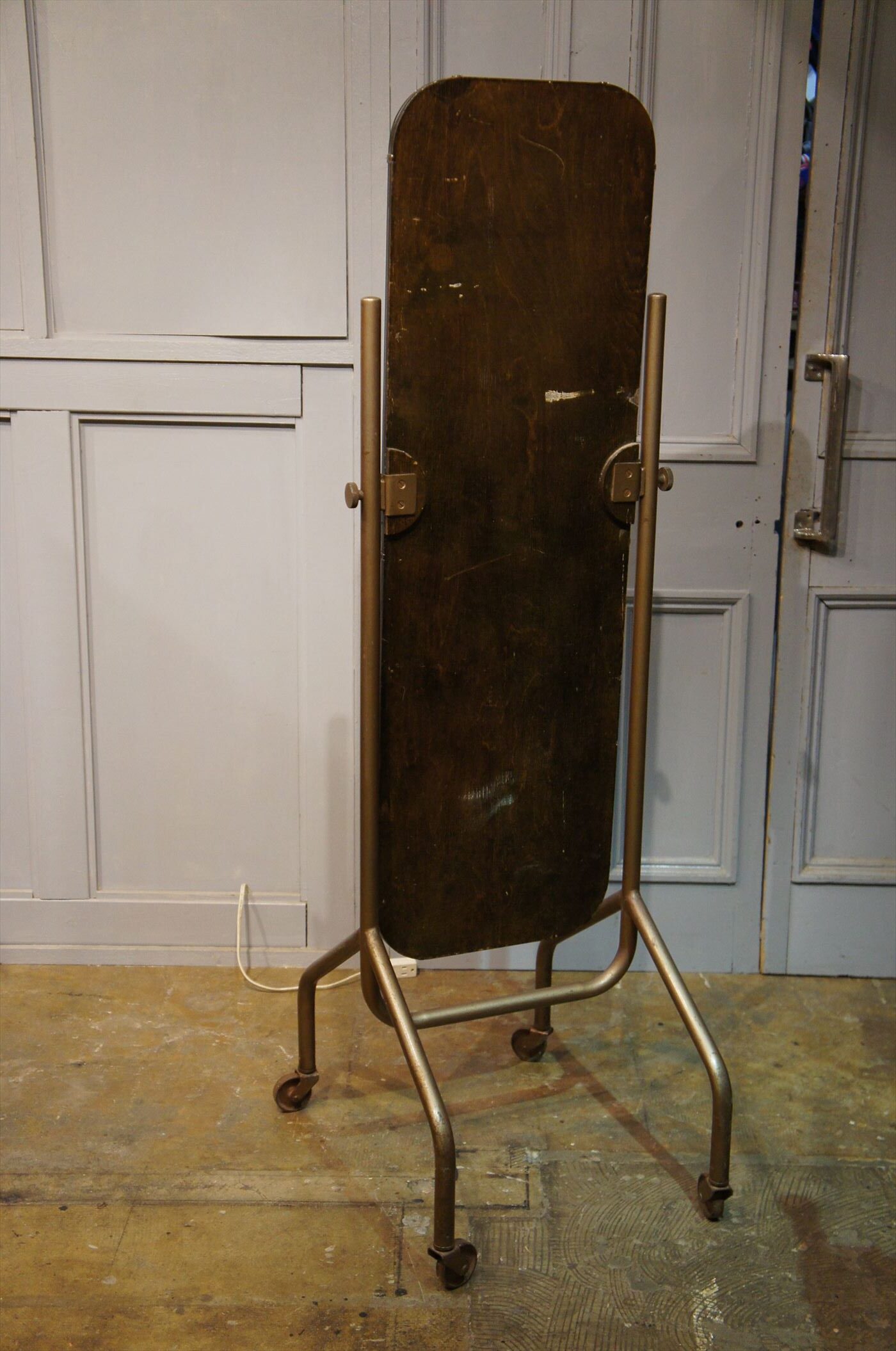 おそらく業務用でしようされていた、車輪付きの姿見。