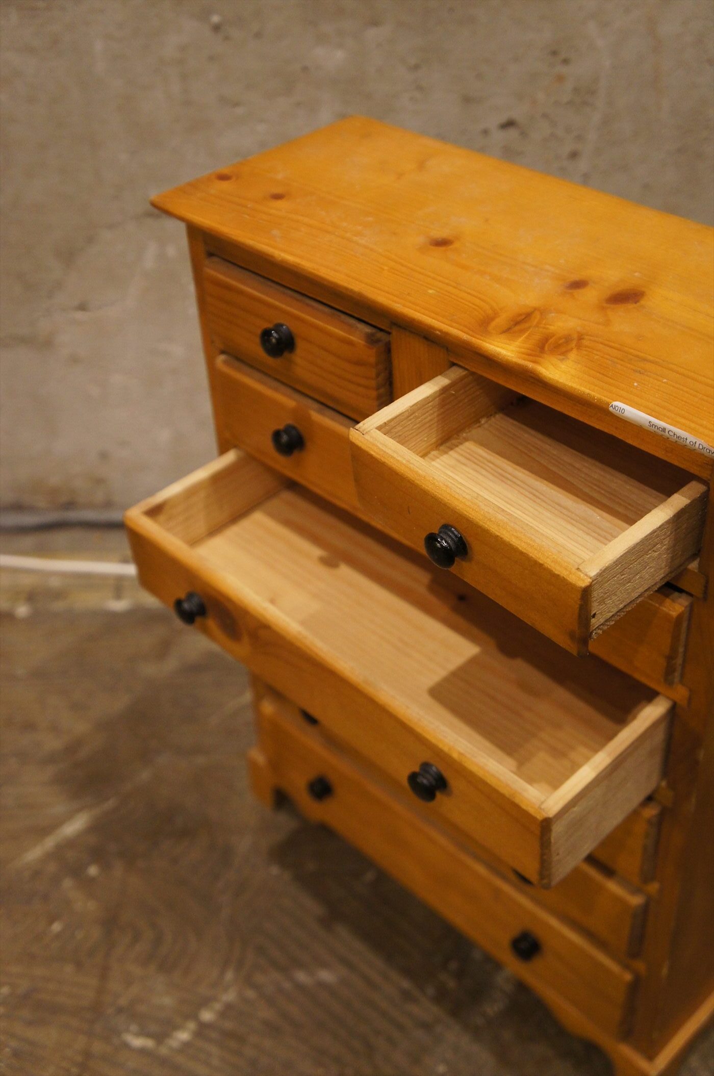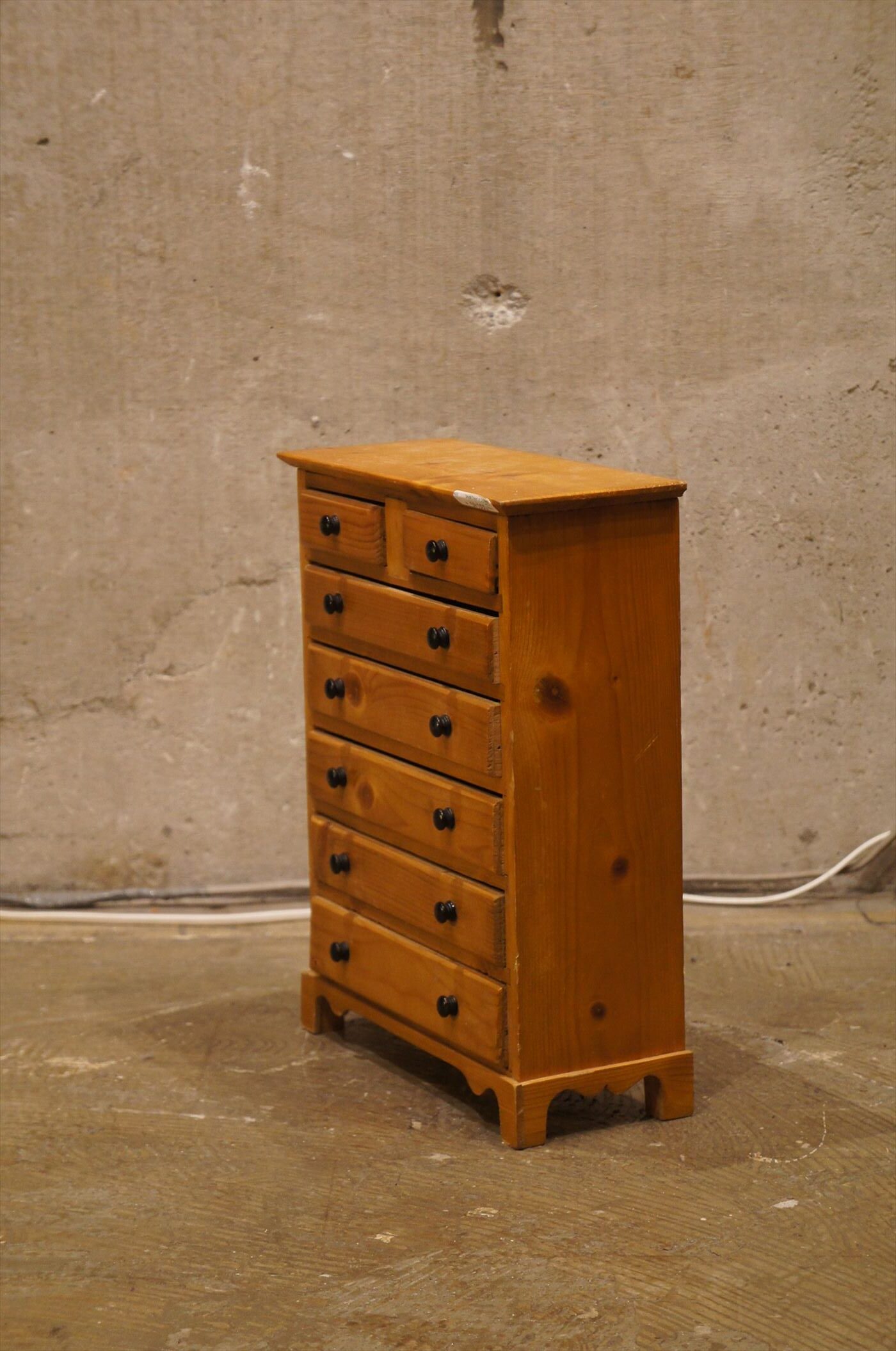 パイン材の優しい雰囲気とそれを引き締める黒いつまみがおしゃれ。