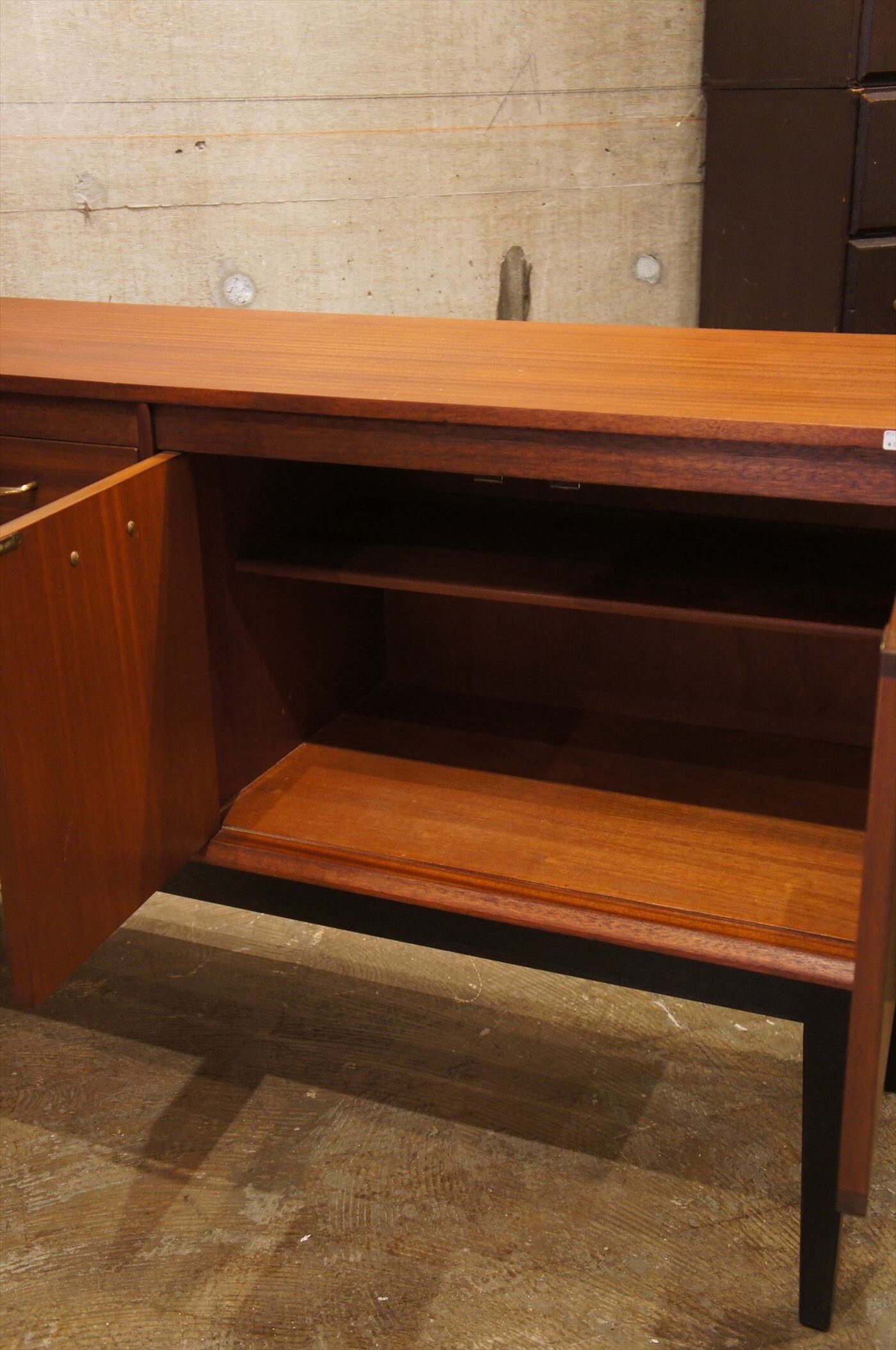 上質なチーク材と全体を引き締めるブラック脚の組み合わせがスタイリッシュ