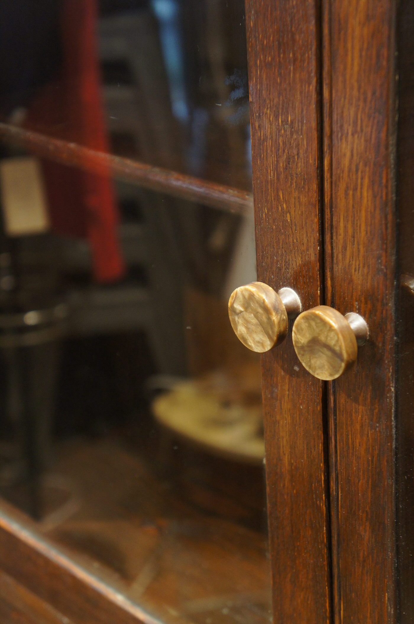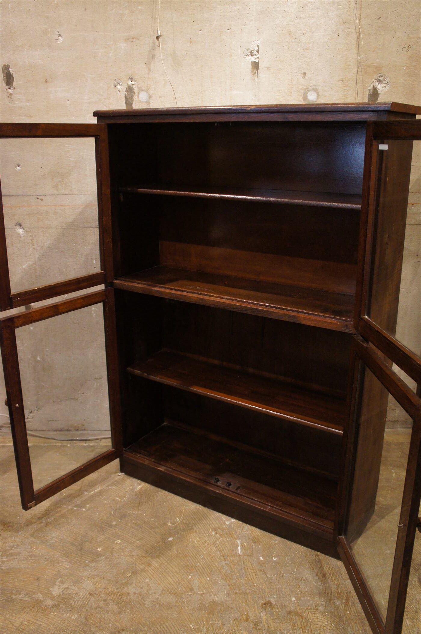 上下分割型のガラス扉が特徴的なブックケース。