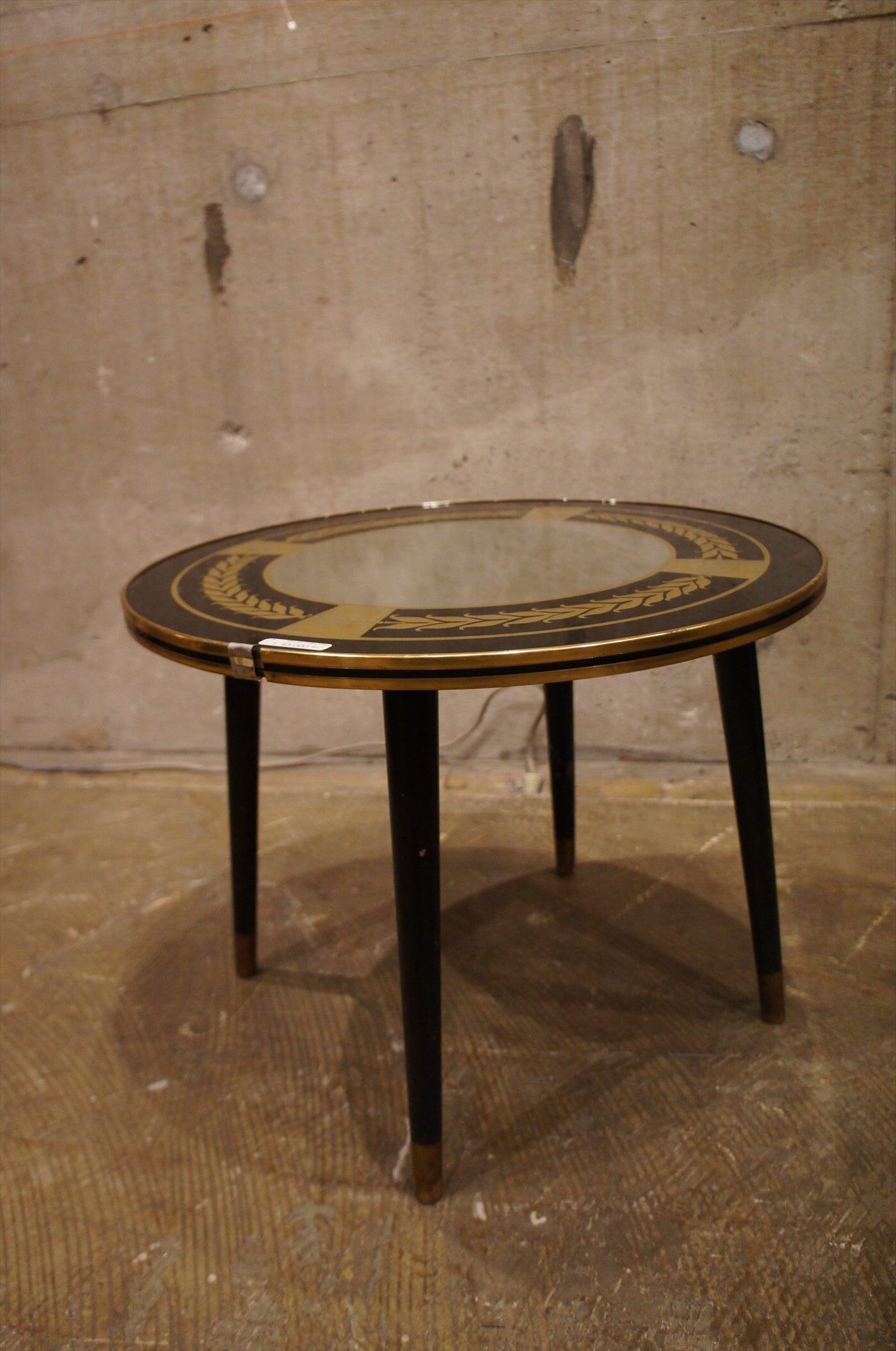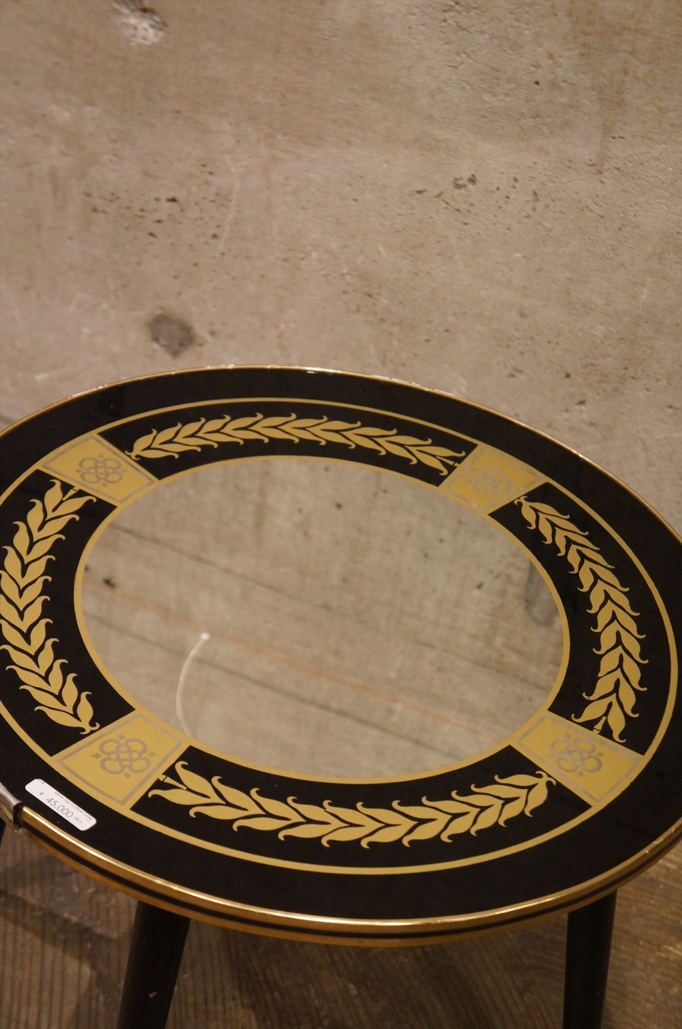 ブラックとゴールドの柄が施されたミラーが天板のコーヒーテーブル