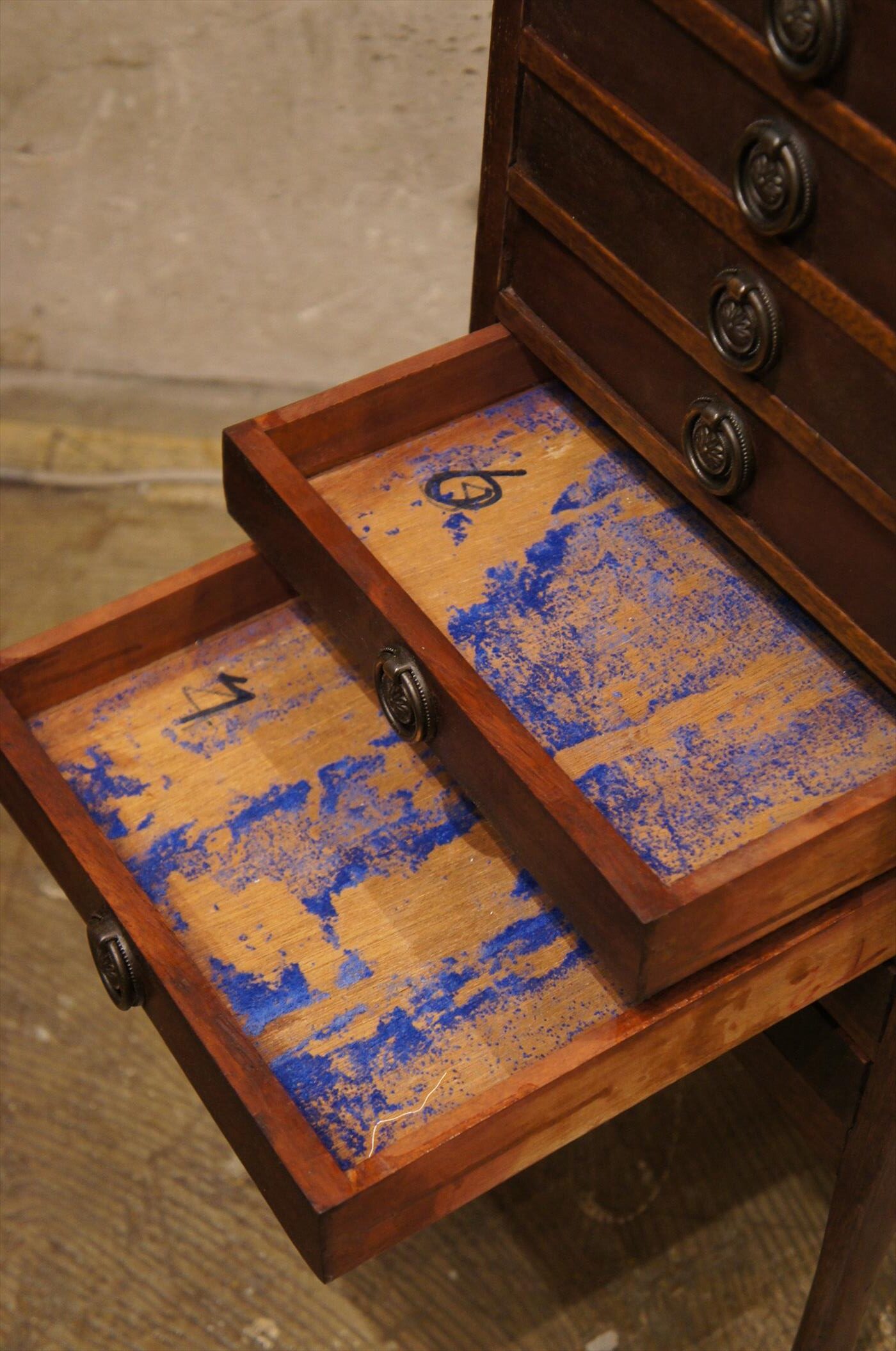 底浅の引き出しが沢山のチェスト