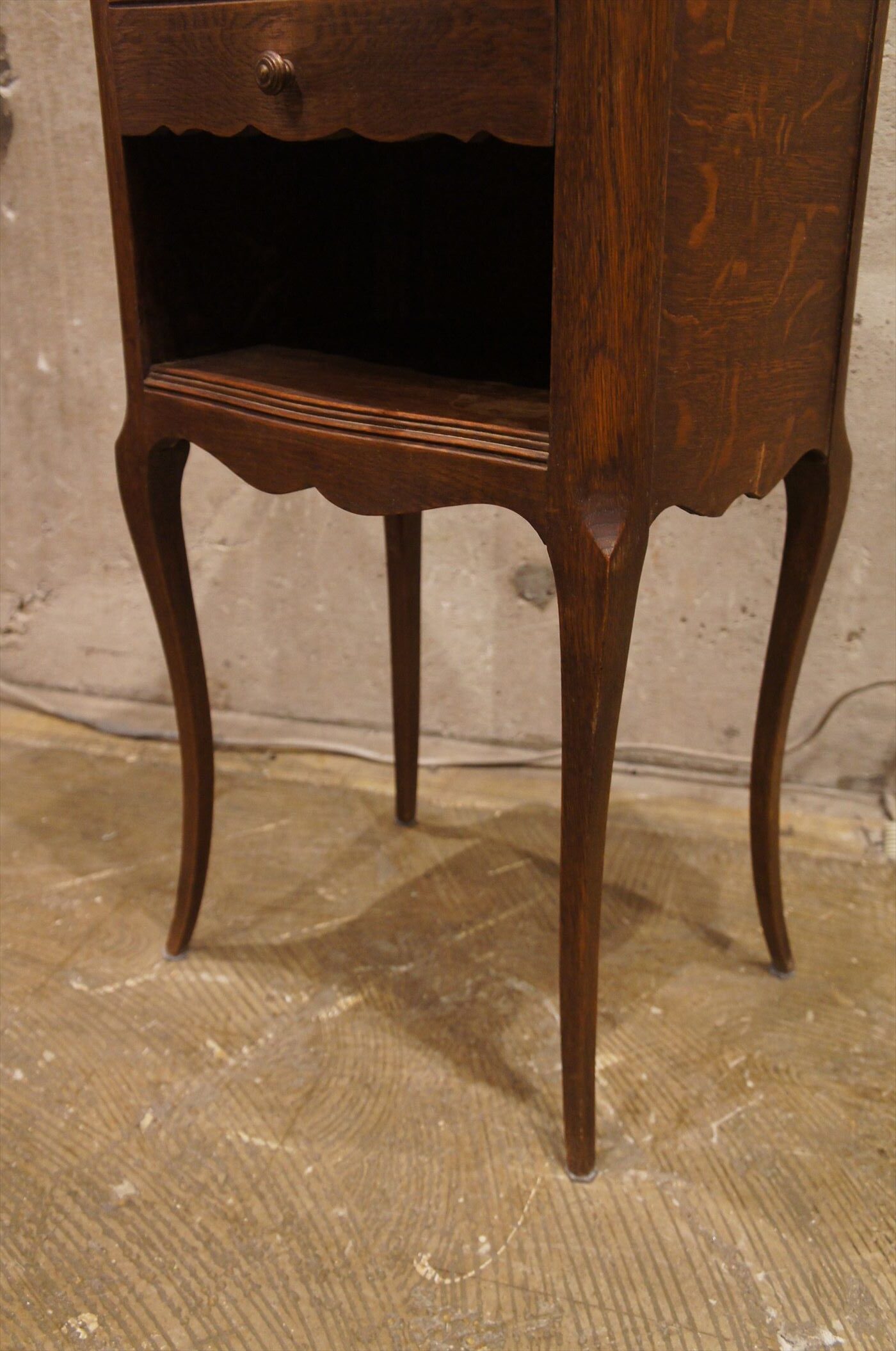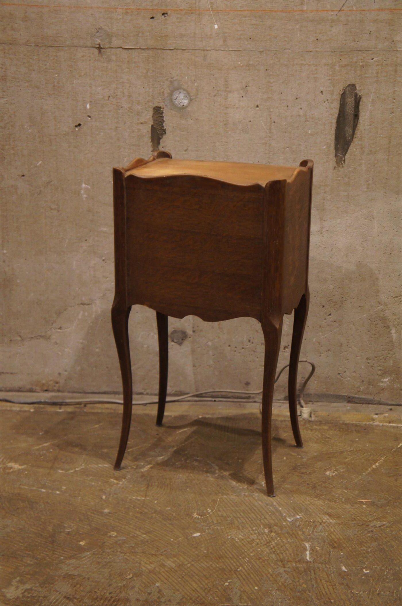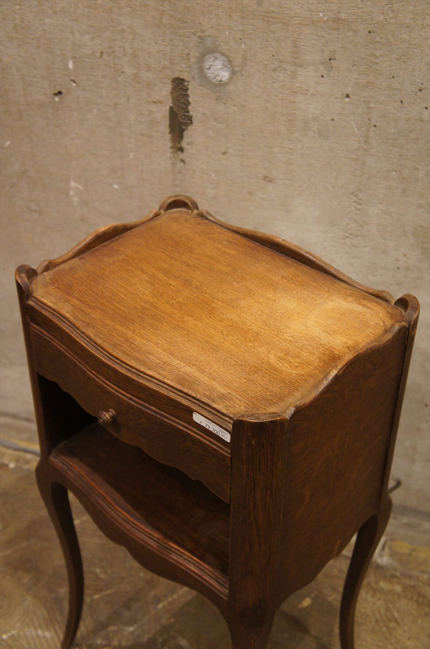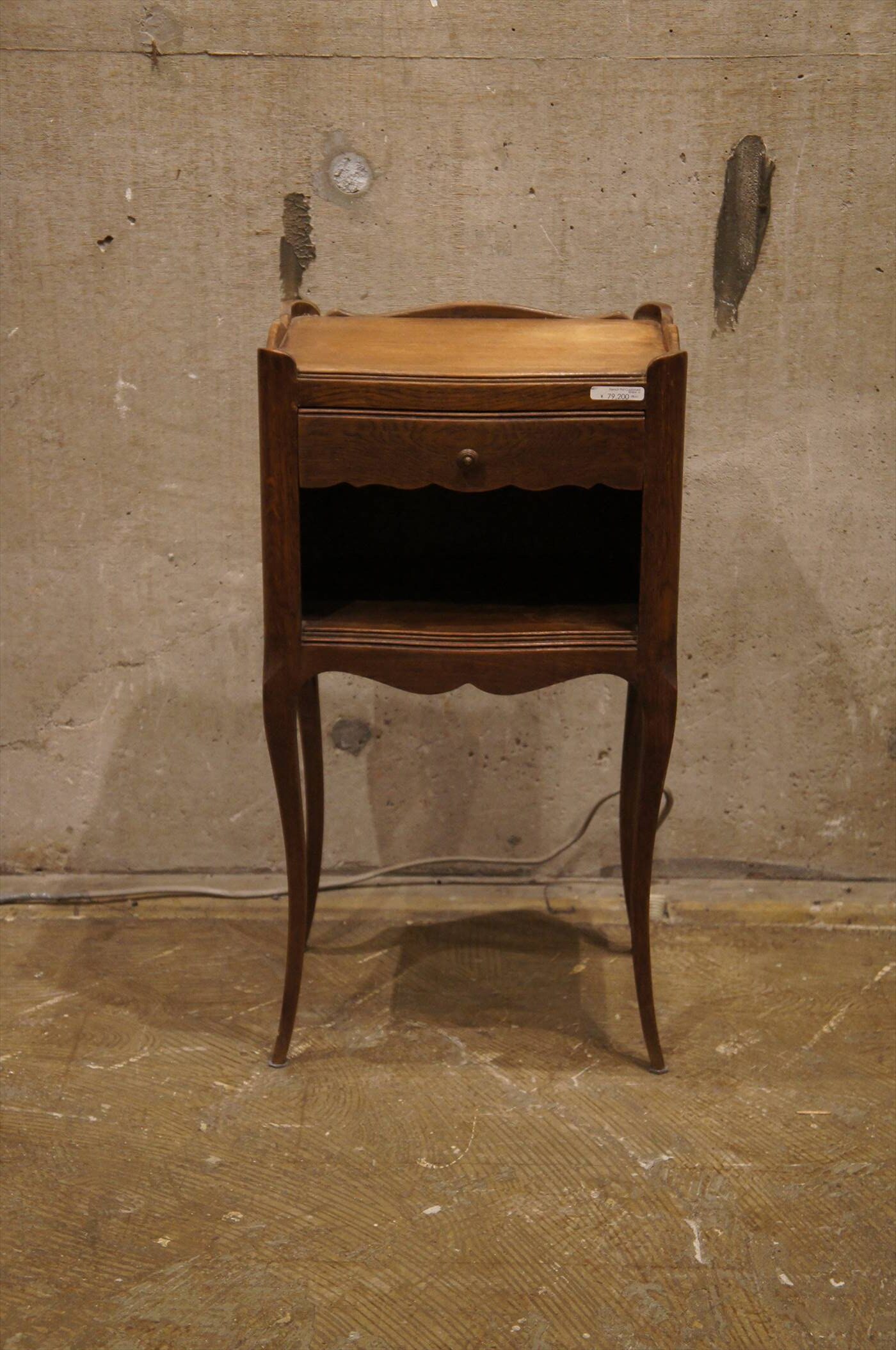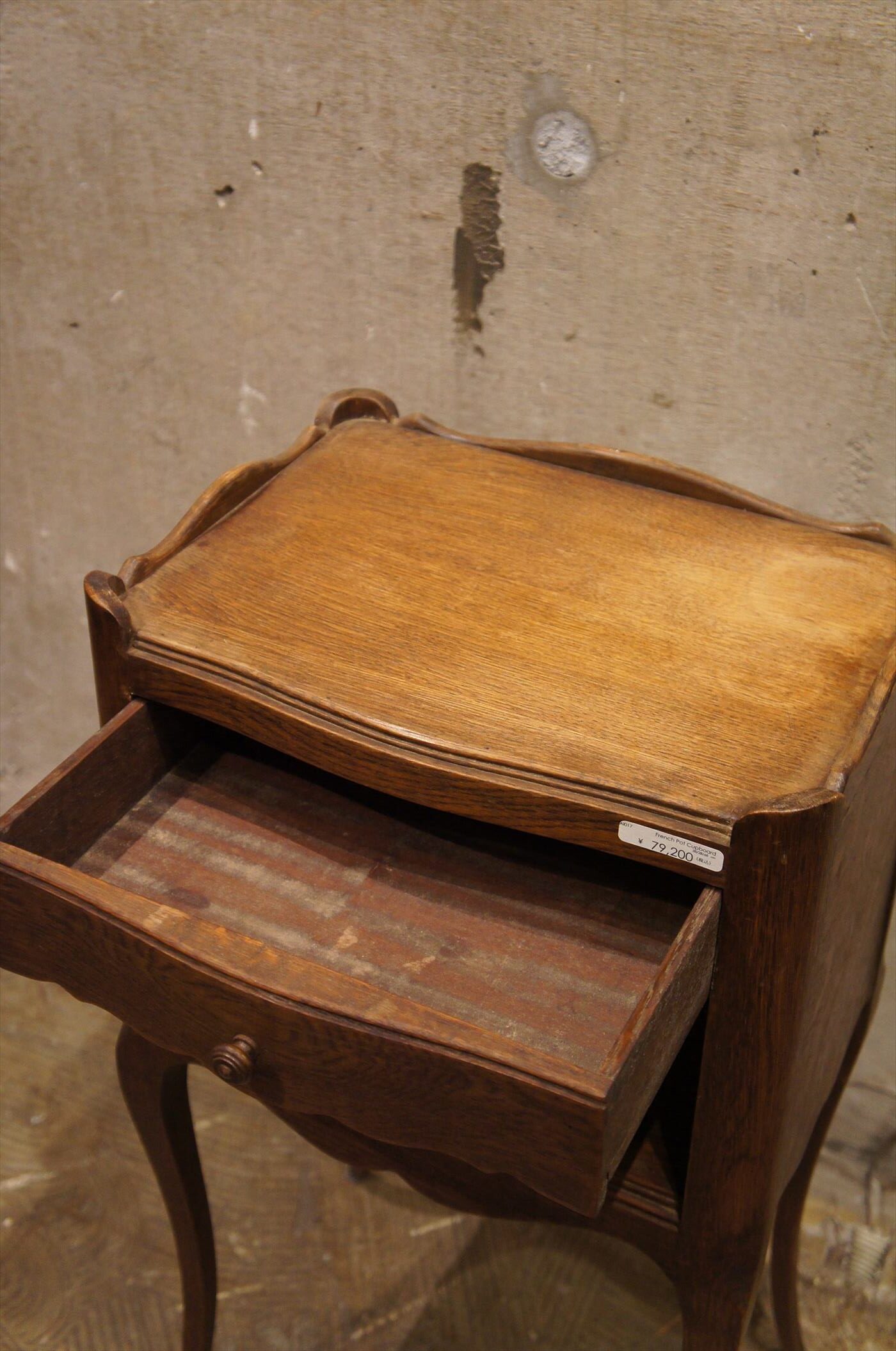 オーク材の素朴な質感と、流れるような曲線の美しいキャビネット。