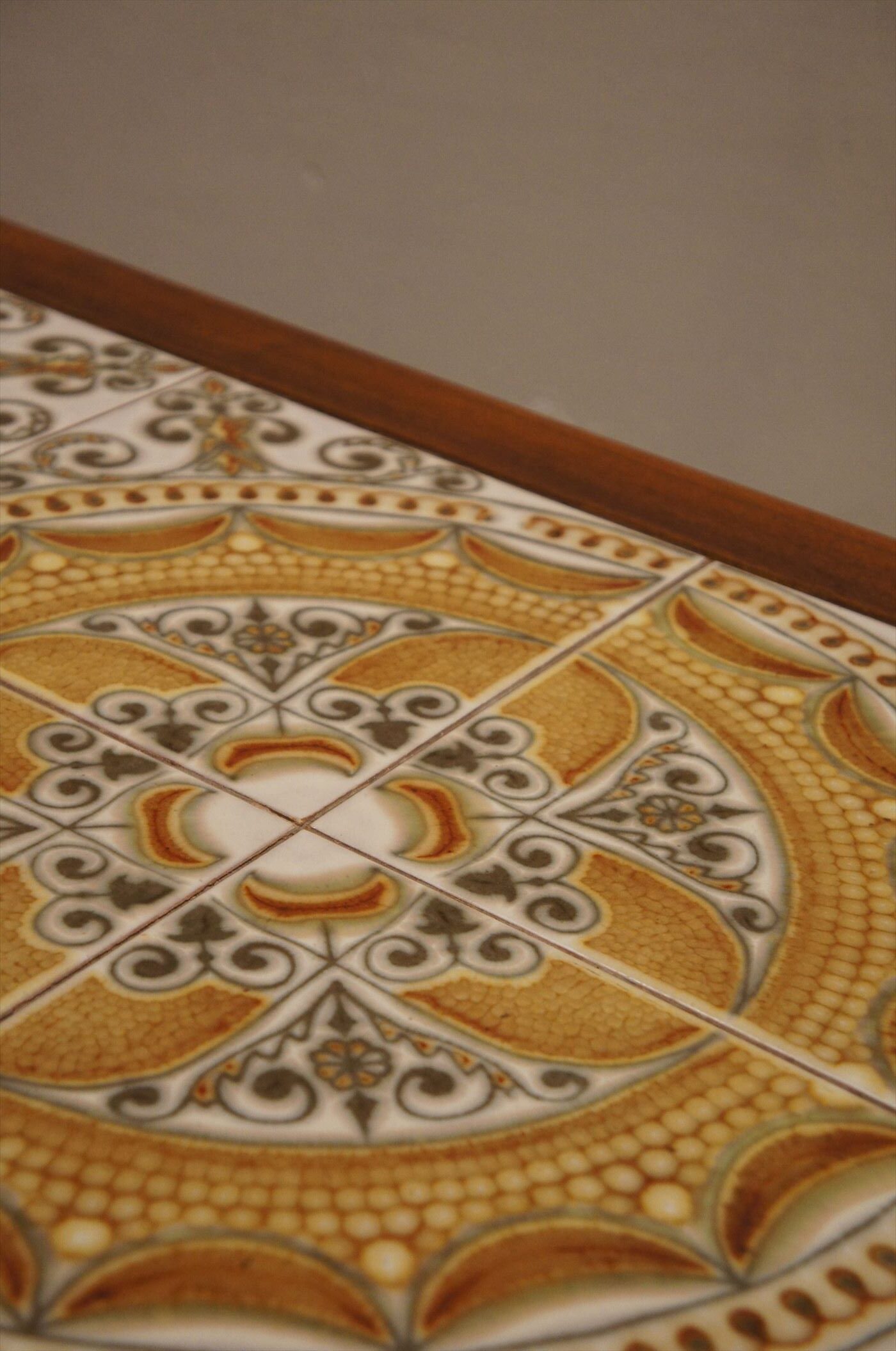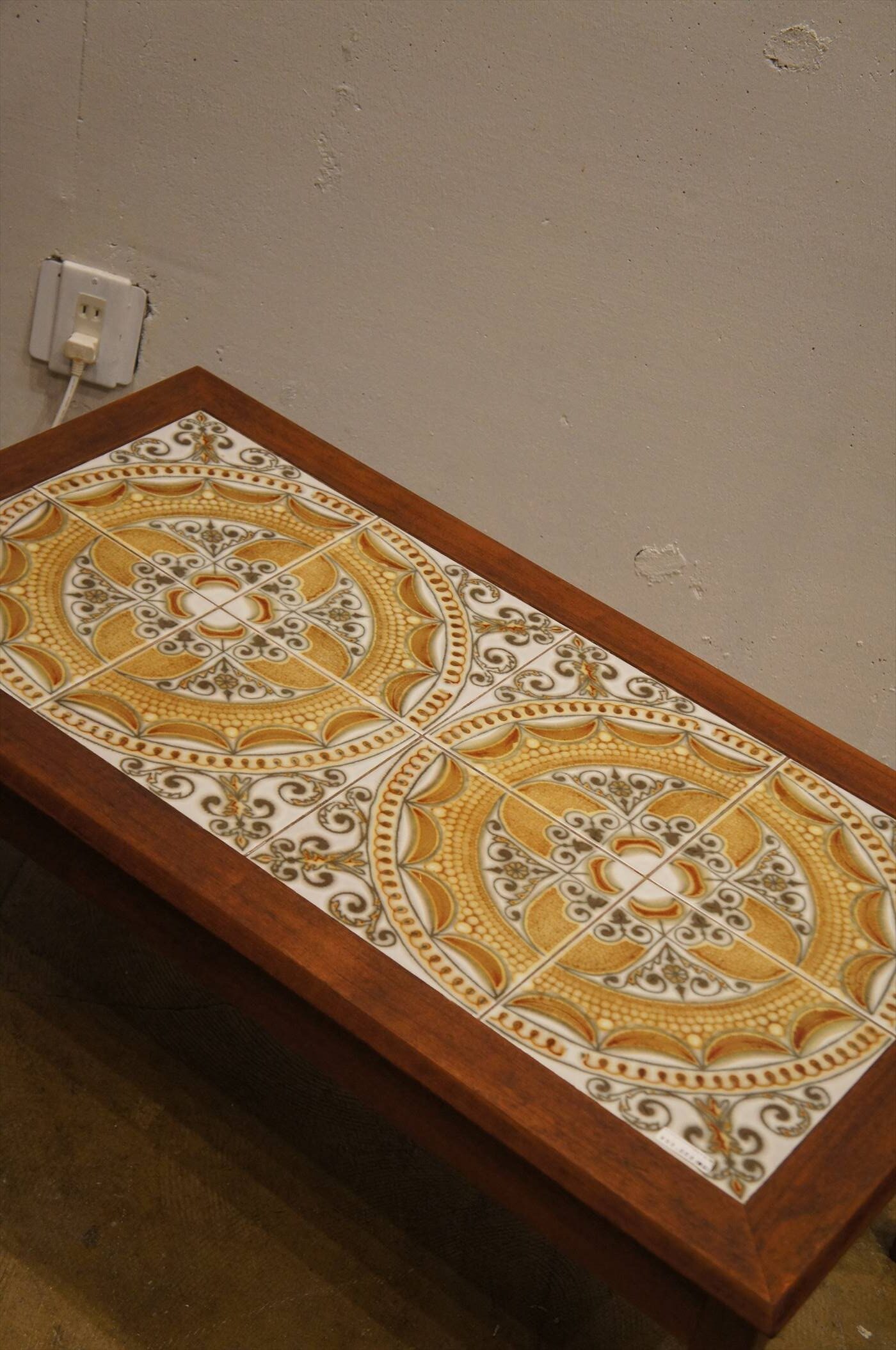鮮やかな柄のタイルが特徴的なコーヒーテーブル