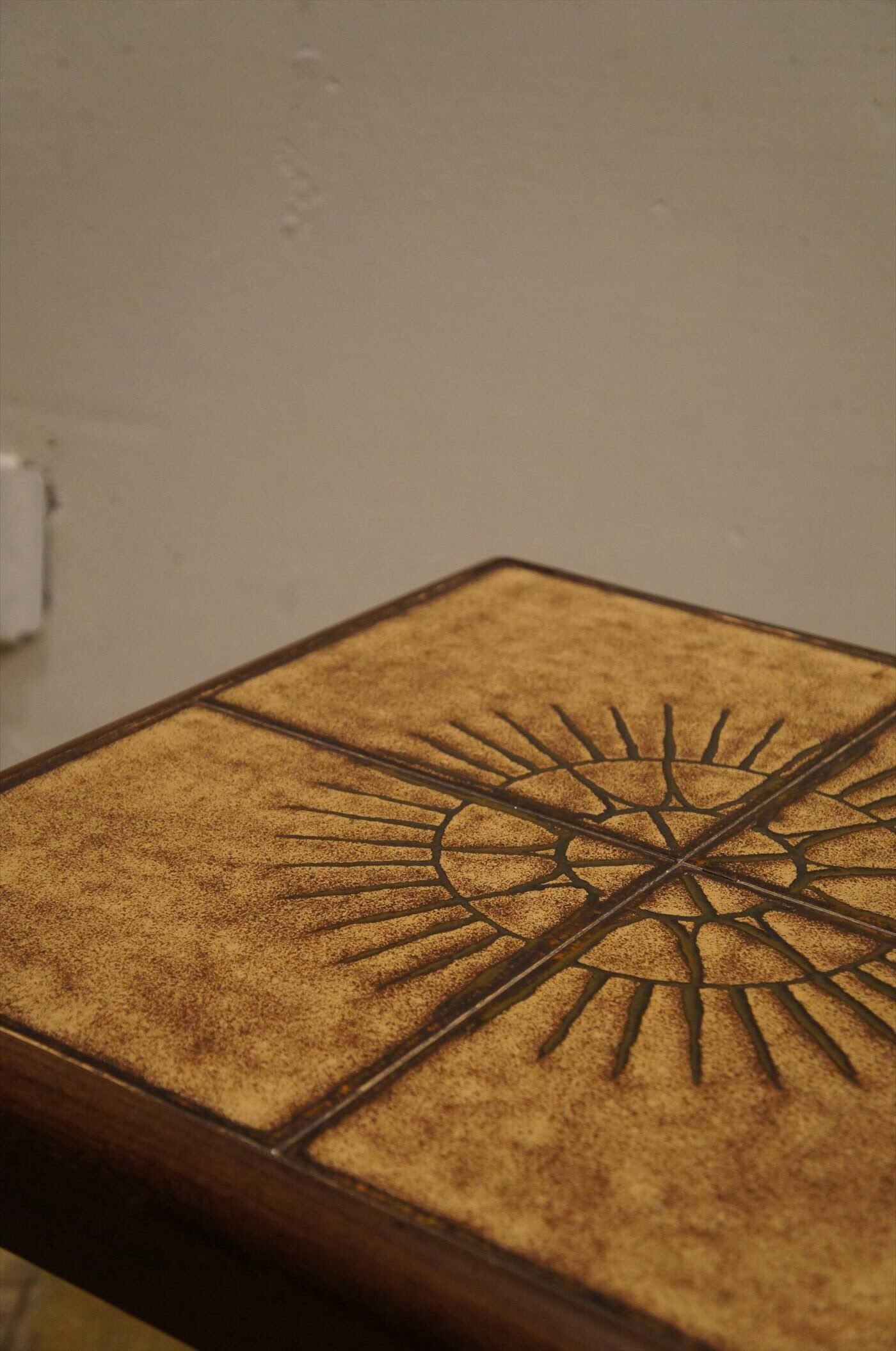 正方形の天板にタイルが使用されており、サイドテーブルやベッドサイドにも使用可能
