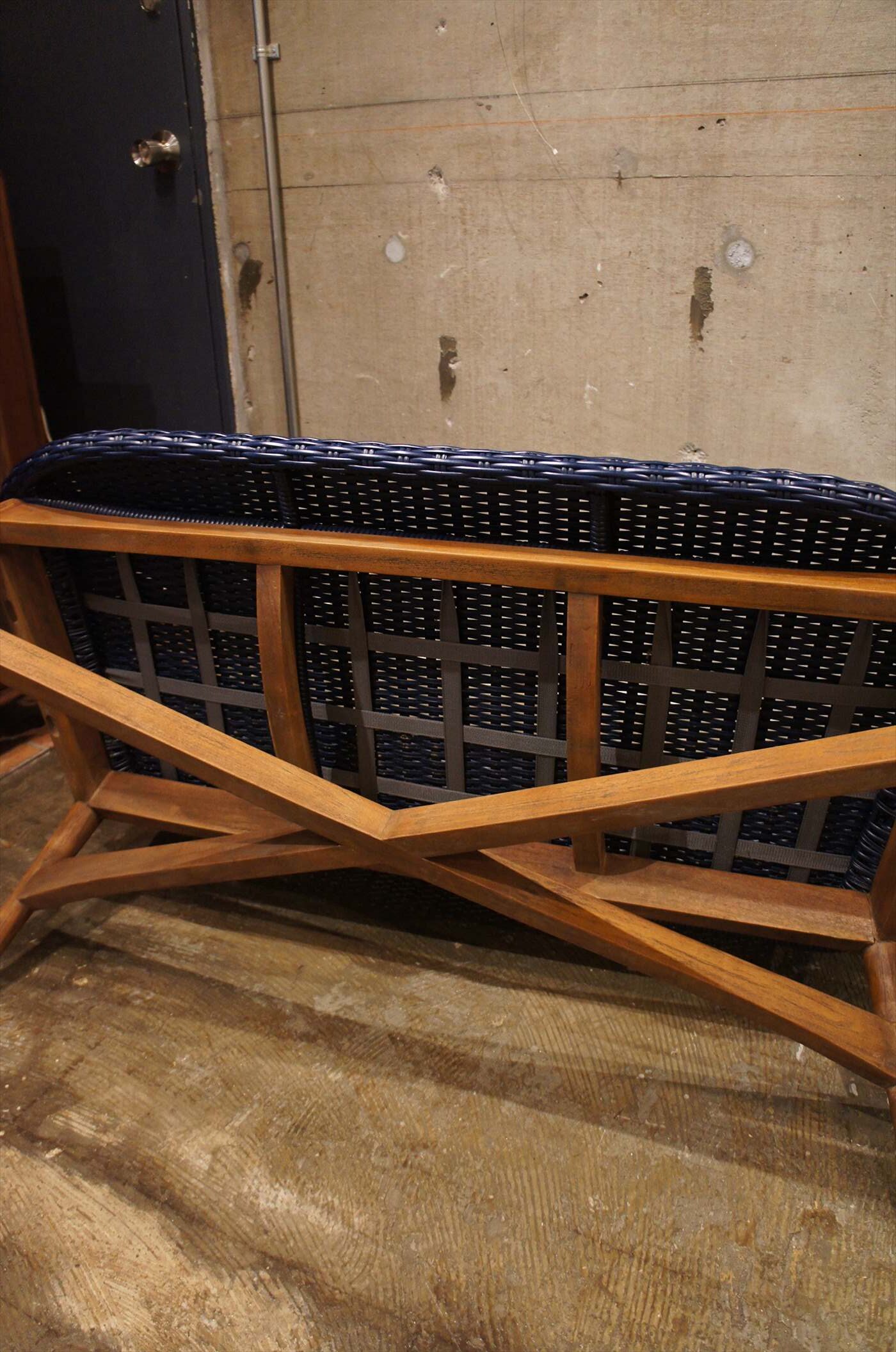 無垢材チークの安定感のある脚とスタイリッシュなシルエットの人工籐(シンセティックラタン)のシートの組み合わせ