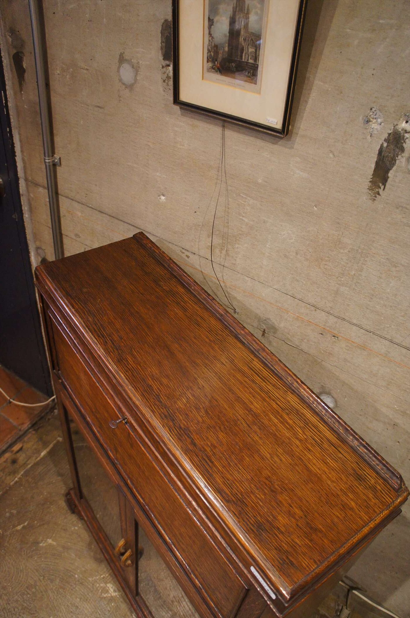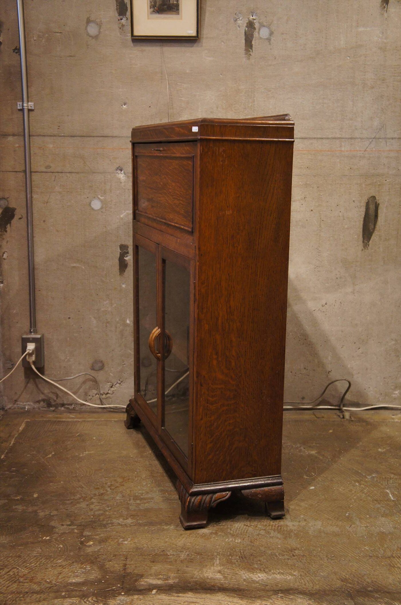 コンパクトなオーク材のブックケースにライティングデスクが付いています