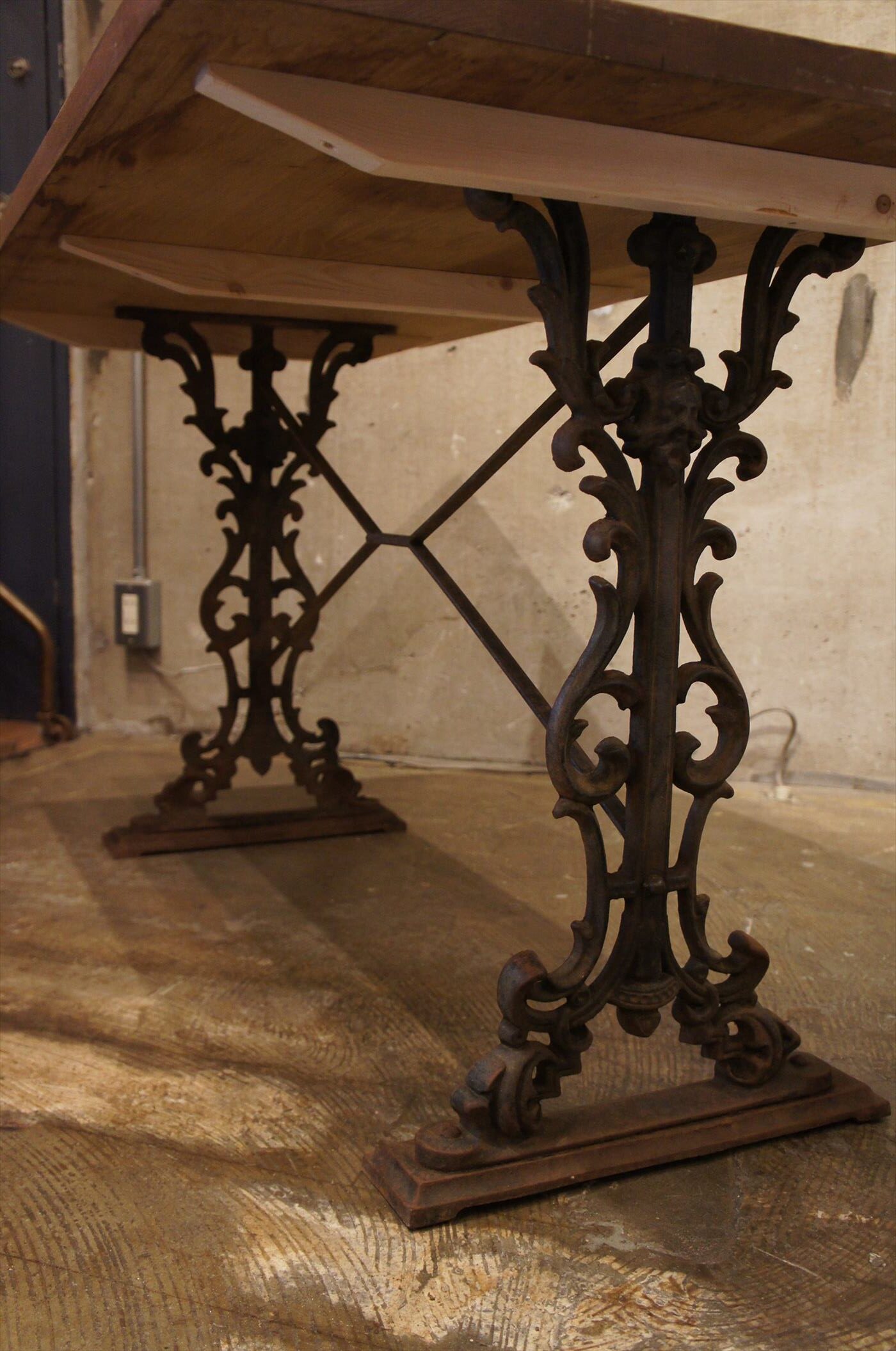 ヴィンテージの鋳物脚に当店オリジナルの天板を組み合わせました