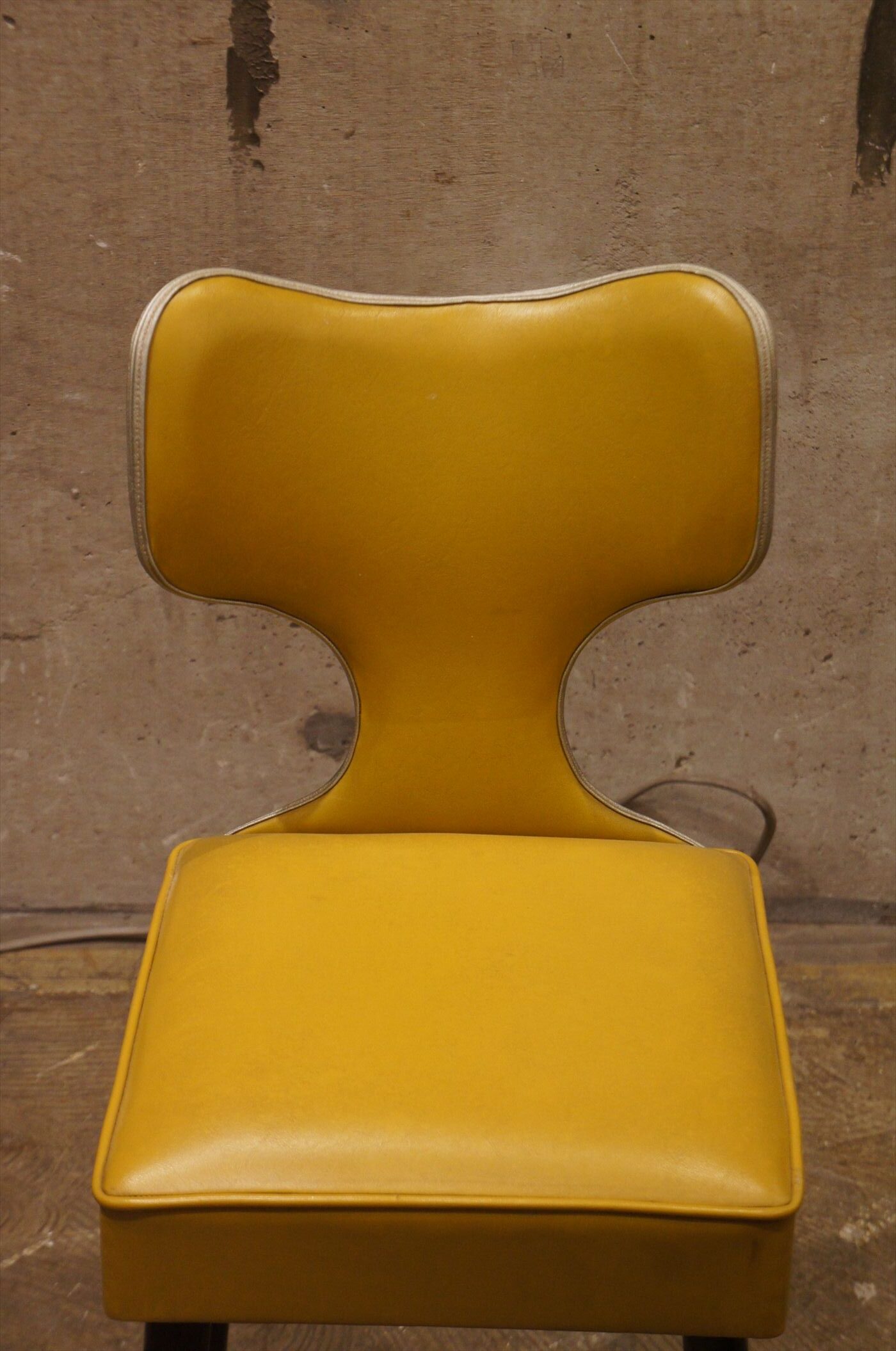 サイズ感は、座面高は一般的ですが、幅、奥行き、高さがコンパクトに設計されており、什器用としての特注だったのでは?