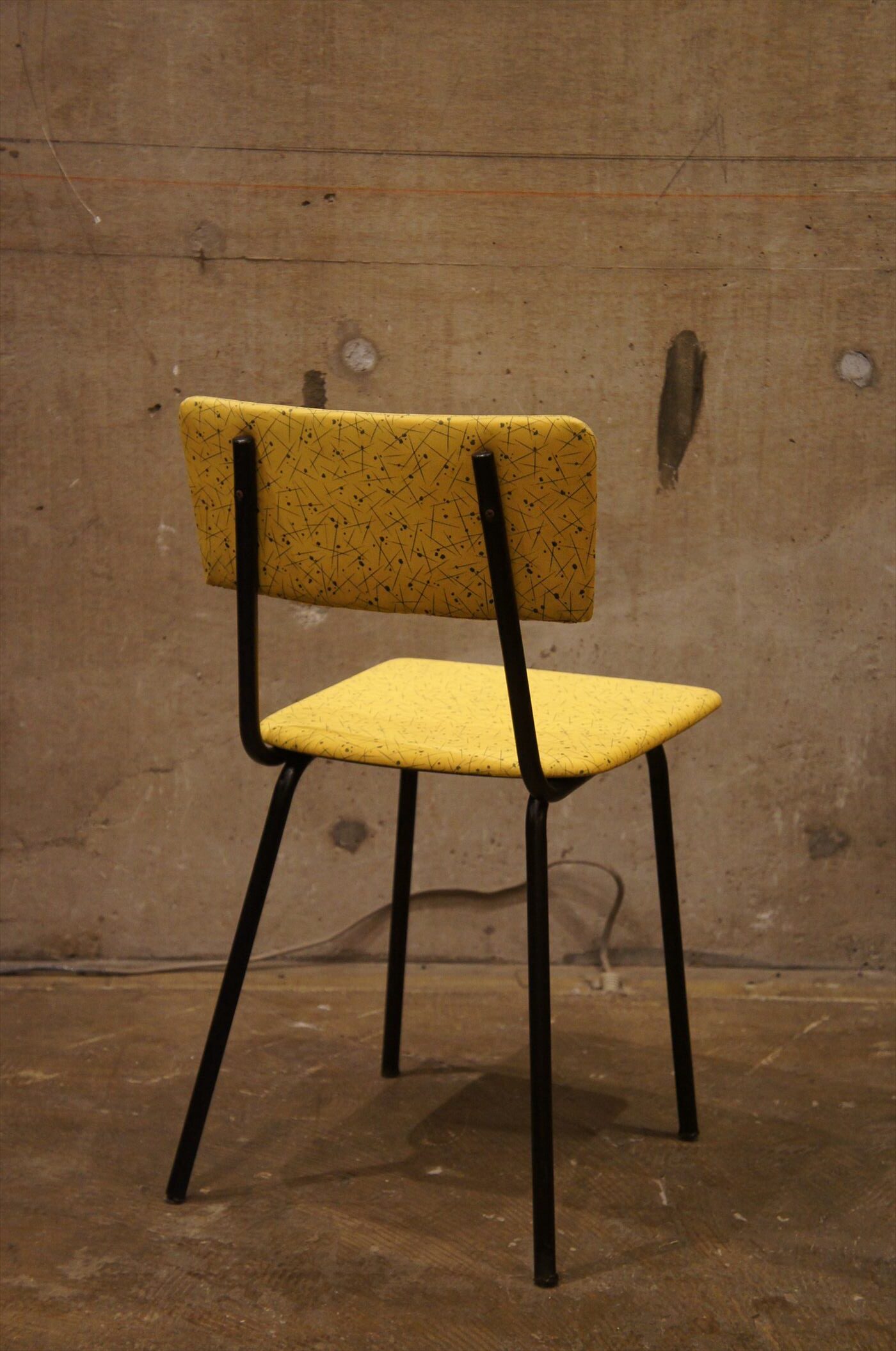 当時らしい柄のファブリックが特徴のキッチンチェア