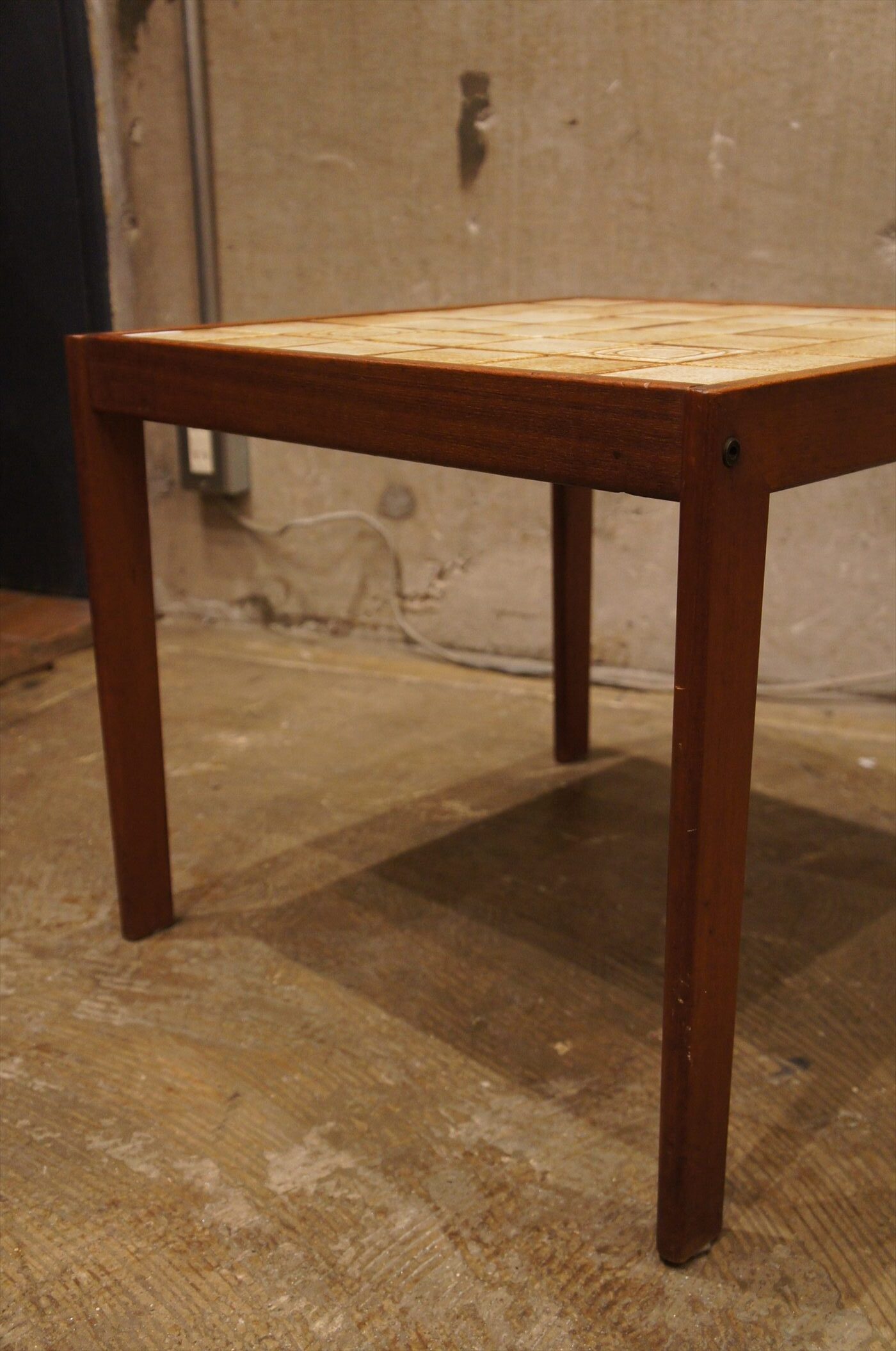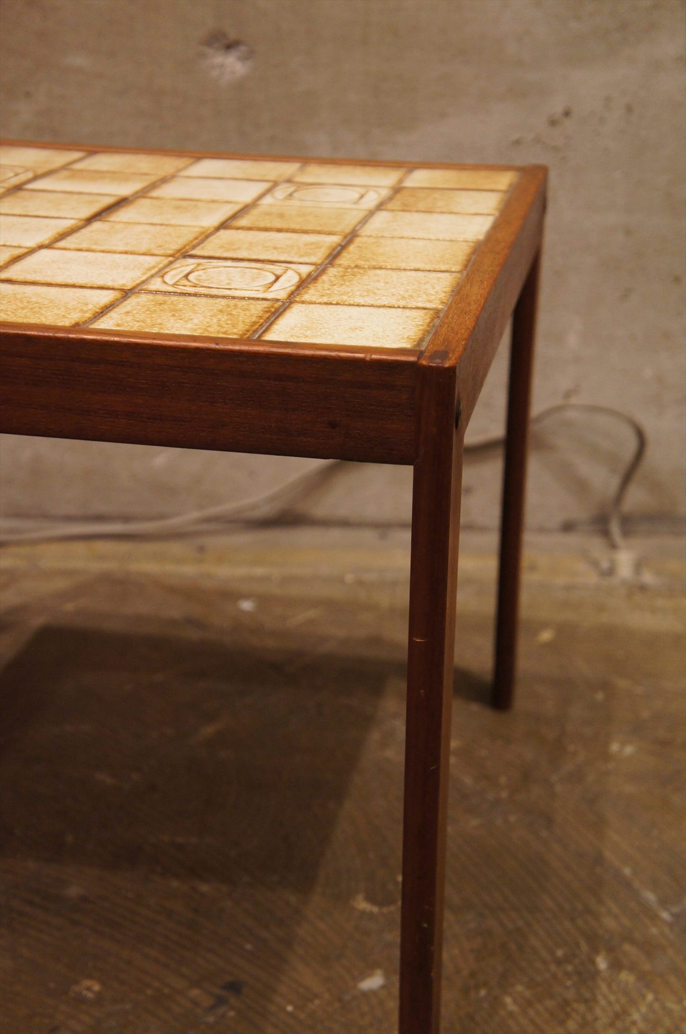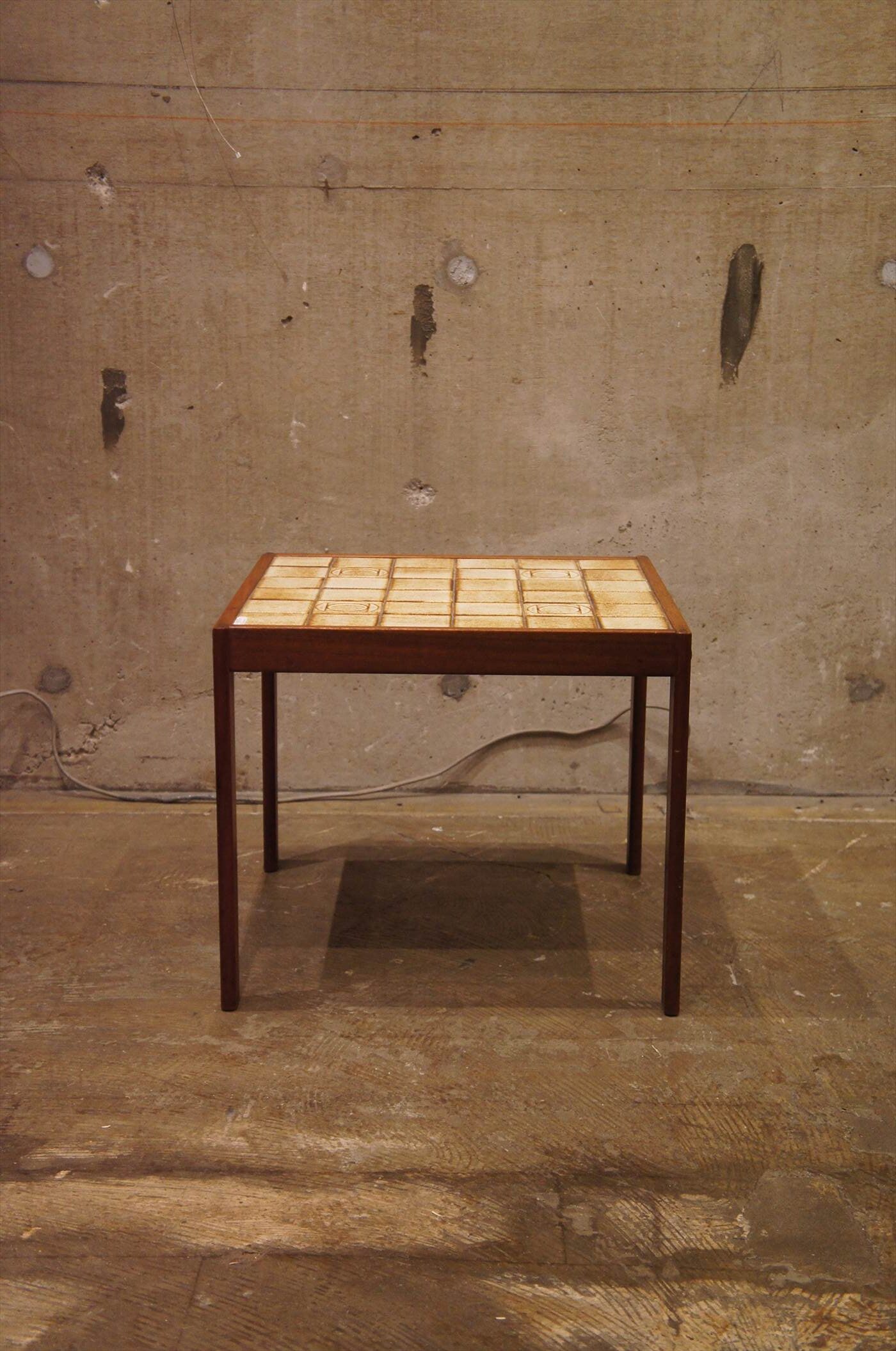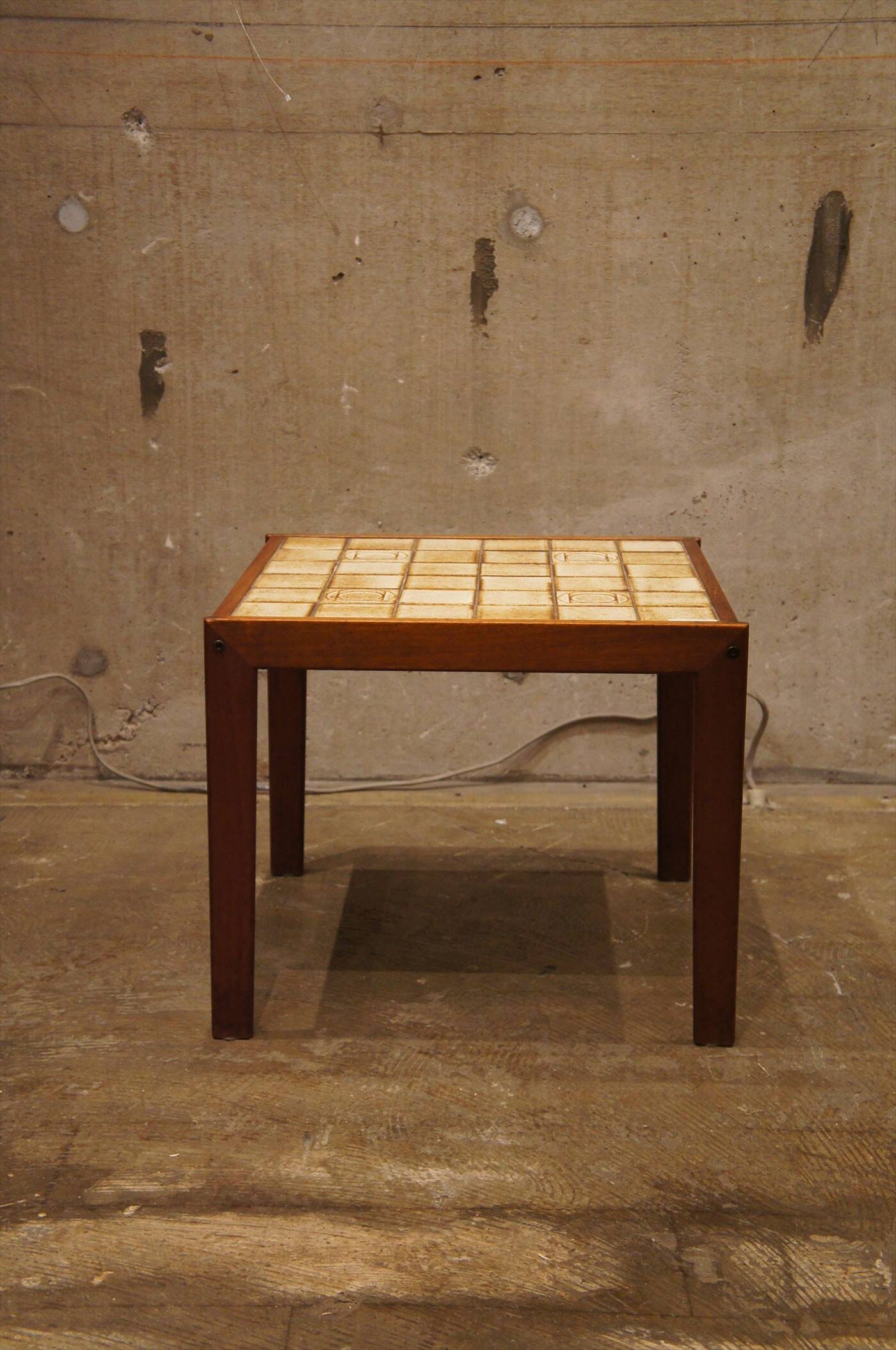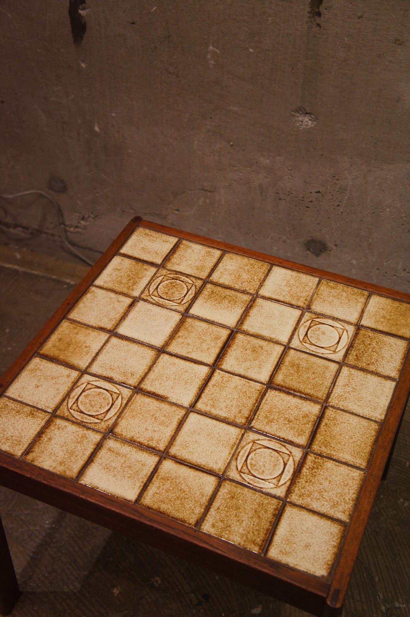 チーク材の脚にタイルの天板の組み合わせ