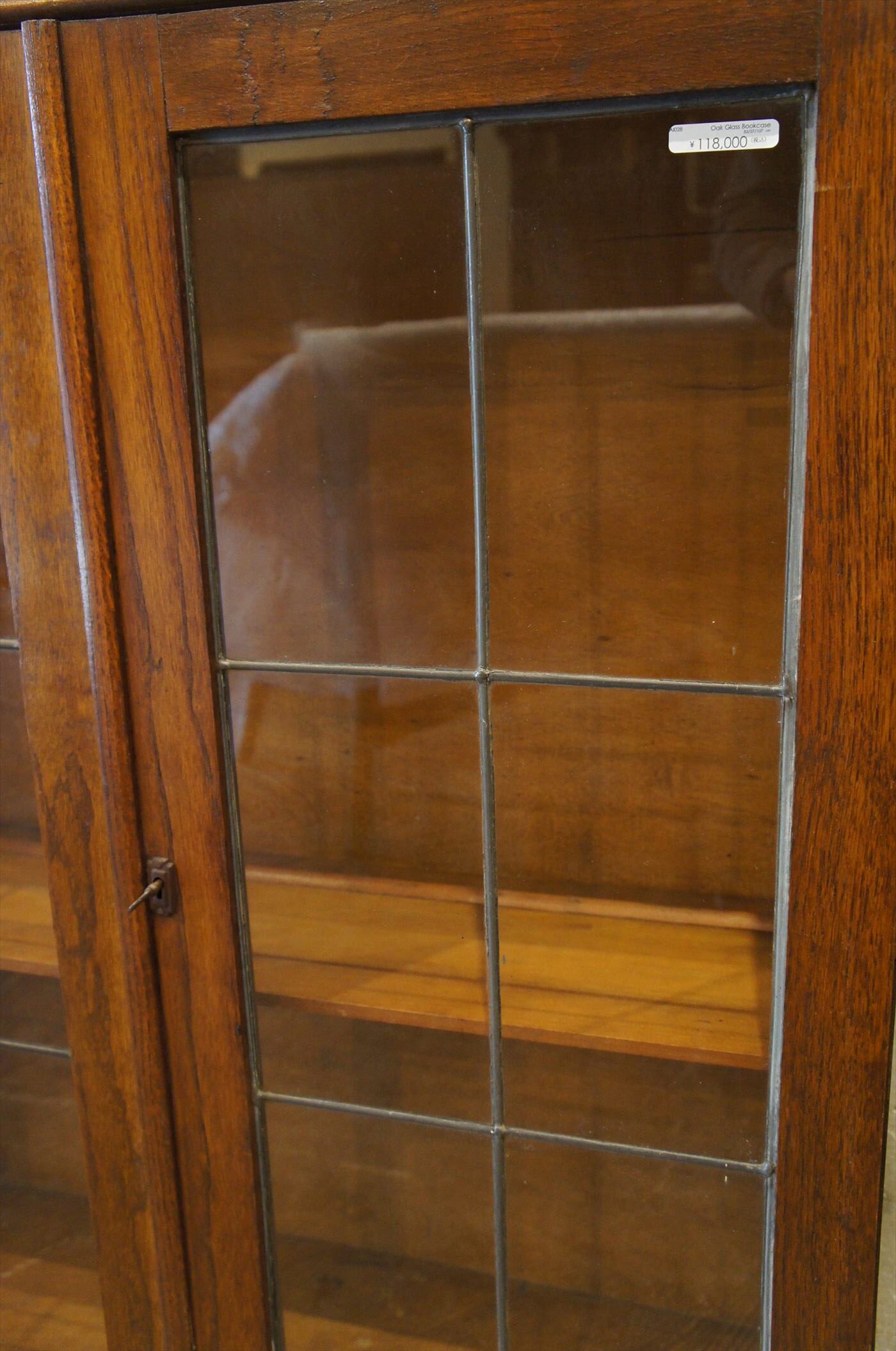 鉛枠のステンドグラスタイプのガラスドアで雰囲気があります。