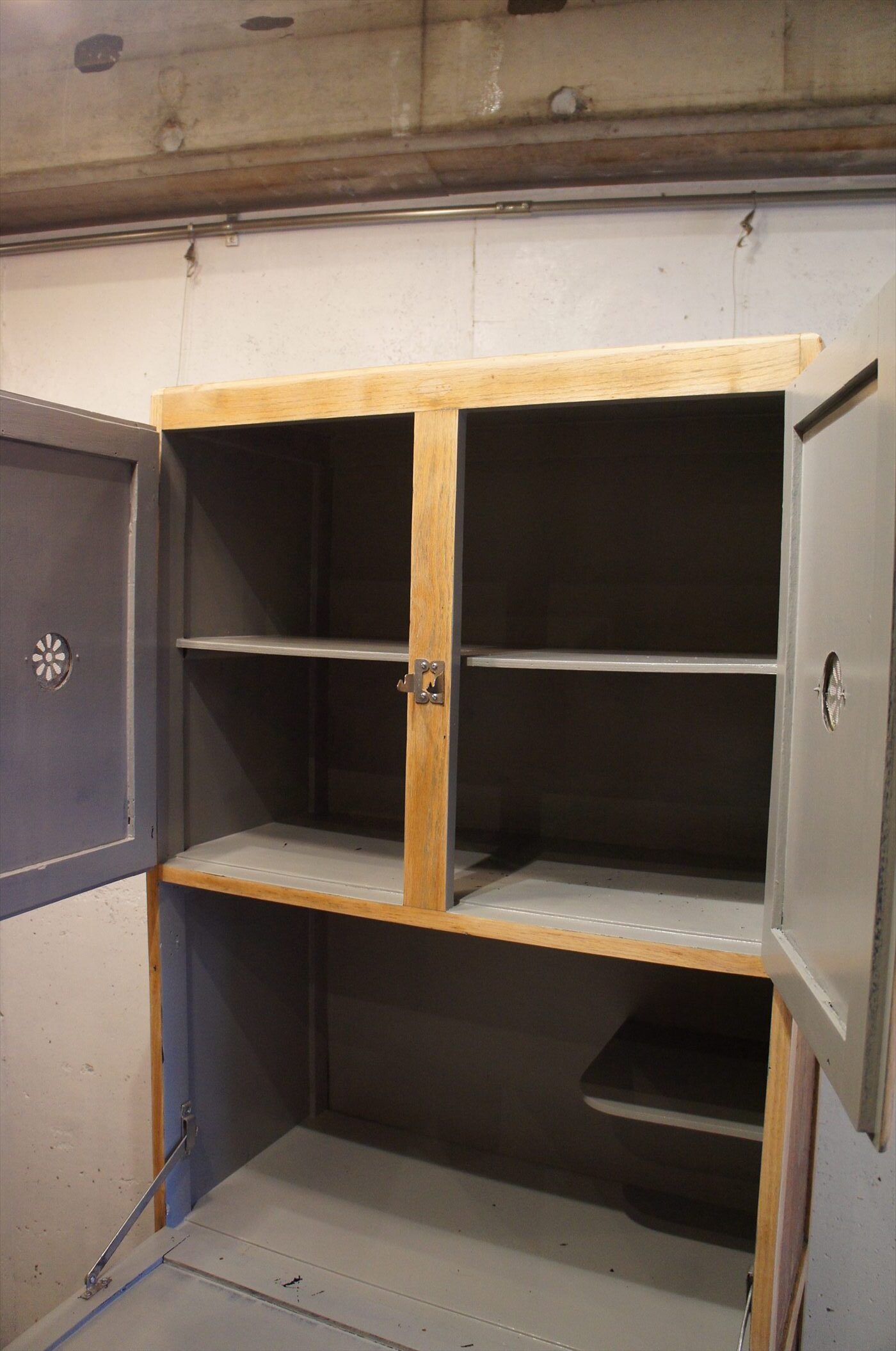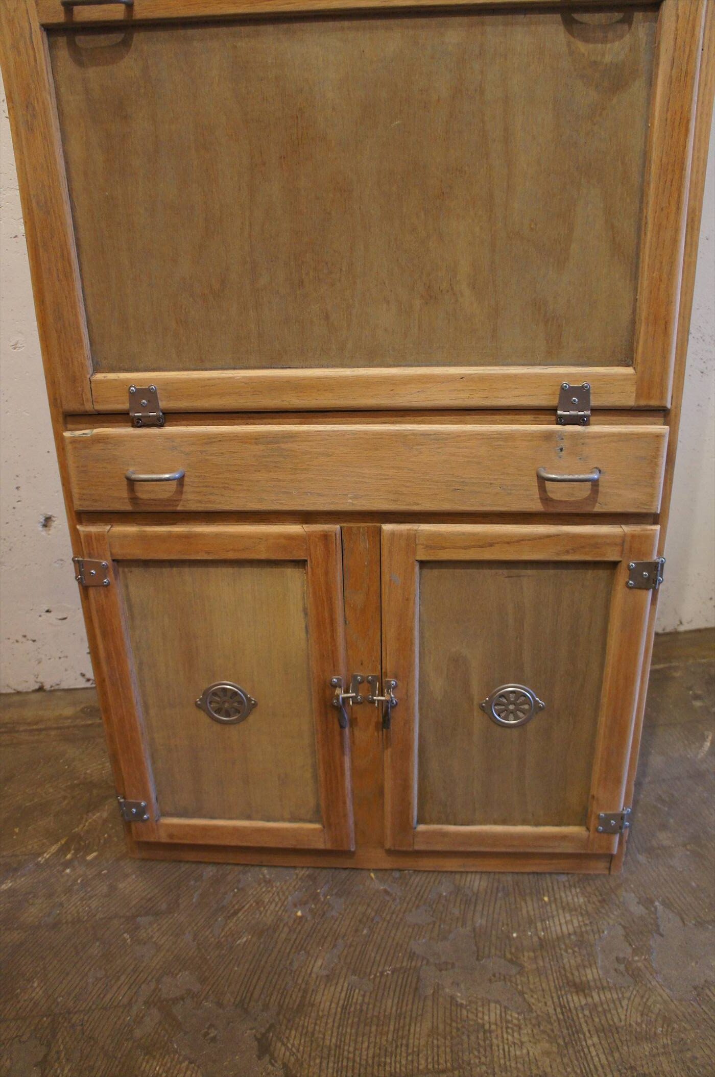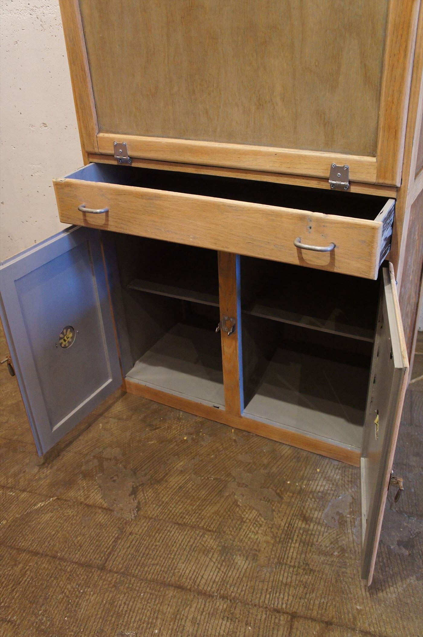 食品保管用でありながら、正面の扉を前に倒すと作業台になる仕掛け。
