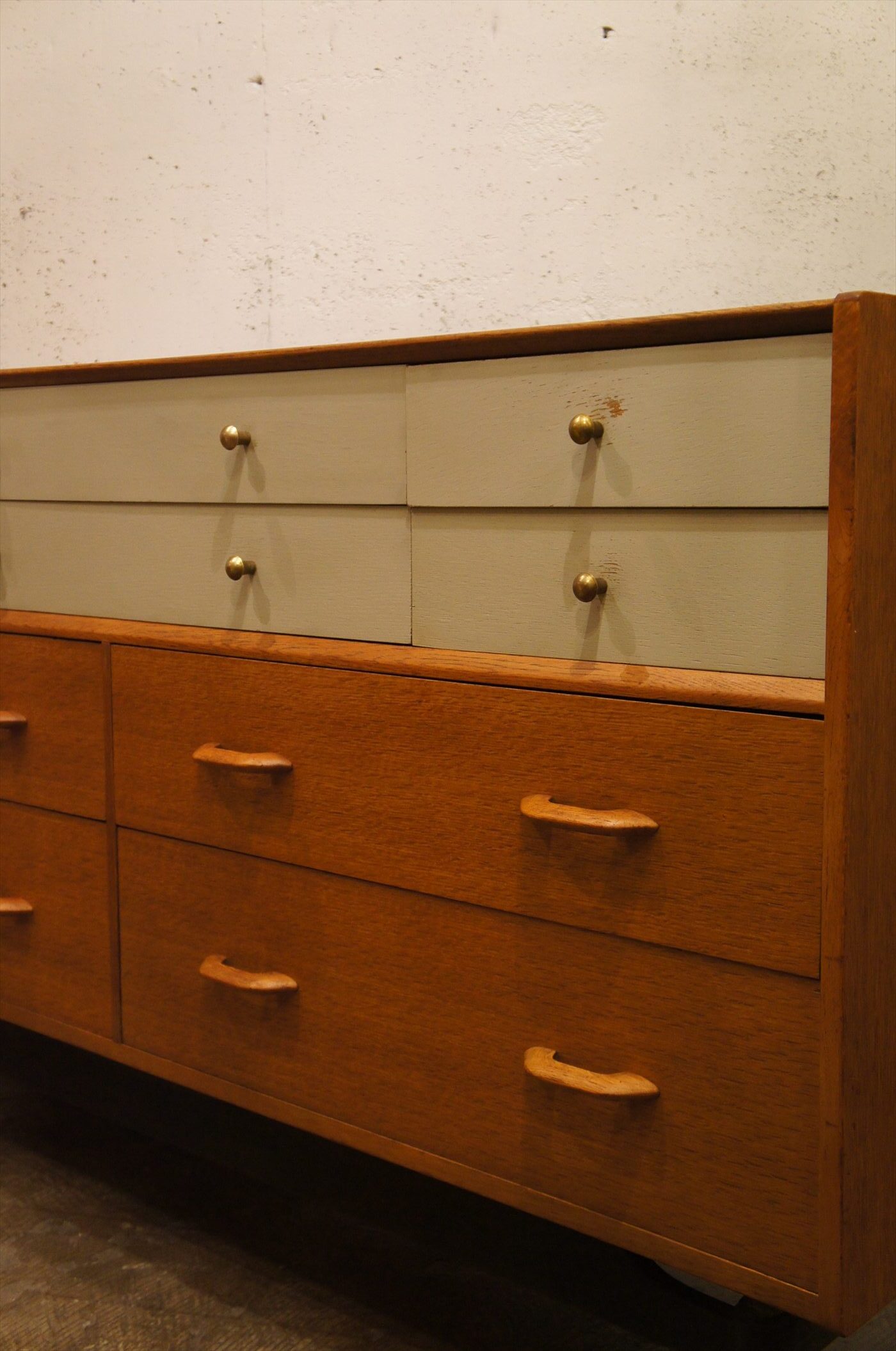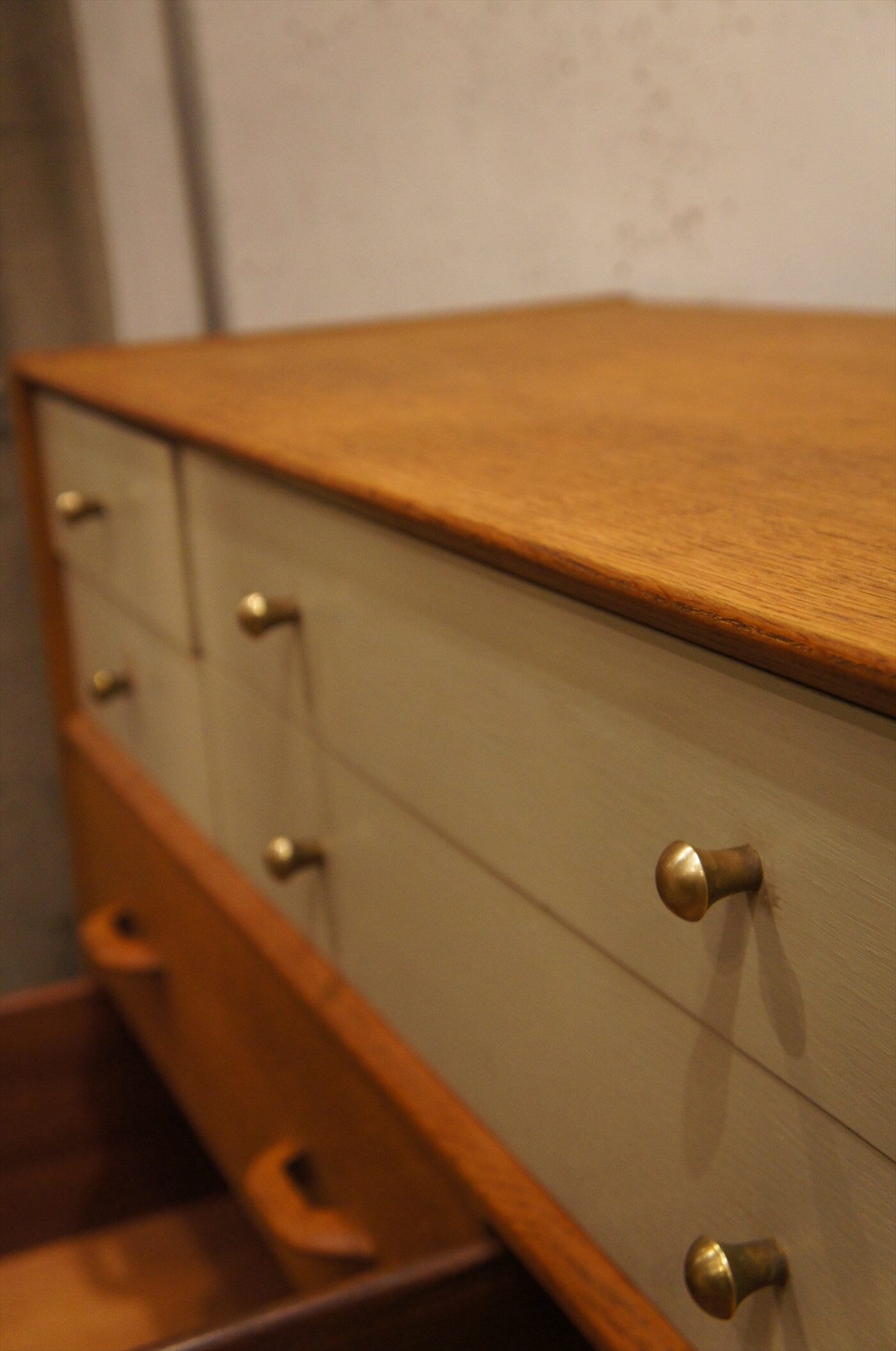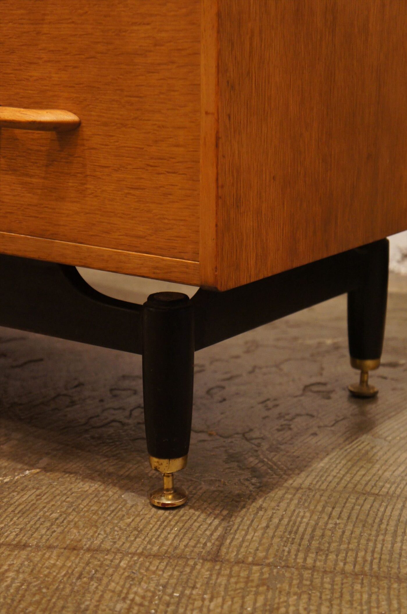 イギリスらしいオーク材を使用し、スタイリッシュな黒脚におしゃれな木製のハンドルとブラスのつまみの使い分け、