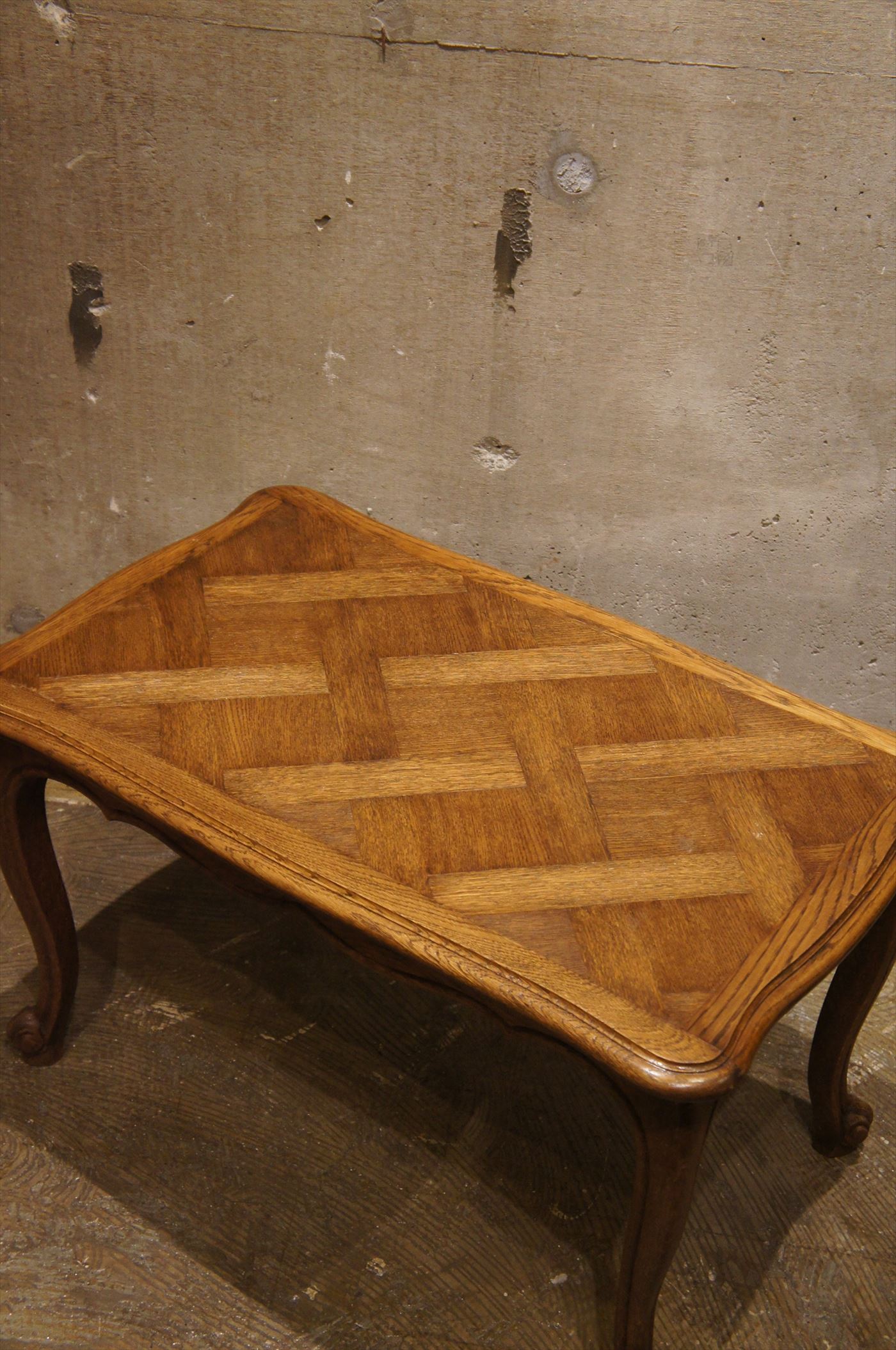 天板はパーケット(寄木造り)で表情があります