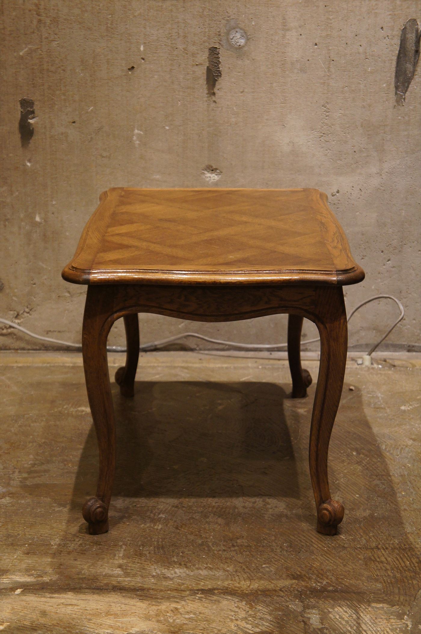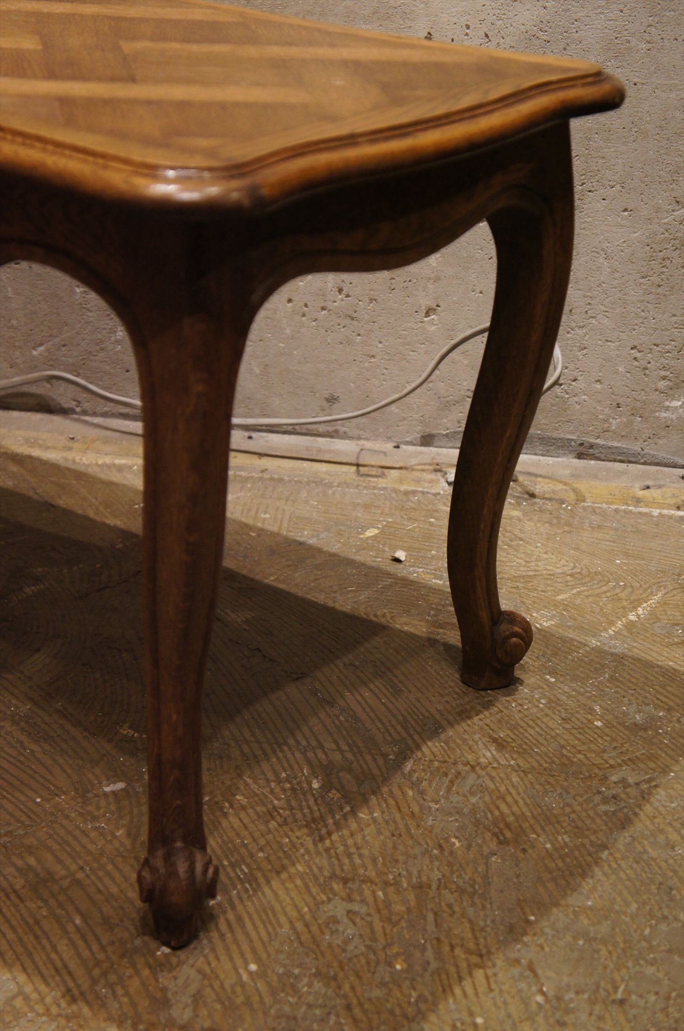 天板の模様が特徴的な猫脚のコーヒーテーブル