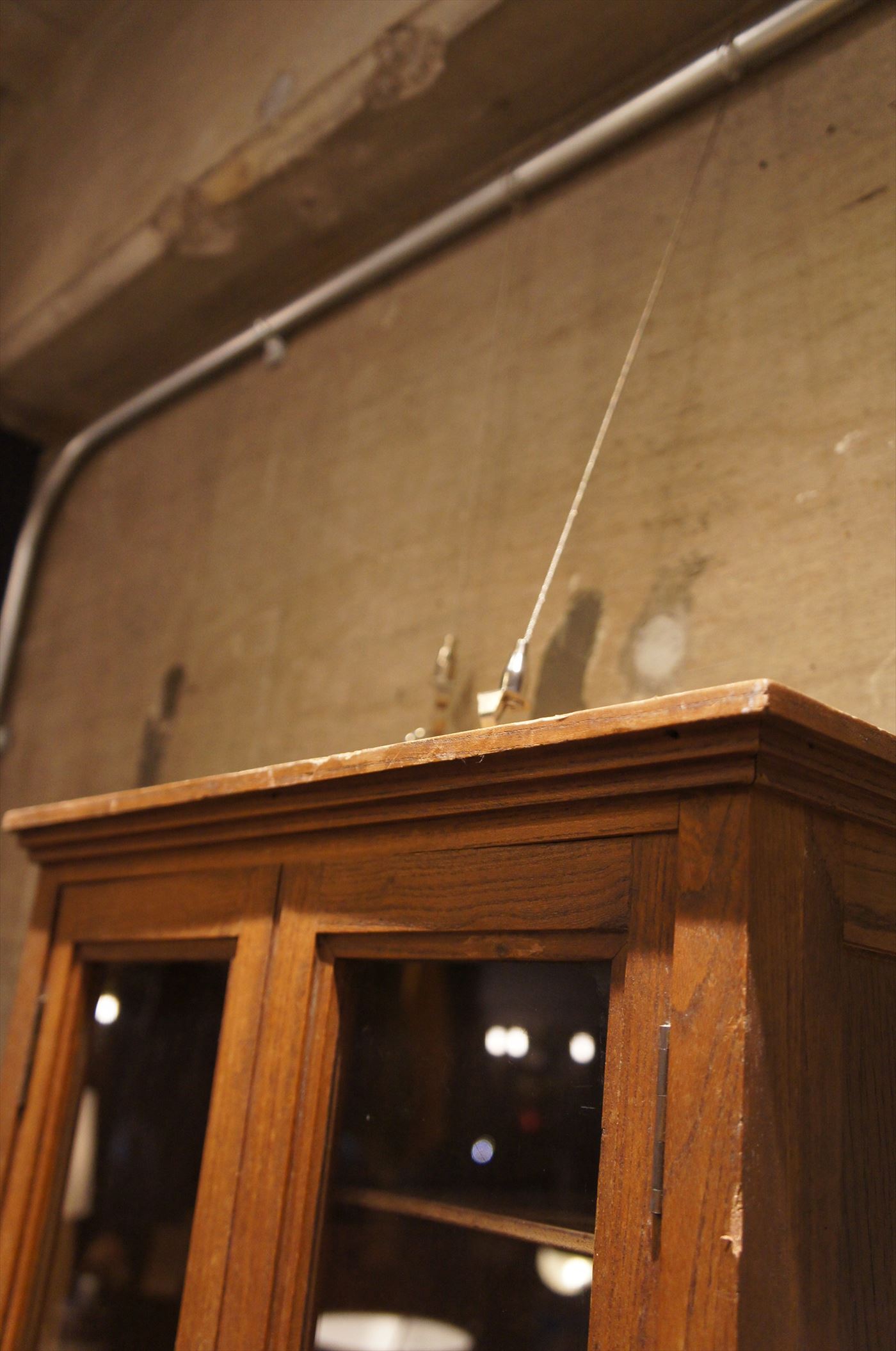 コンパクトながら両開きのガラス戸を持つキャビネット。