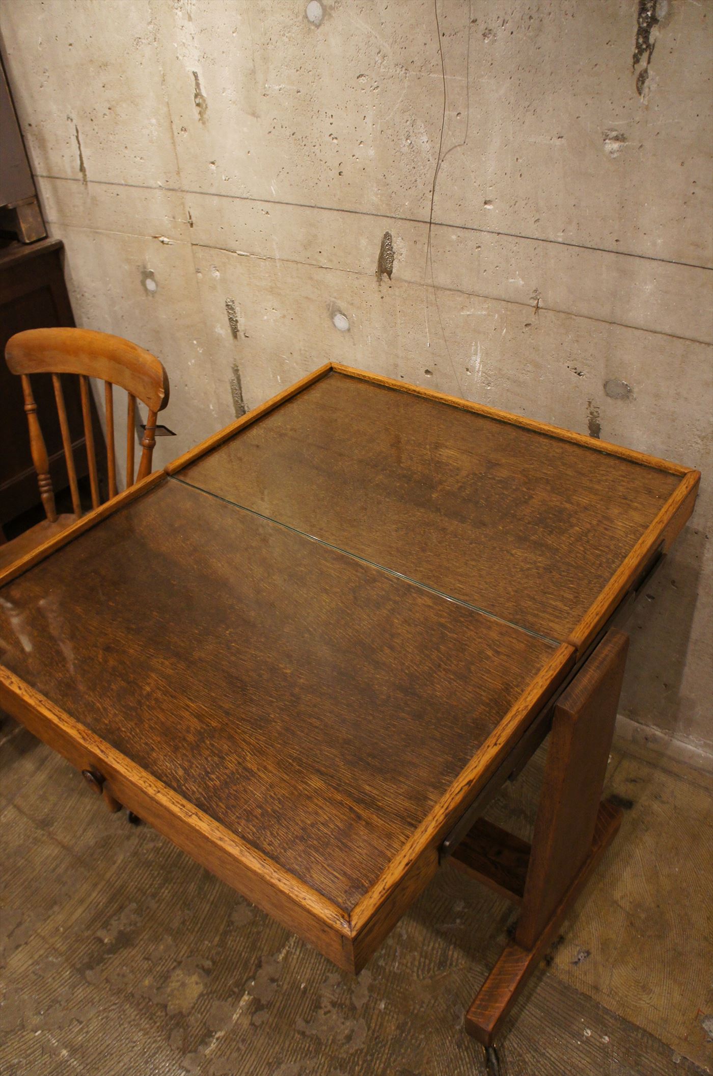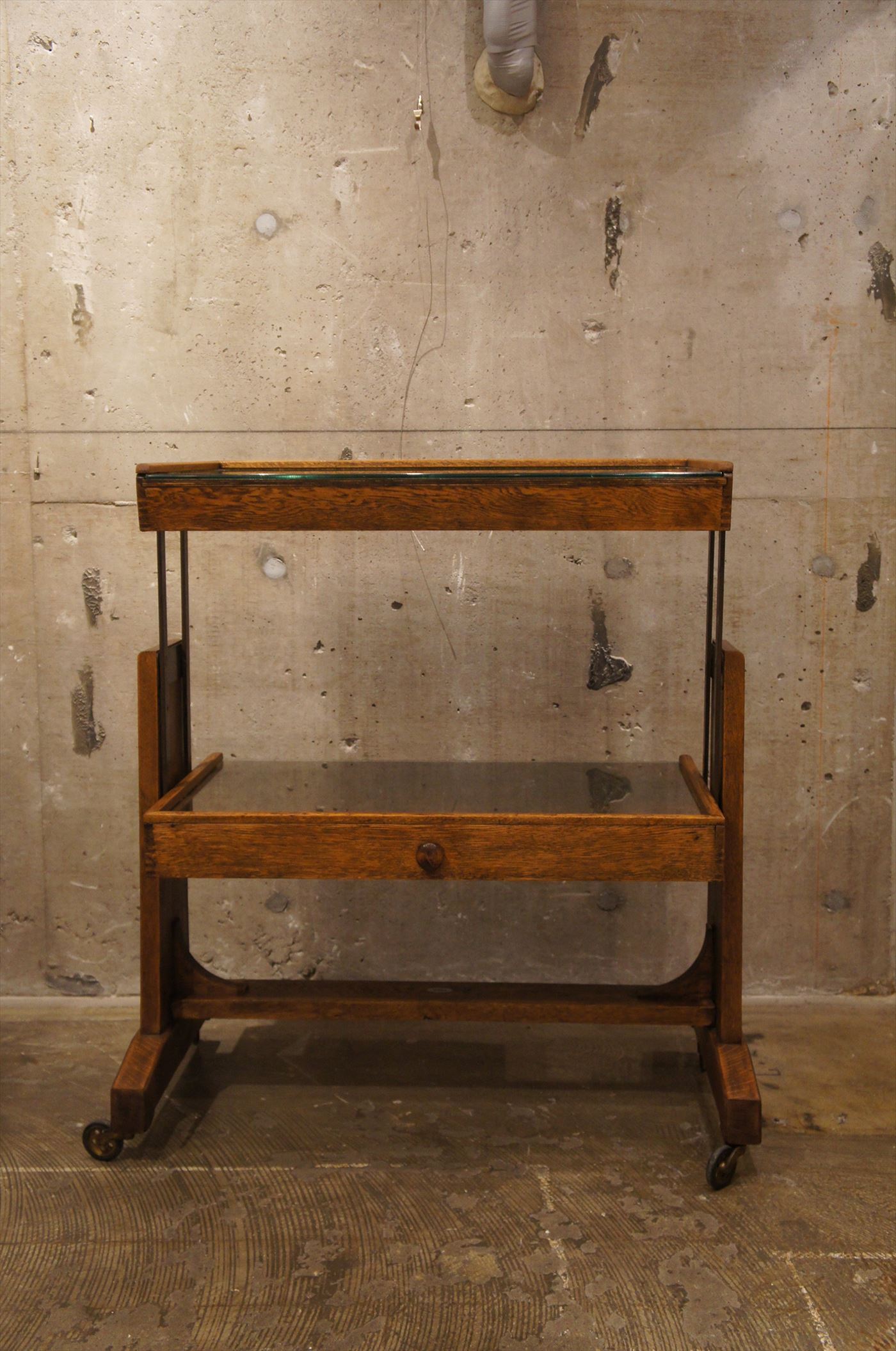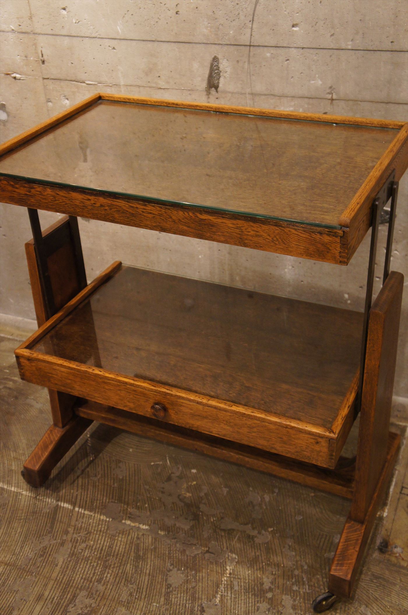 ガラス棚のシェルフでありながら、テーブルにもなるというアイテム。