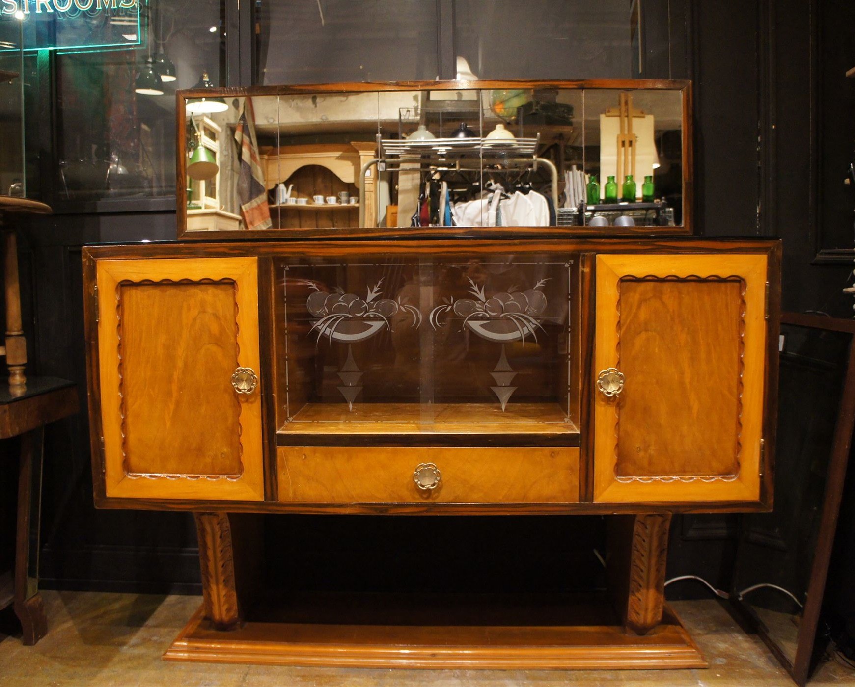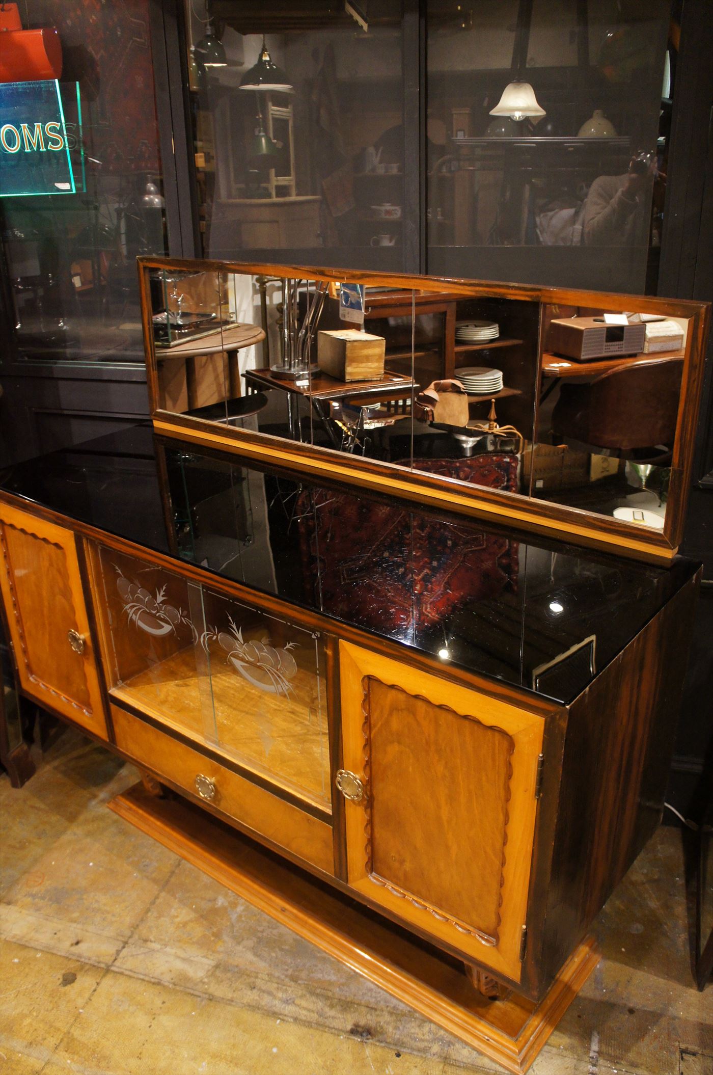 個性的な風貌のサイドボードはイタリアのアンティーク