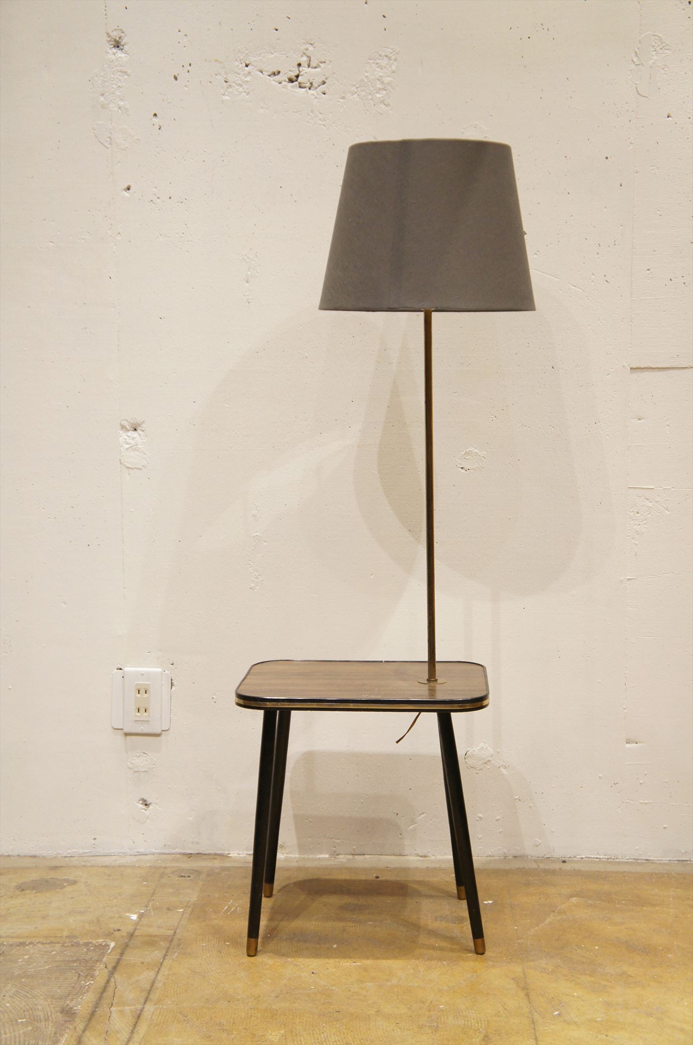 レトロなデザインのサイドテーブルとフロアランプ機能が一体になった個性的なアイテム