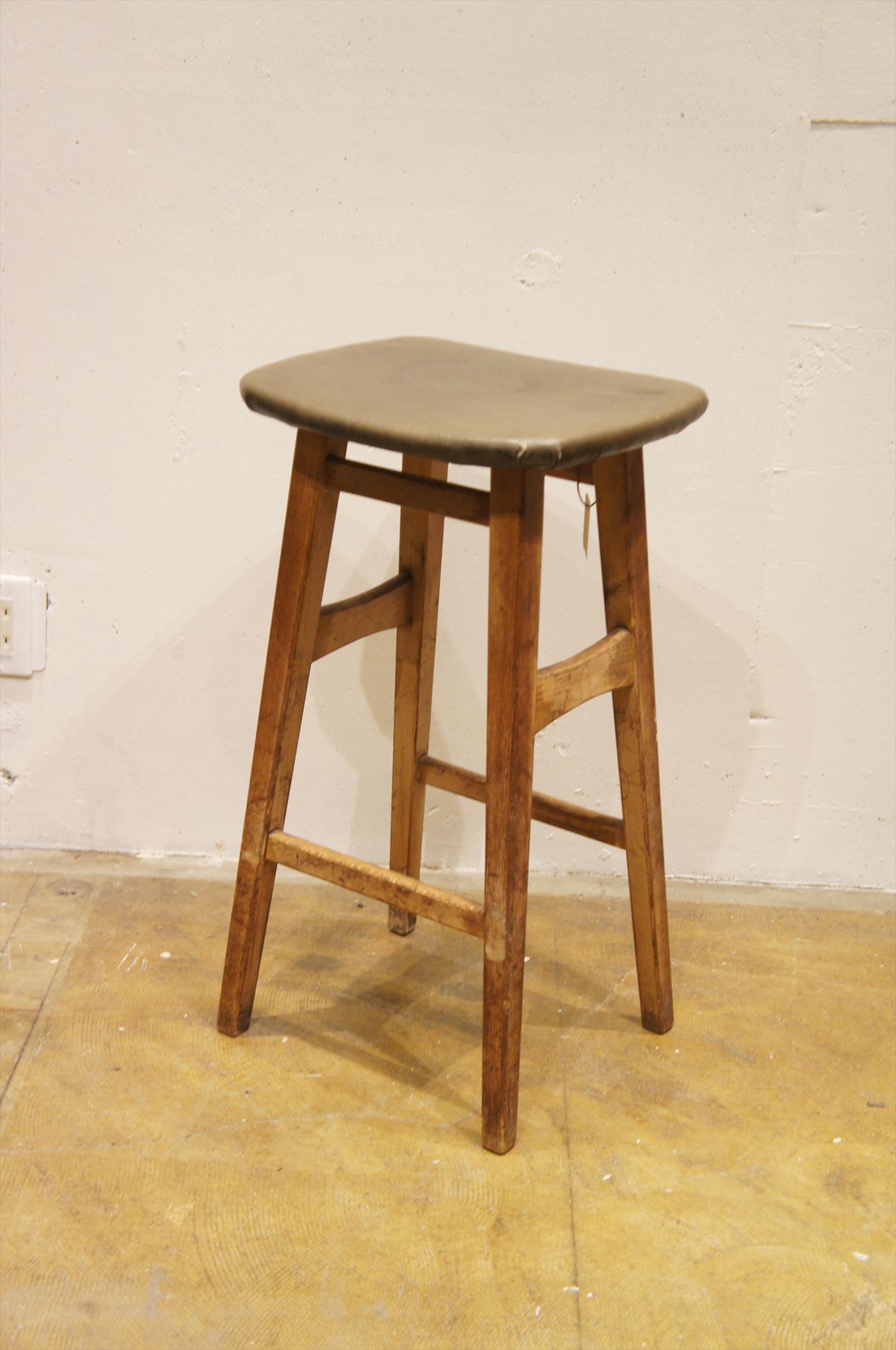 座面は雰囲気のあるオリーブ色のイミテーションレザー