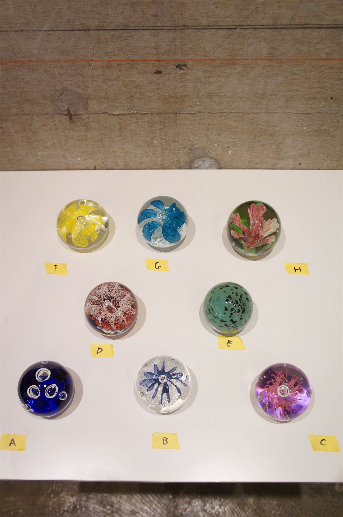 それぞれ美しい模様のガラス球のペーパーウェイト