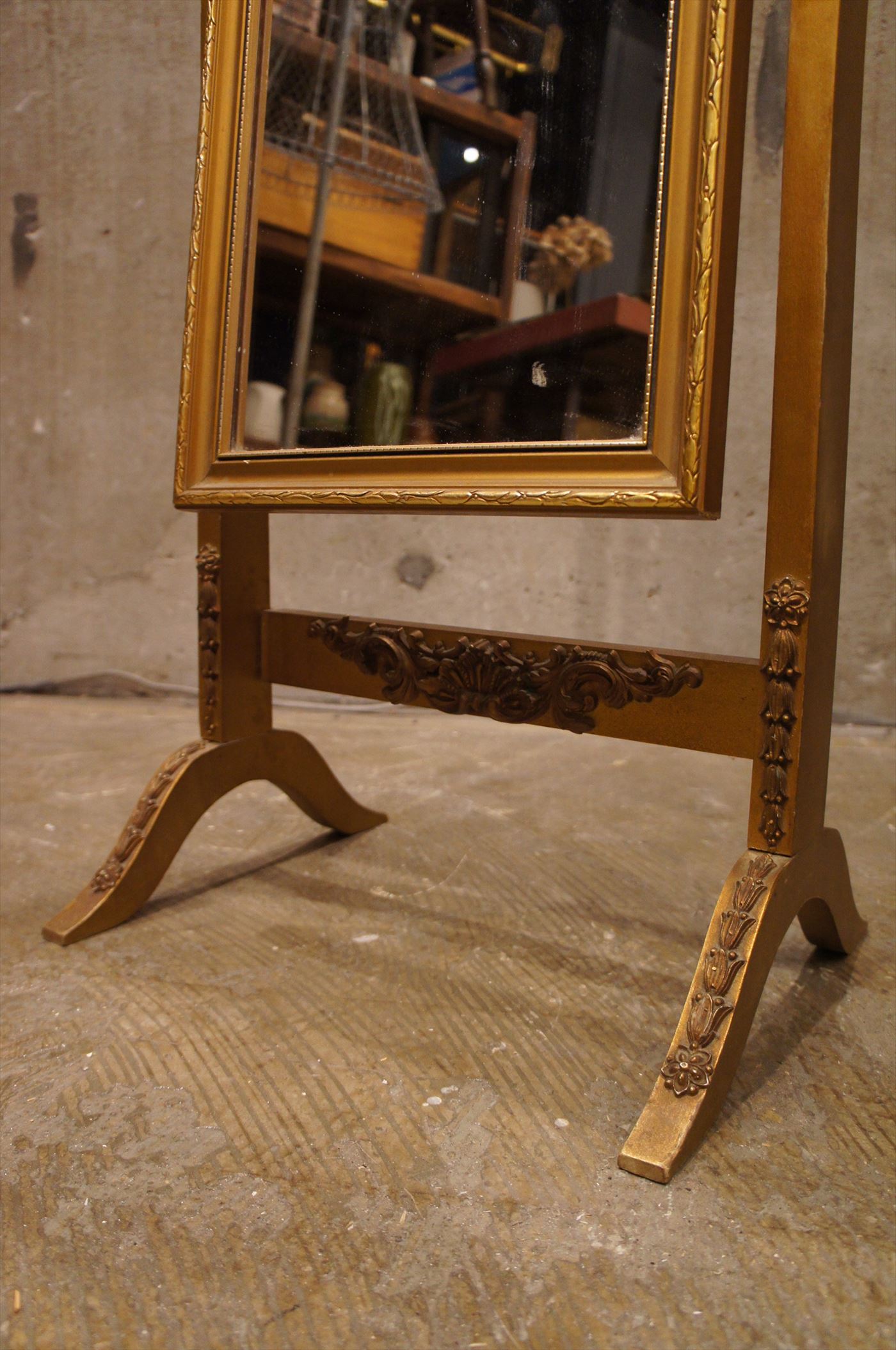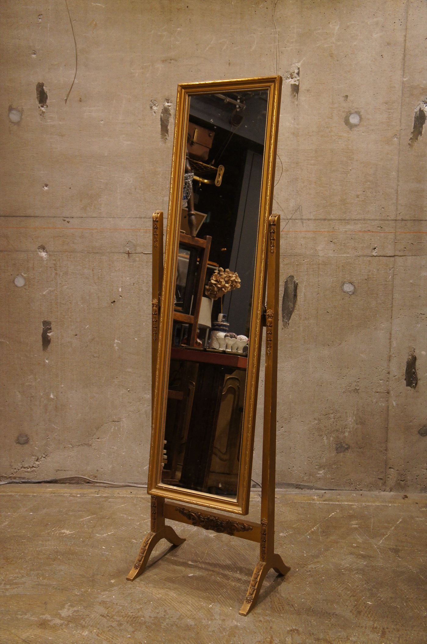 今回入荷の姿見は、デコラティブなデザインのミラーフレームにゴールドのペイントの仕様