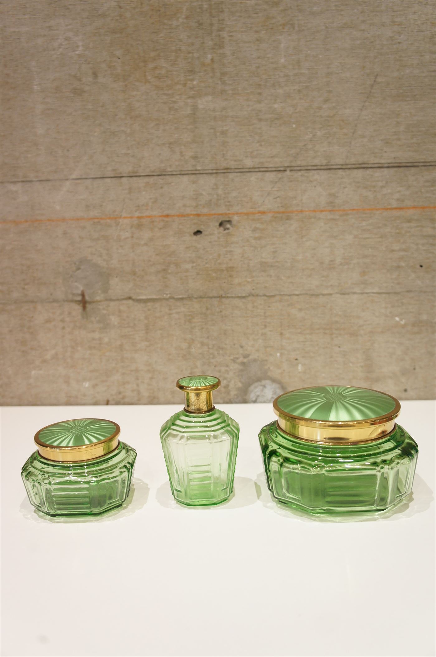 香水や化粧パウダーなどを入れていたガラスの3点セット