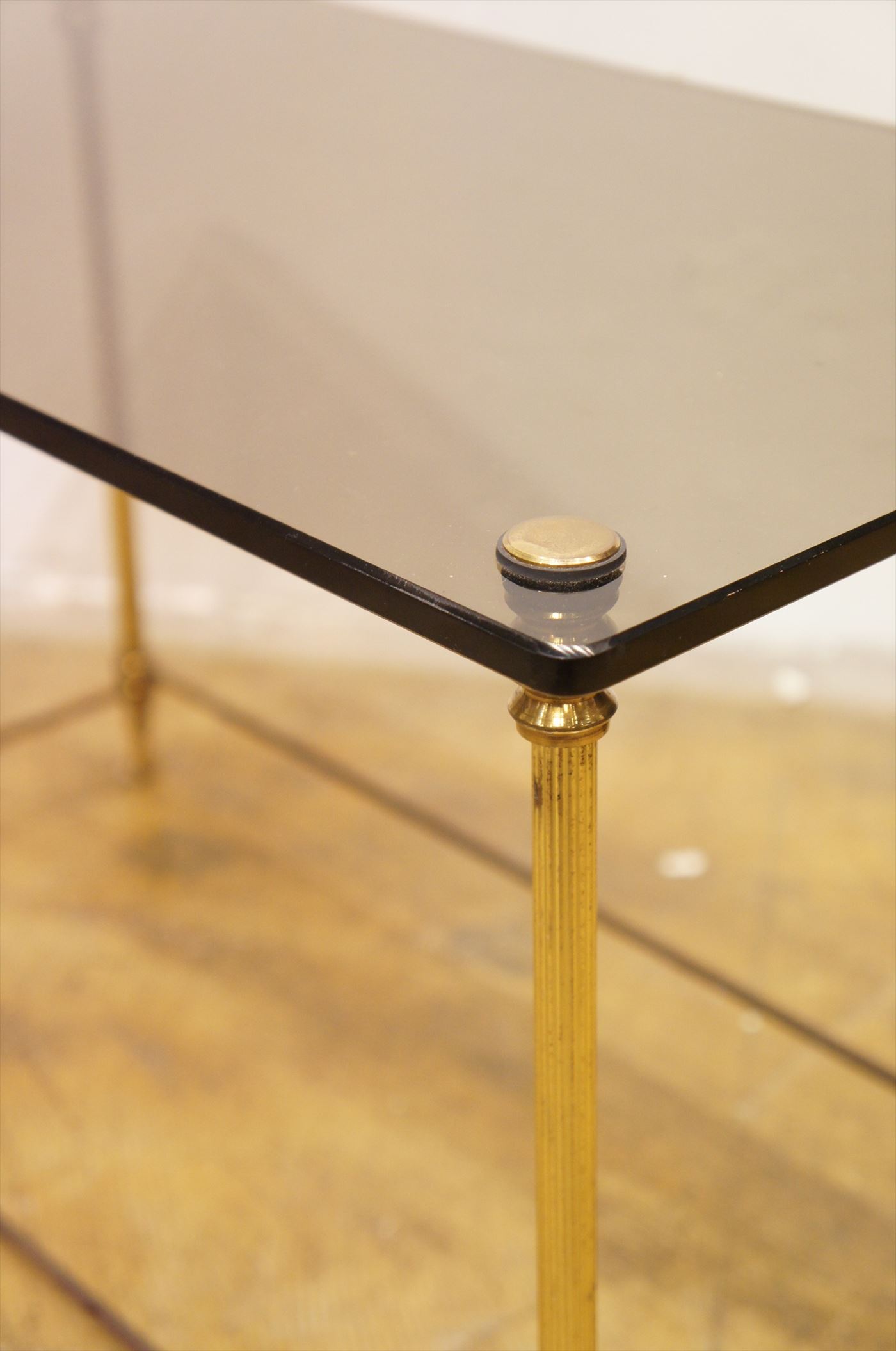 クールなブラックのガラスと真鍮フレームのラグジュアリーな雰囲気のコーヒーテーブル