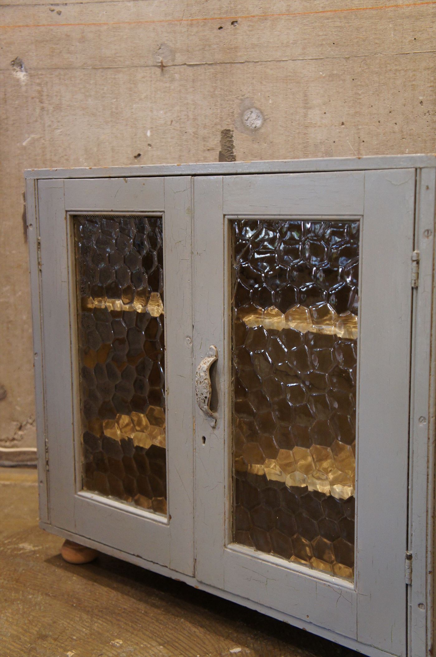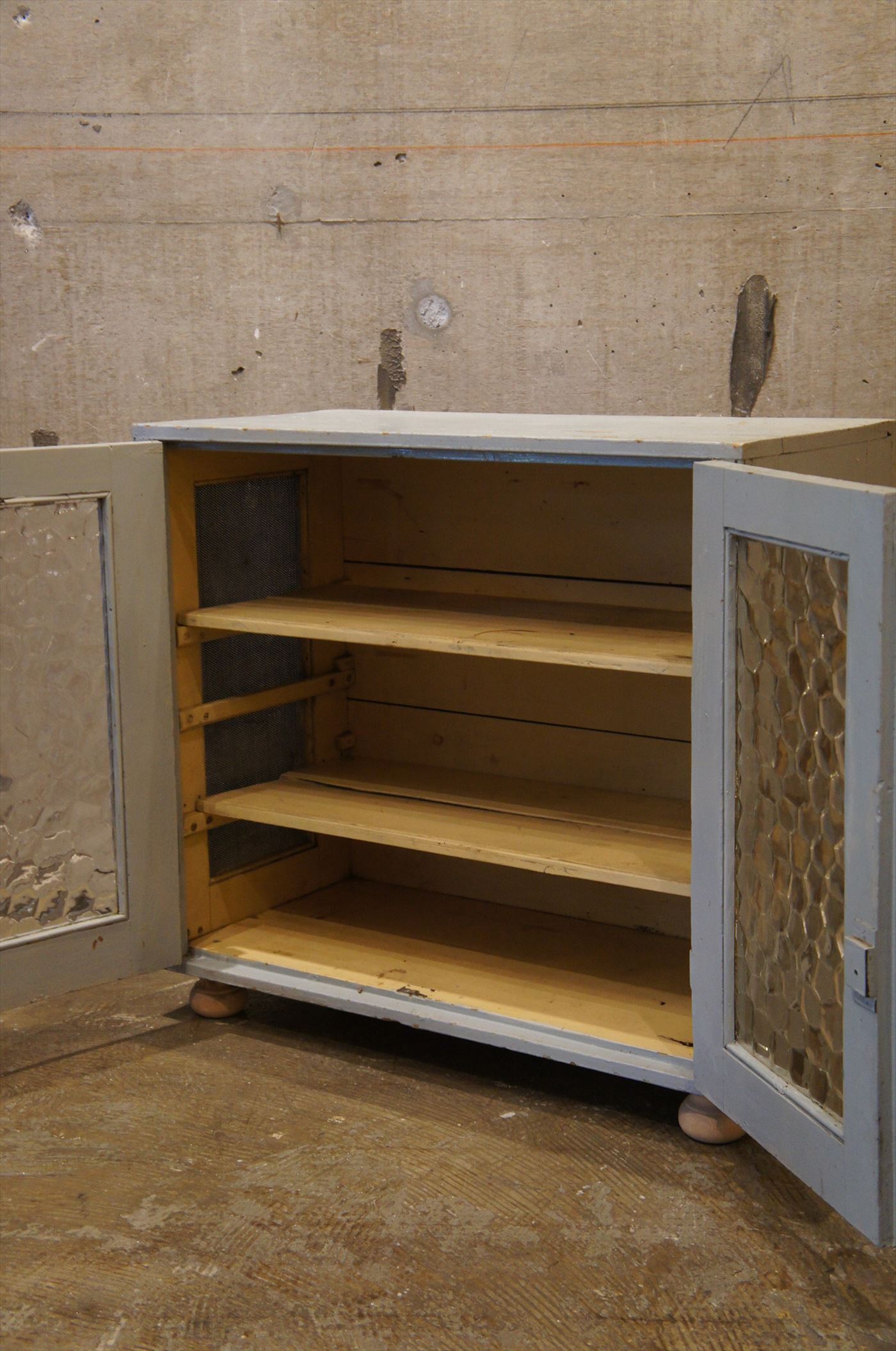 恐らくもともとは、フードセーフ(食品保存用の箱)だったものが、前の持ち主の段階で、ガラスに替えられてきたものと思われます