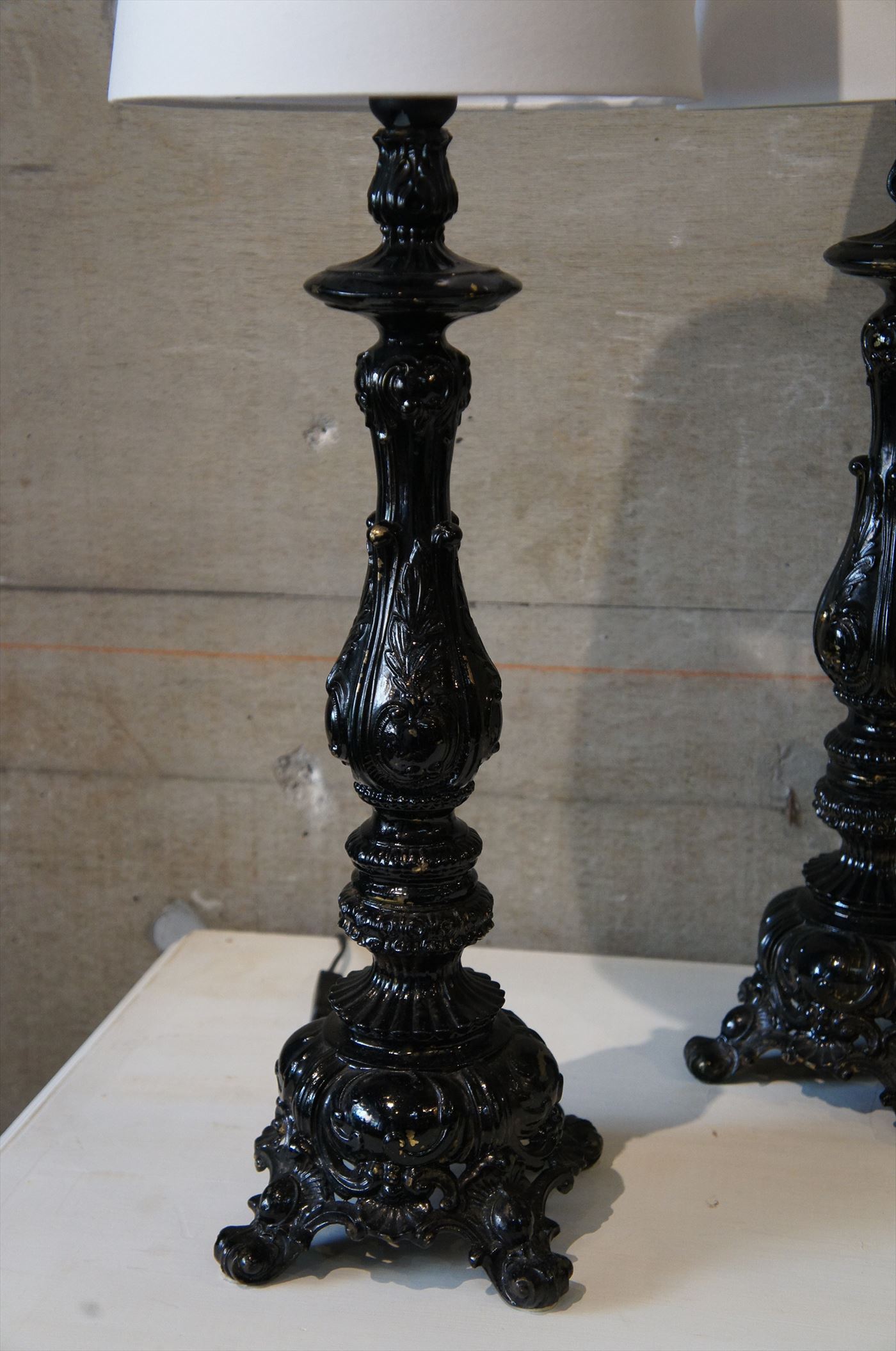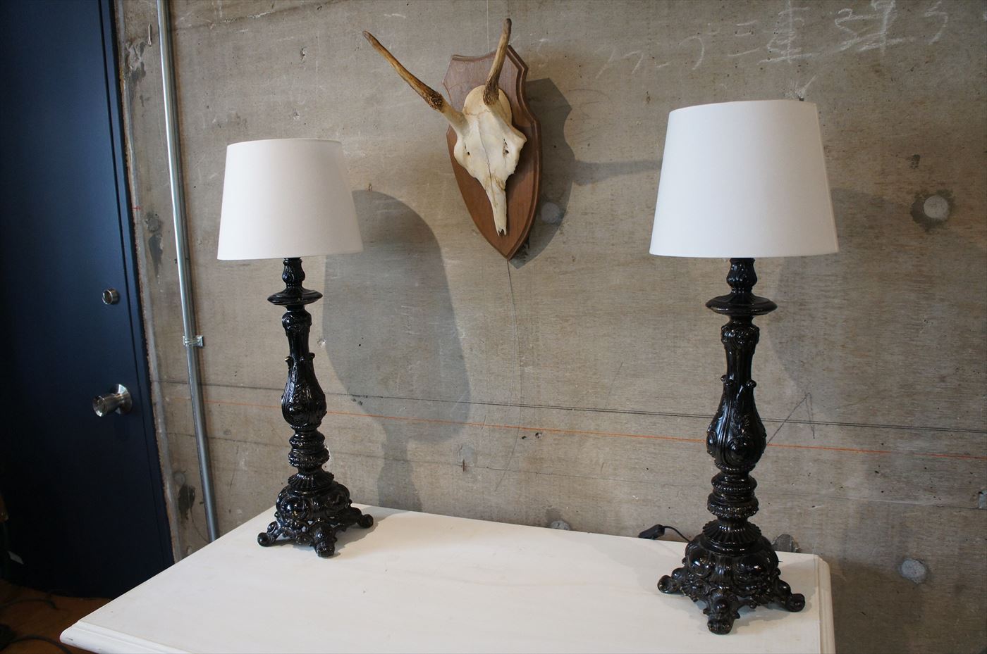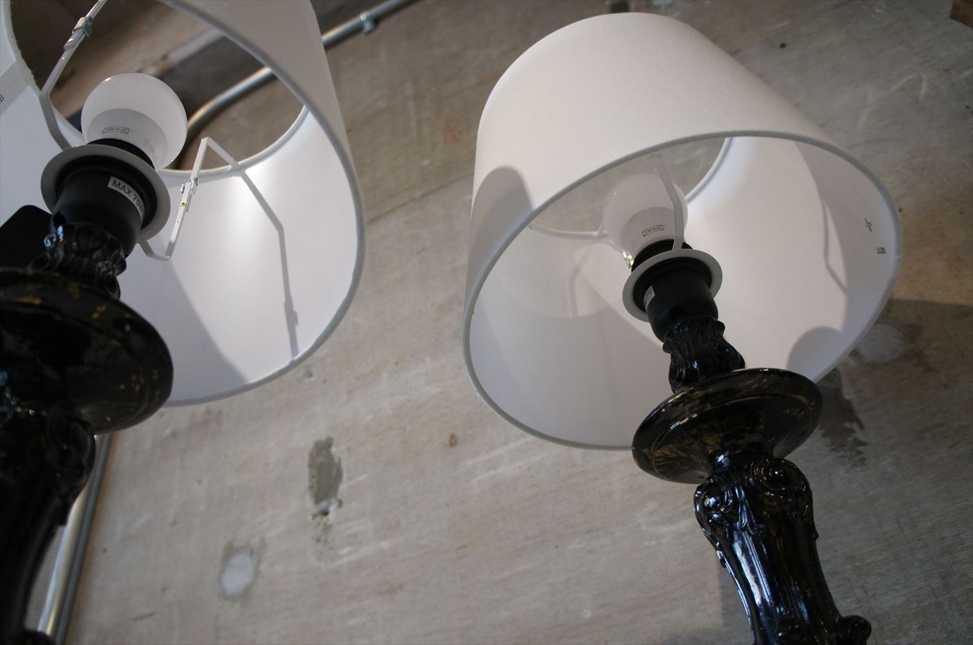 真鍮の本体を黒くペイントが施されているシェードランプ