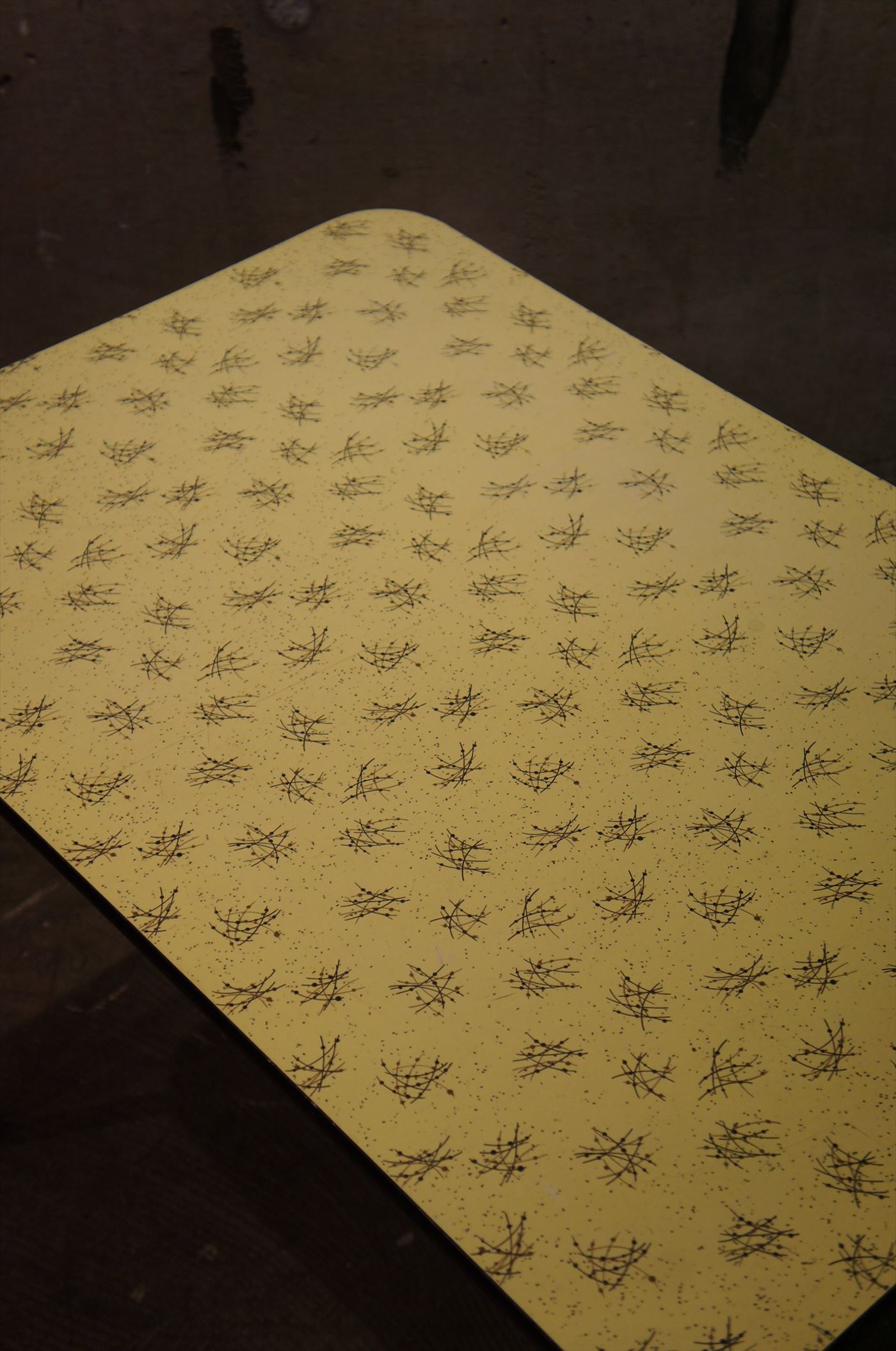水色の脚に黄色の天板、木端のブラックが全体を引き締め、絶妙な配色。