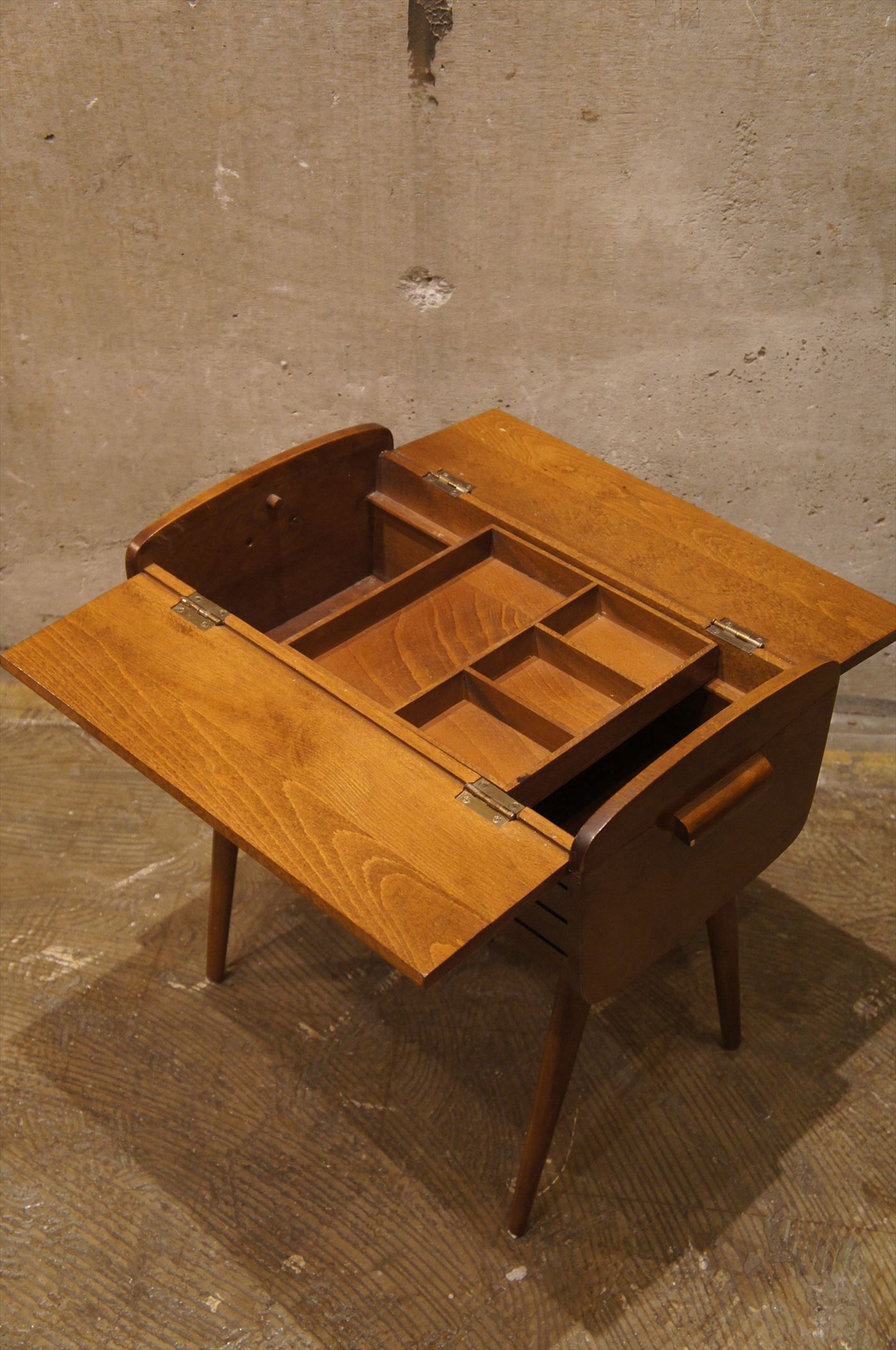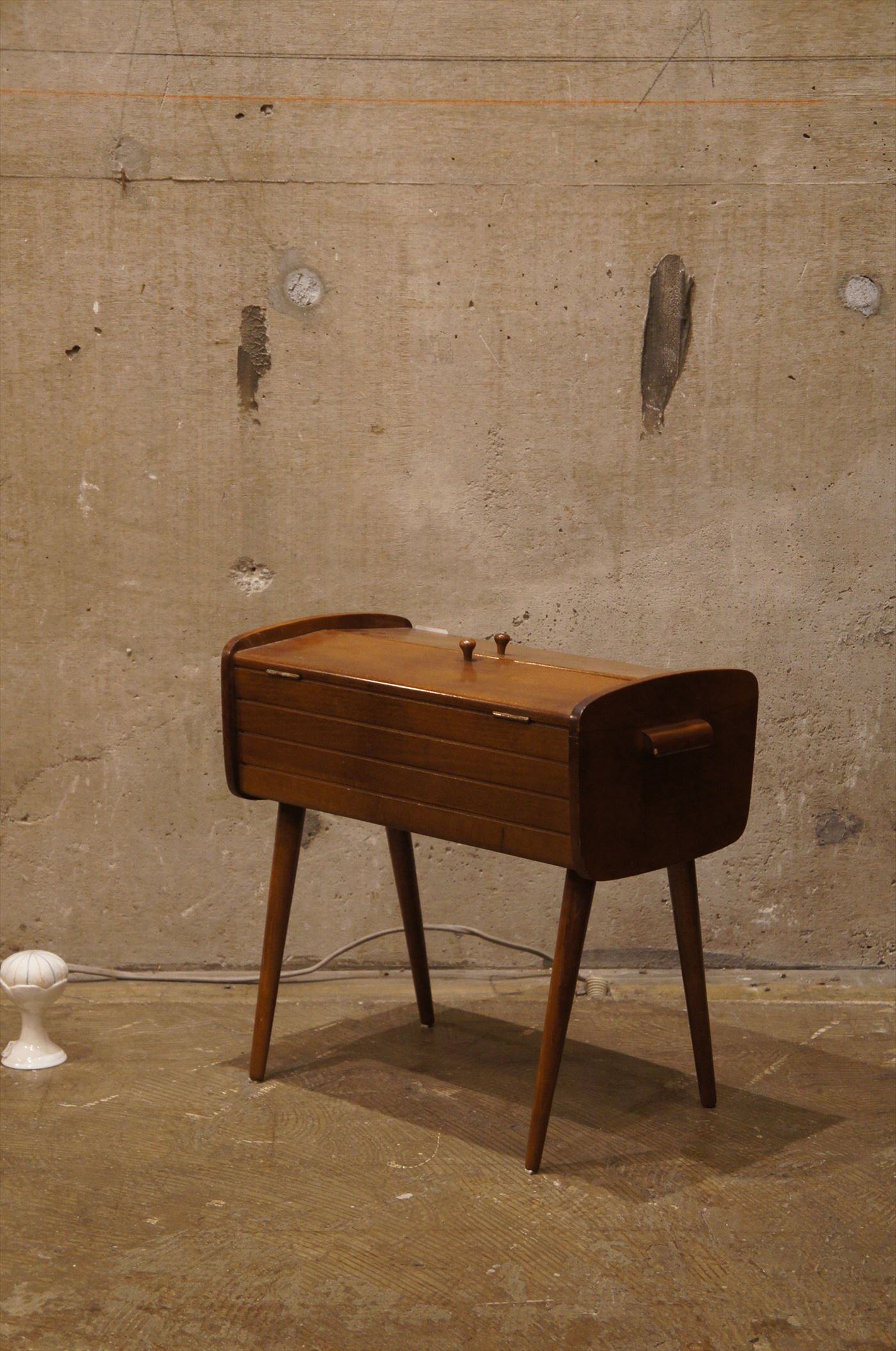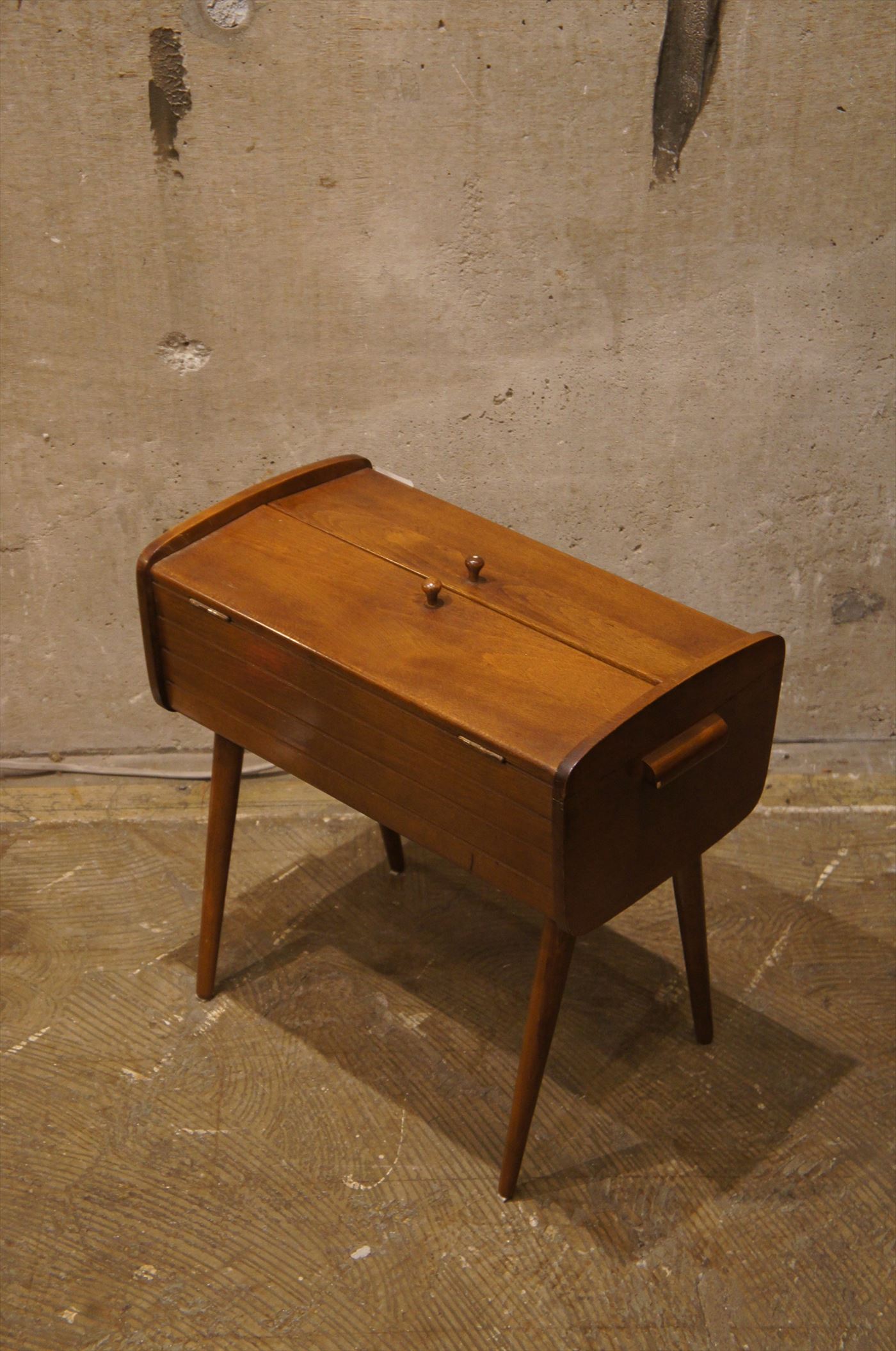 おしゃれな脚付のソーイングボックス。裁縫は英国でも人気です。アイテムも様々ですが、コタらは、スタイリッシュなデザイン。小分けの収納トレーもついているので、裁縫だけでなく、リビングの散らかりがちな小物の収納にもおすすめ。