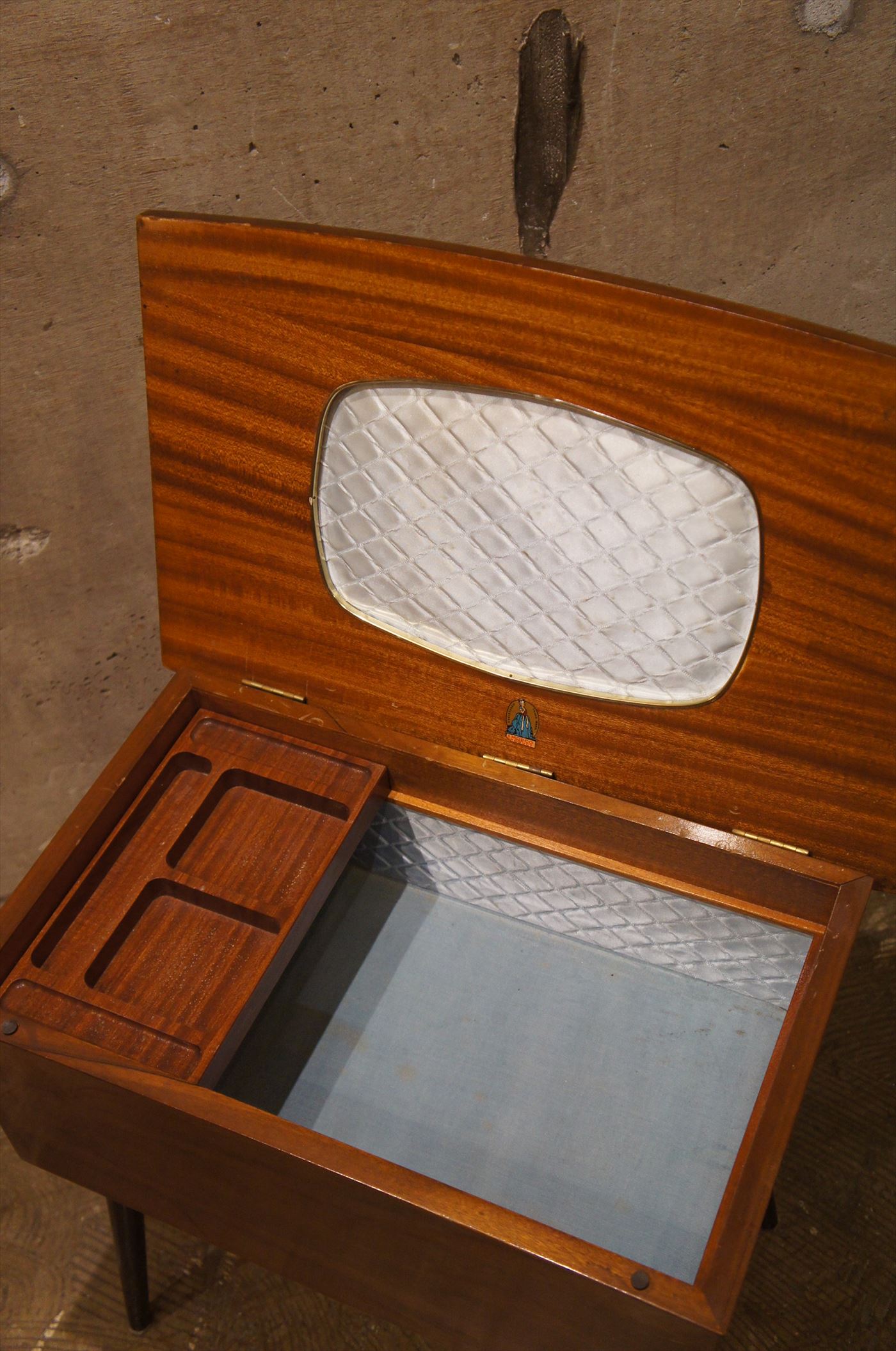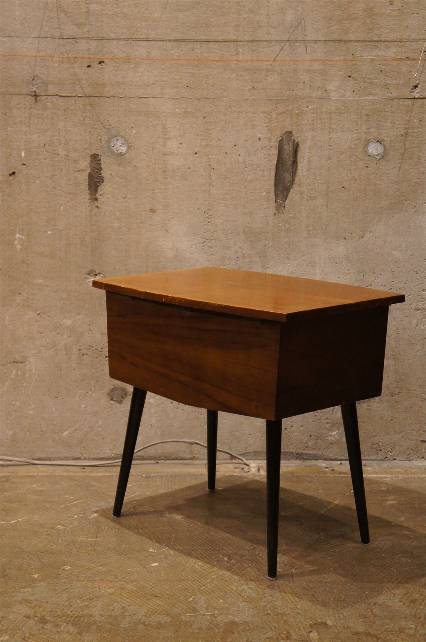 中に収納を備えたサイドテーブルとして使えるソーイングボックス