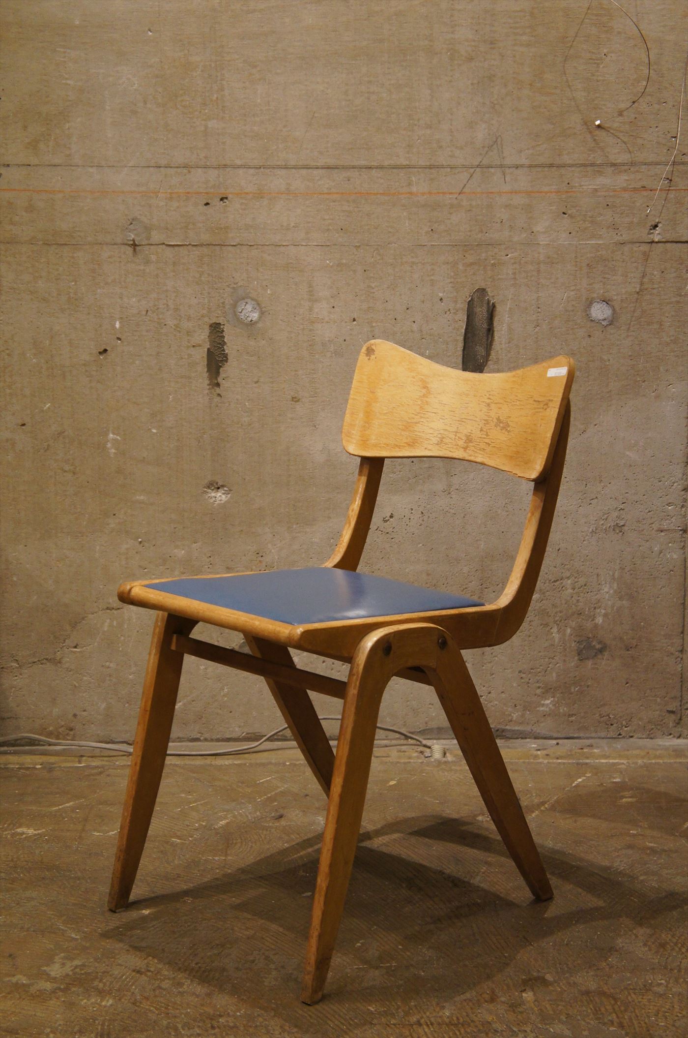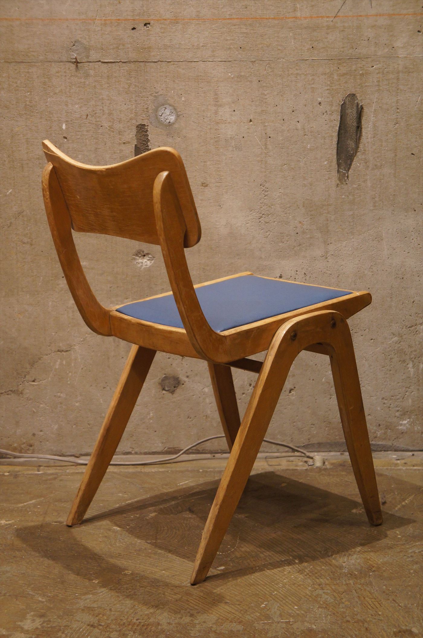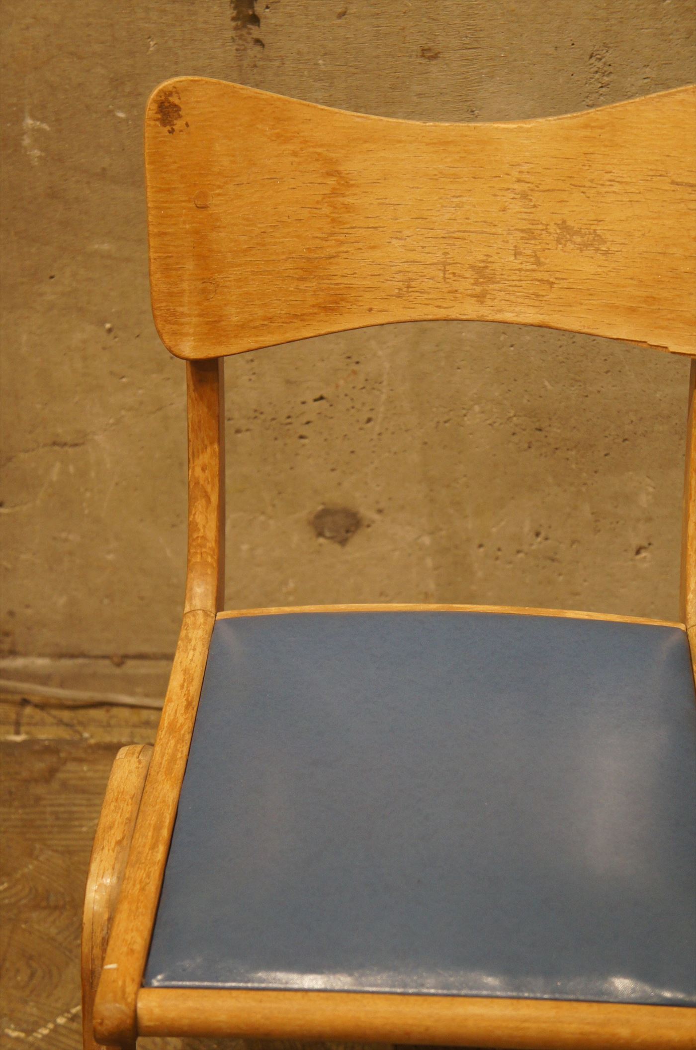 座面は青色のビニールレザーで状態は良好。レトロな色合いが素敵。